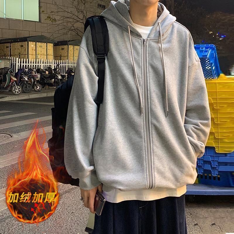 Otoño e Invierno estilo de Hong Kong suéter con capucha de los hombres cardigan estilo coreano estudiante de moda más chaqueta de terciopelo suelta deportes casual top