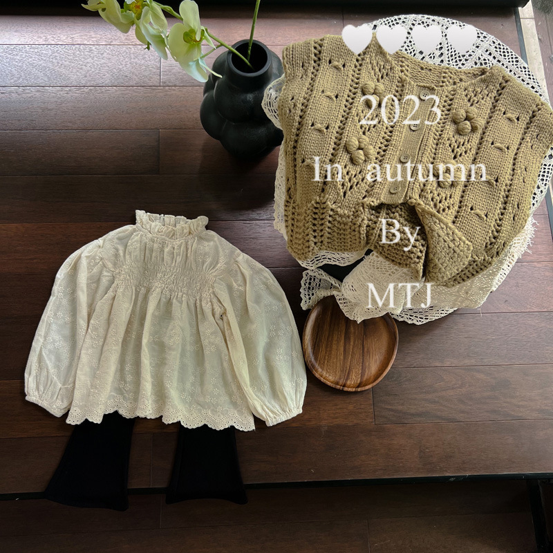 Wheat Field Season 2025, primavera y otoño, nueva ropa de estilo coreano para niños, camisa de muñeca con ribete de encaje para niñas, blusa Floral para niños.