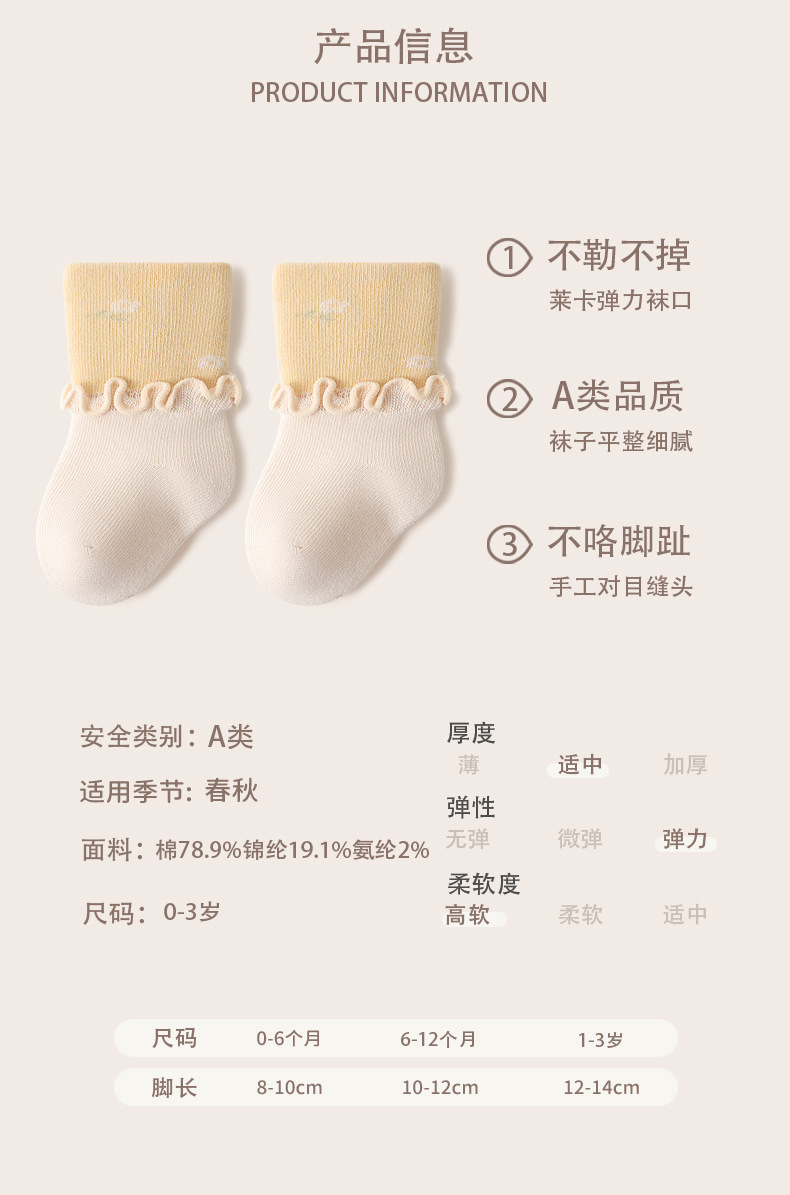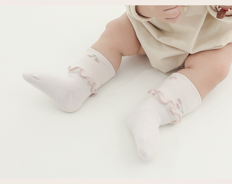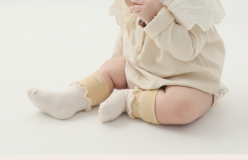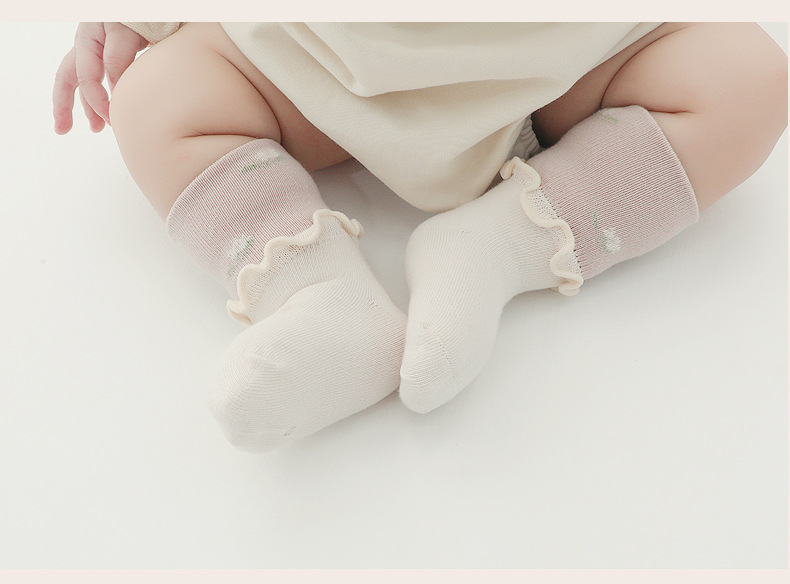 2024 primavera nuevos productos calcetines para bebés, encaje de hongos, boca ancha, piernas no estiradas, calcetines de tubo para bebés recién nacidos, calcetines de algodón deshuesados