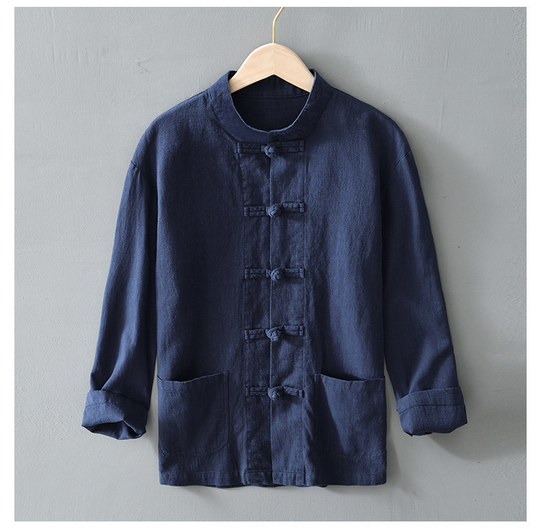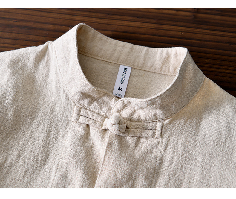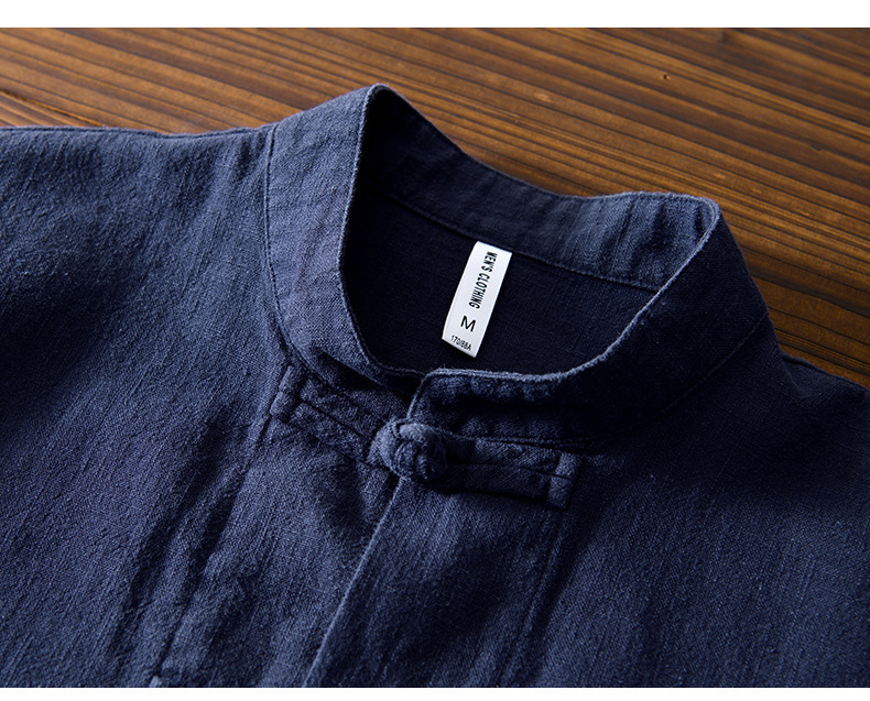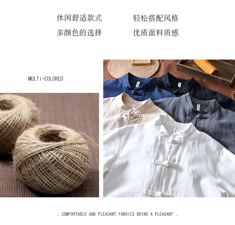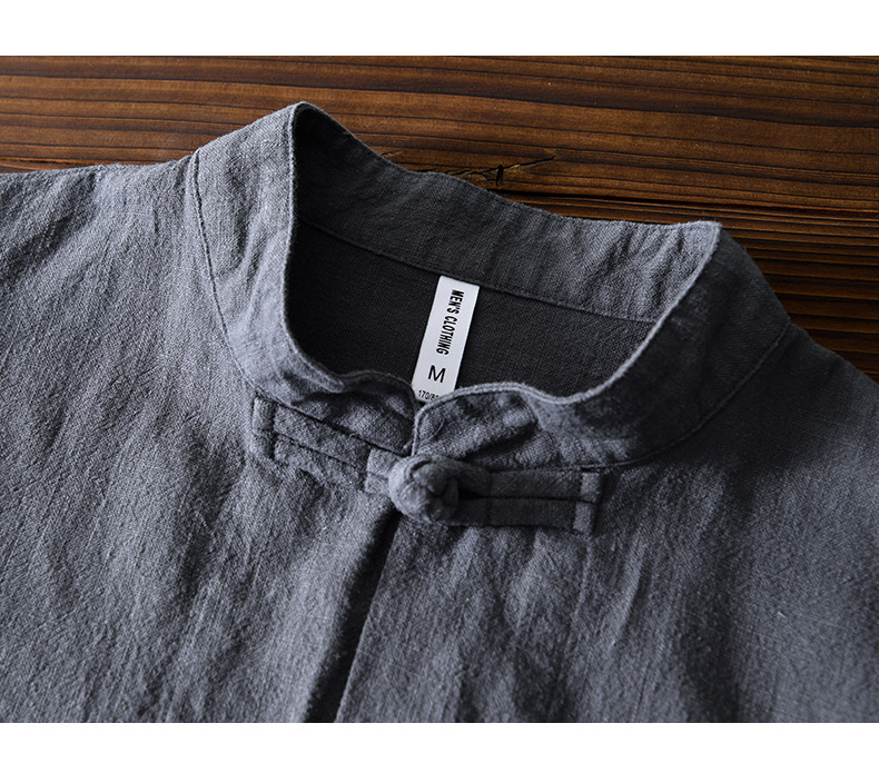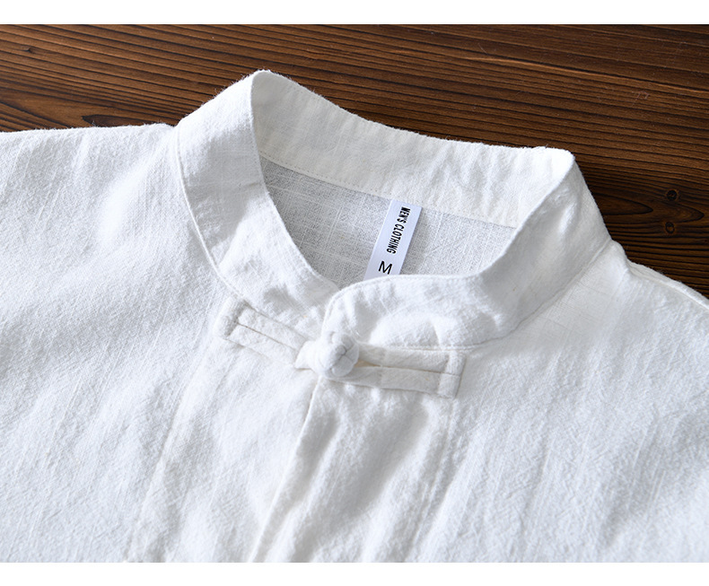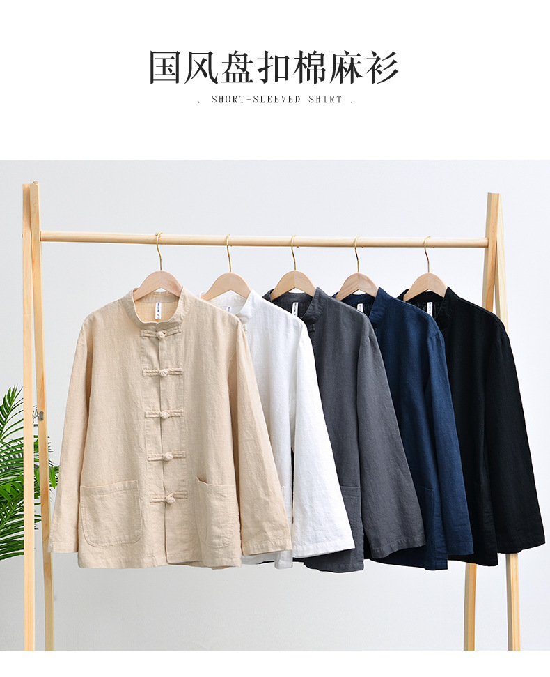 Nacional de moda collar de pie de algodón y lino casual Camisa de manga larga de los hombres de estilo chino hebilla retro más tamaño ramio camisa de lino suelta