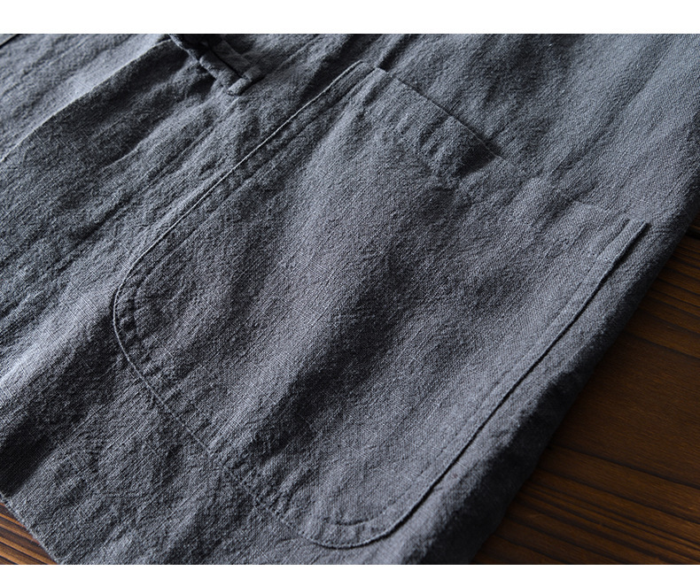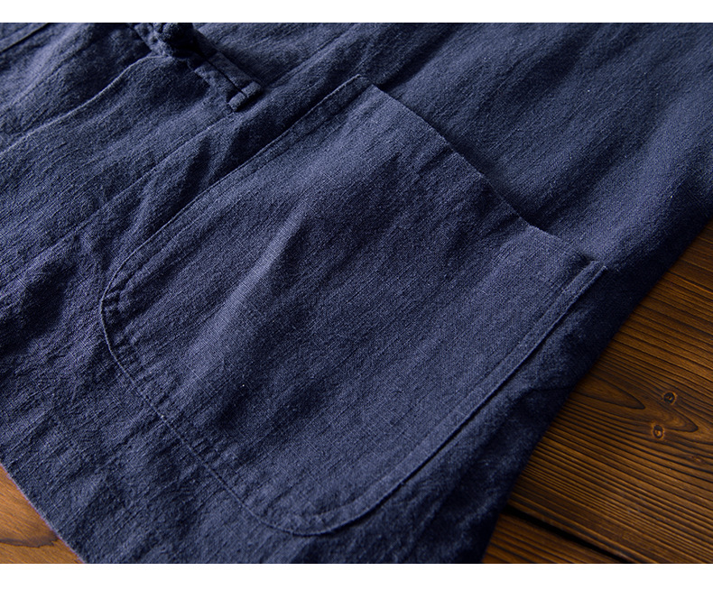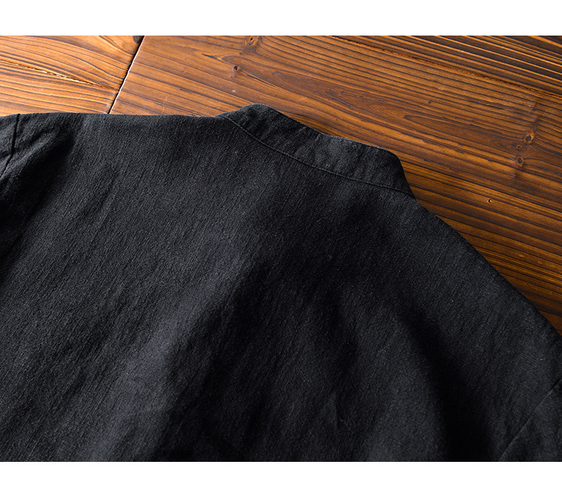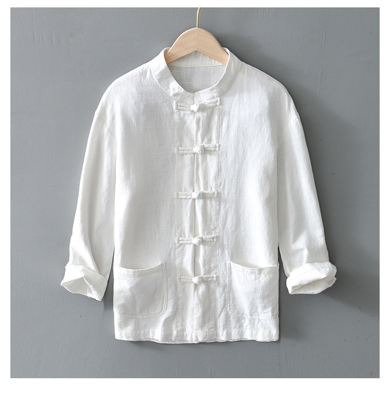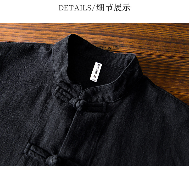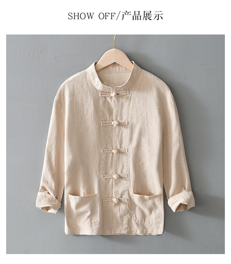 Nacional de moda collar de pie de algodón y lino casual Camisa de manga larga de los hombres de estilo chino hebilla retro más tamaño ramio camisa de lino suelta