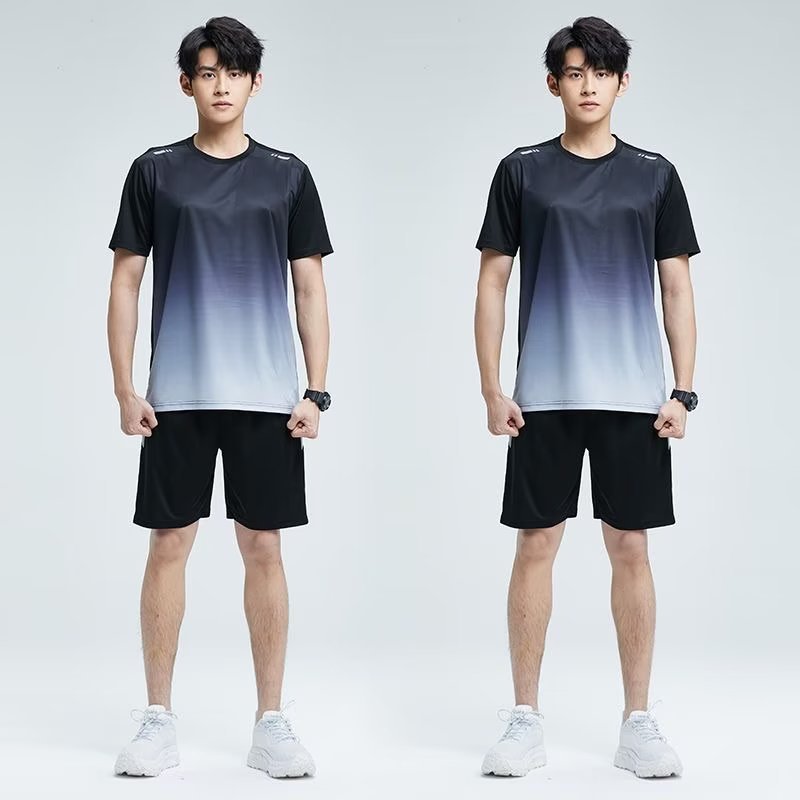 Ropa de hombre deportes de manga corta traje de seda de hielo verano nuevo gradiente teñido de corbata correr fitness pantalones cortos delgados conjunto de dos piezas