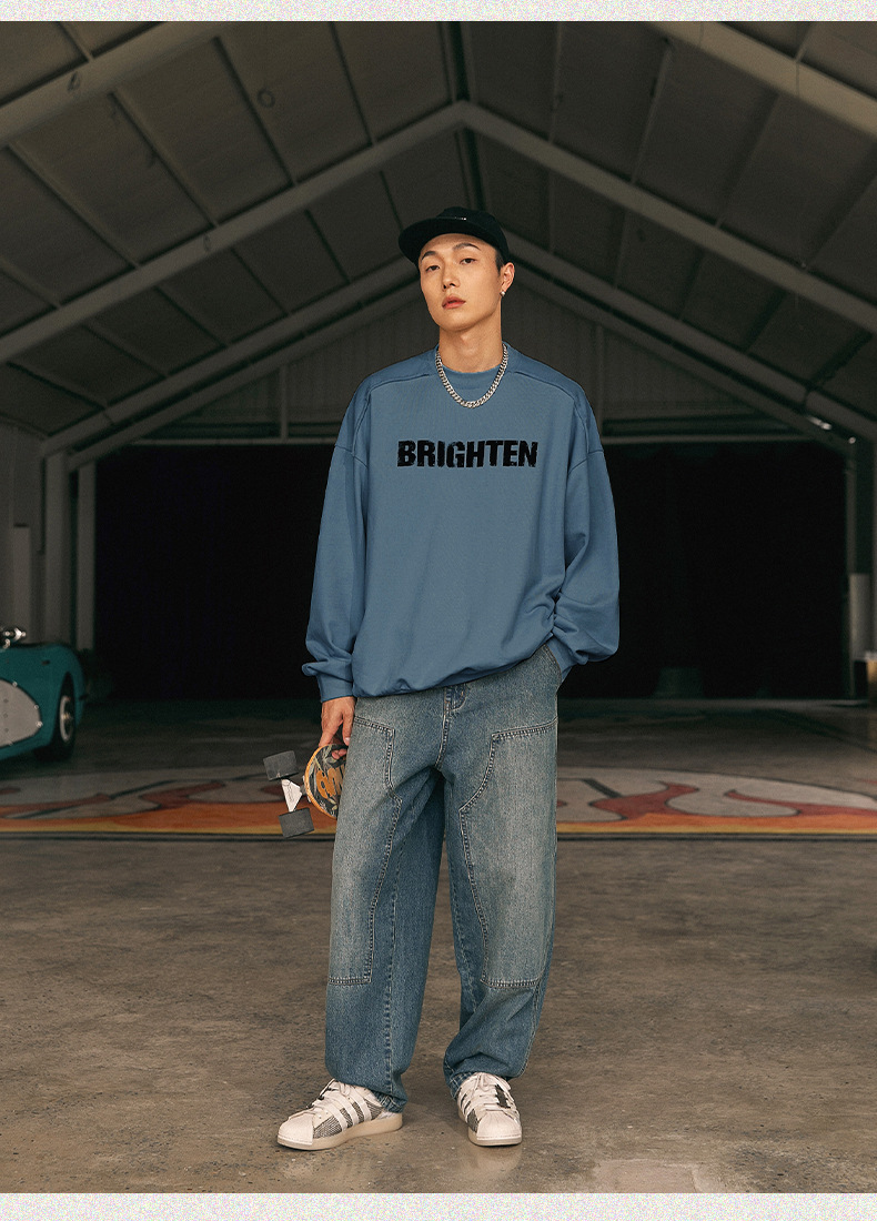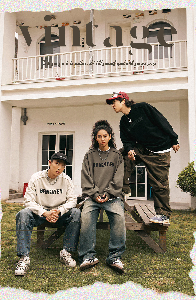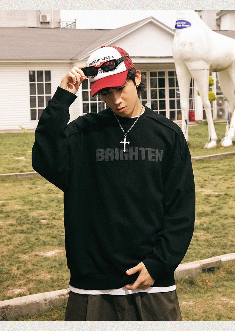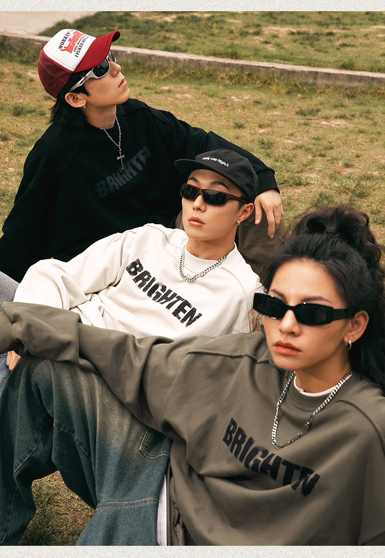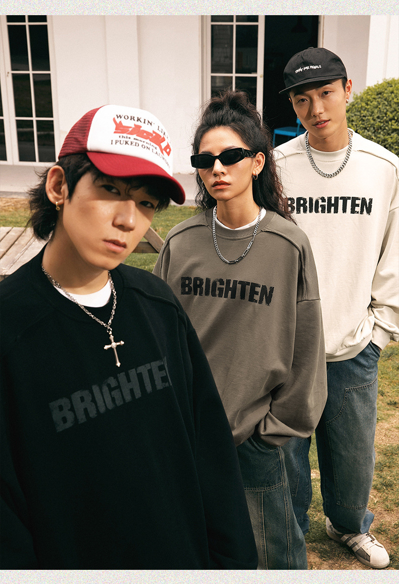 Sudadera estilo americano con estampado de letras rotas para hombre, estilo primavera, corte holgado, diseño vintage con bordes deshilachados, chaqueta de marca moderna para parejas.