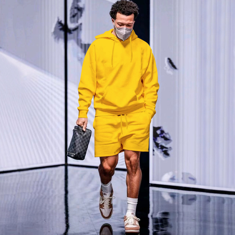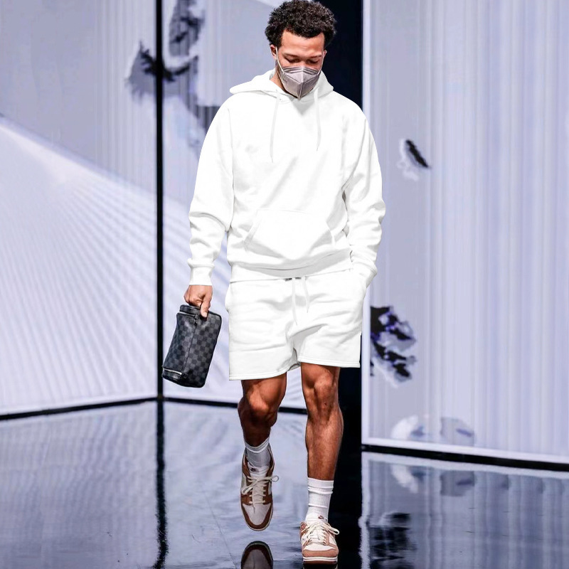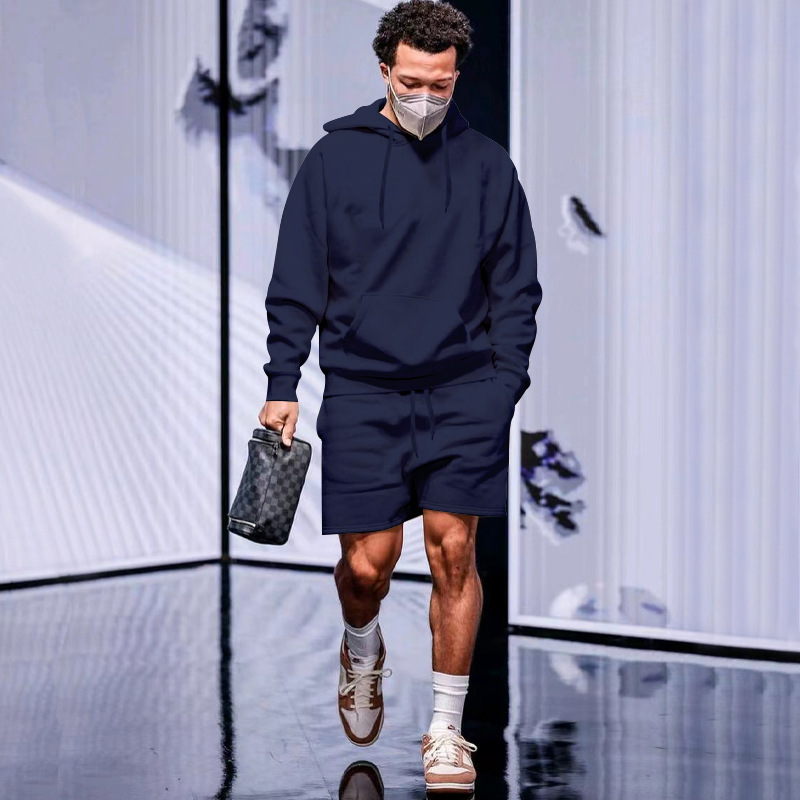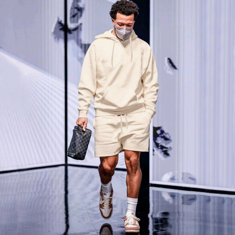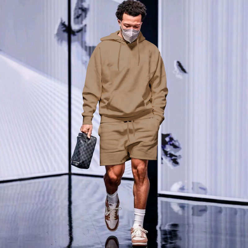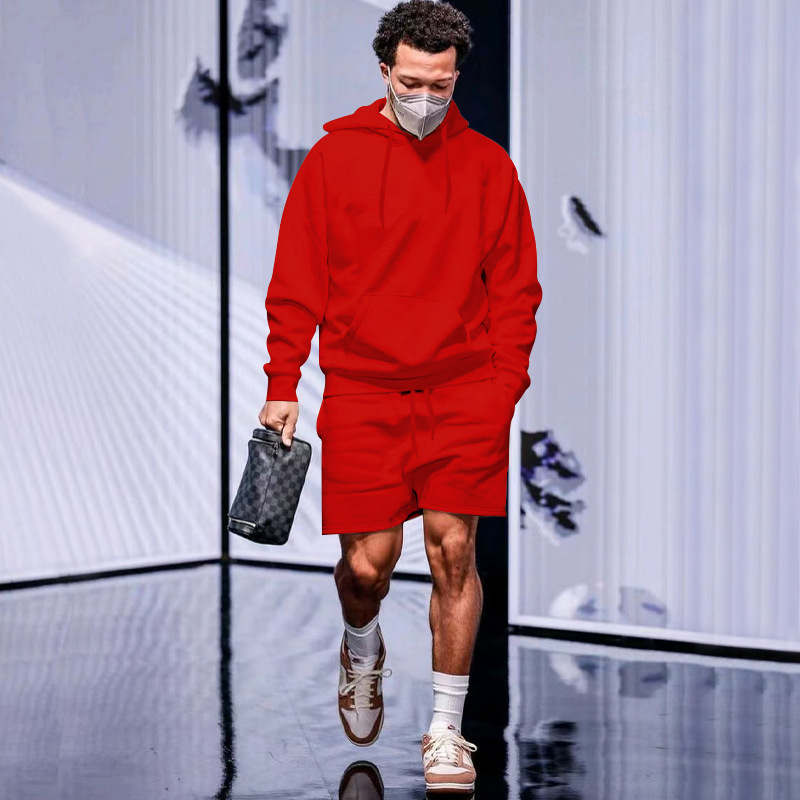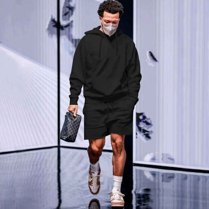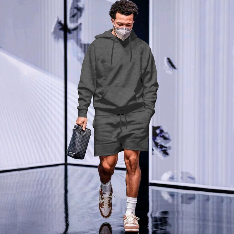 Comercio exterior transfronterizo 2023 Amazon Hombres otoño nuevos hombres forrados de lana suéter con capucha pantalones cortos traje casual