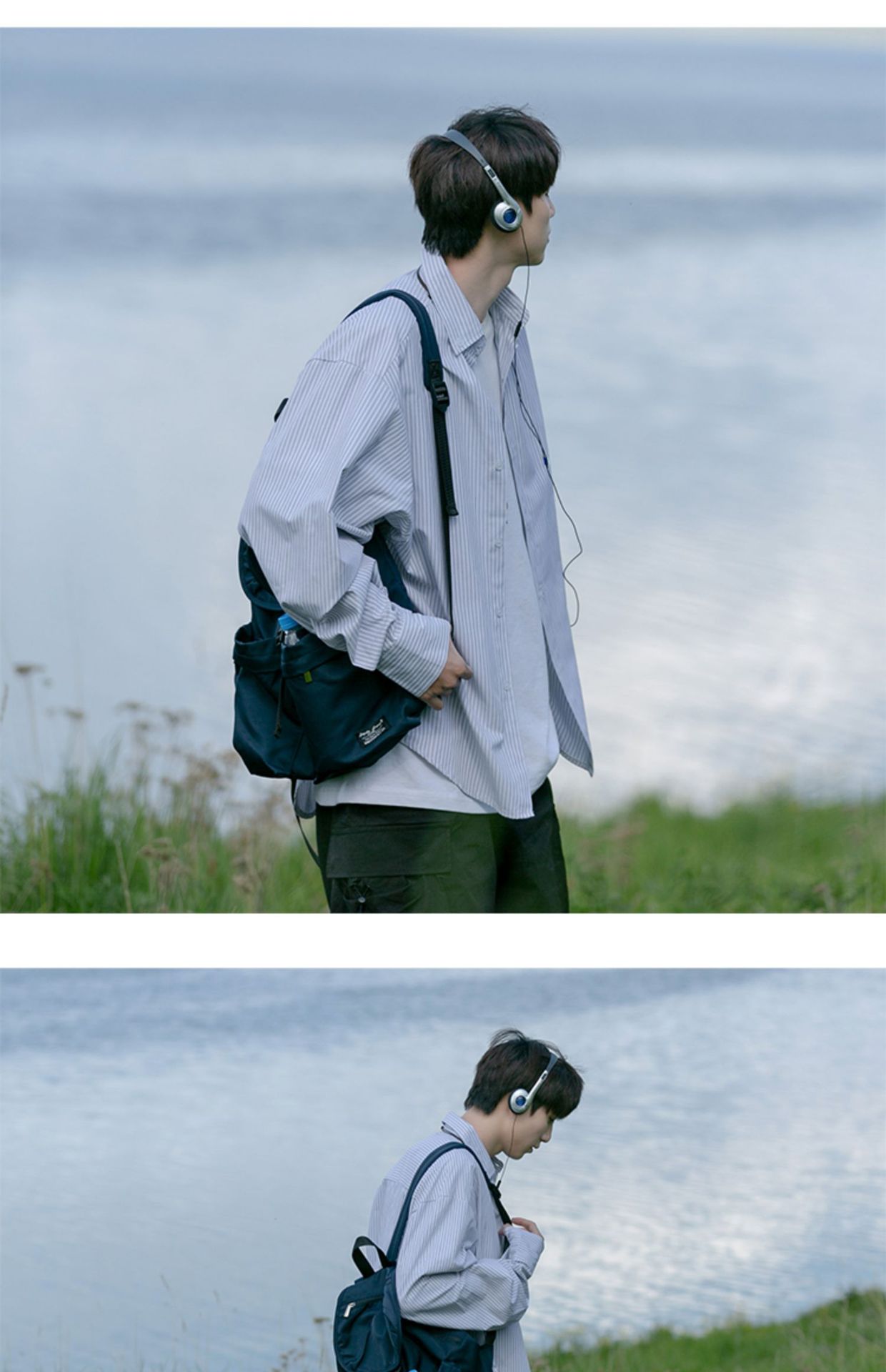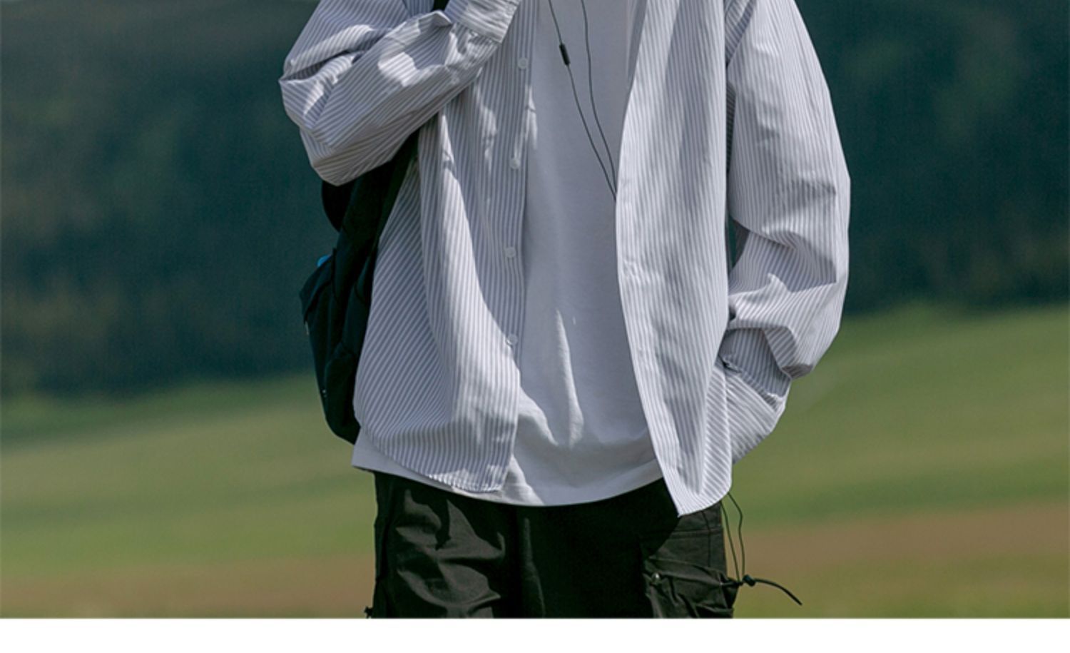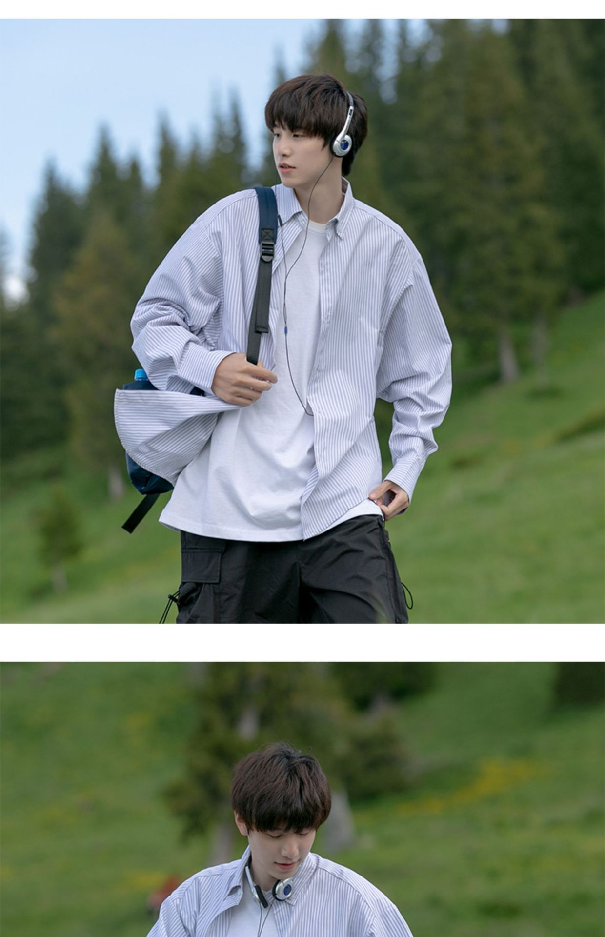 Camisa de manga larga a rayas japonesa para hombre primavera y otoño Camisa de manga corta estilo Hong Kong suelta chaqueta casual de alta calidad de moda
