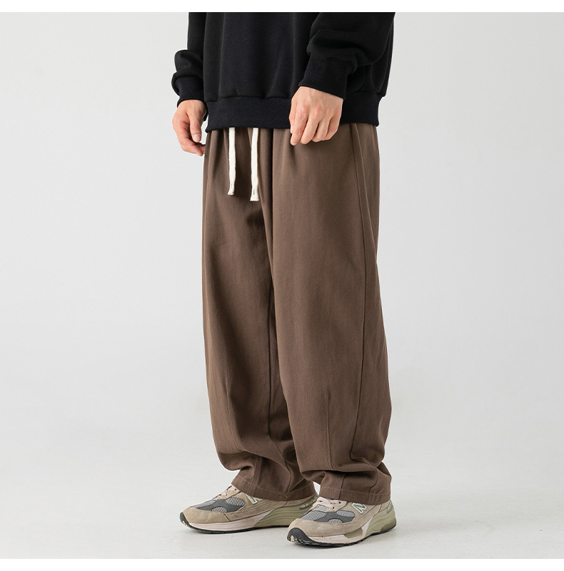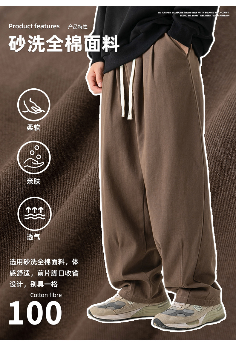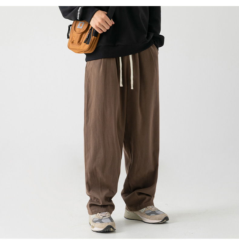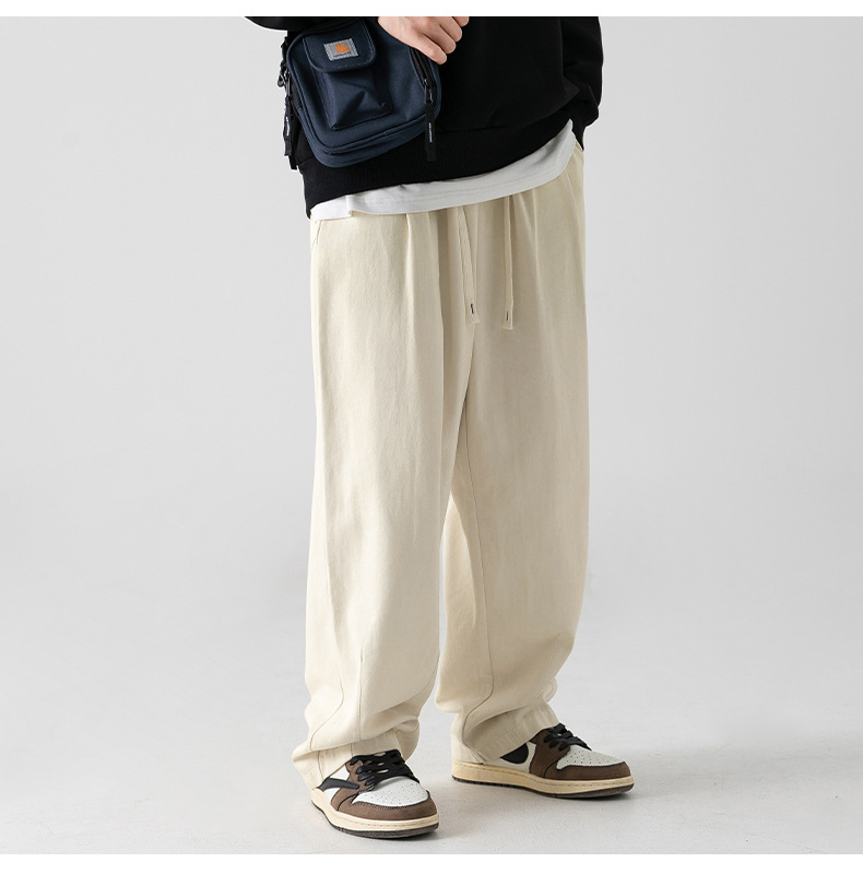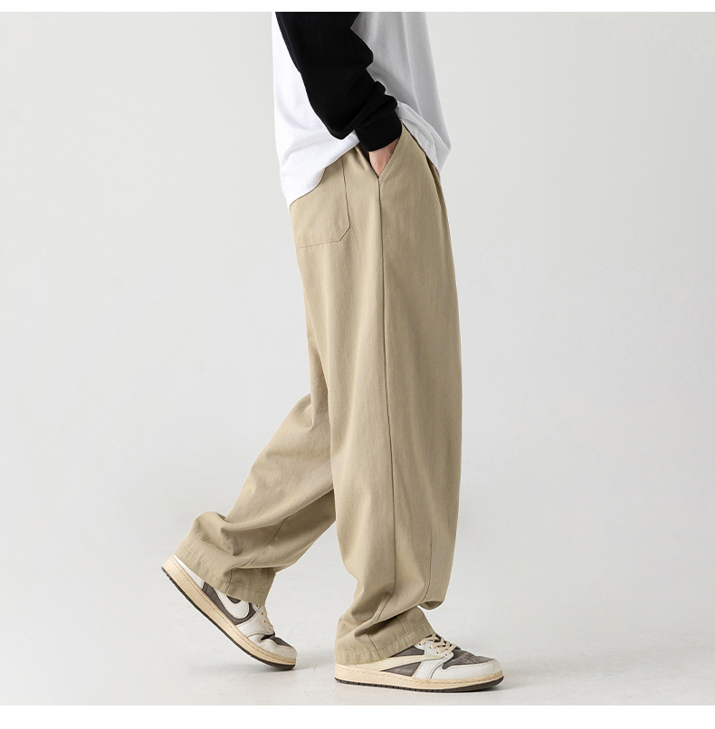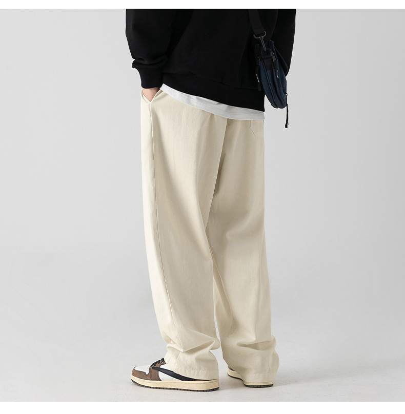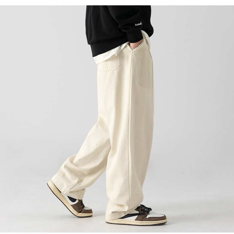 Pantalones casuales sueltos lavados en arena retro japoneses, estilo de primavera para hombres, marca de moda, diseño plisado tridimensional de todo fósforo más pantalones de terciopelo