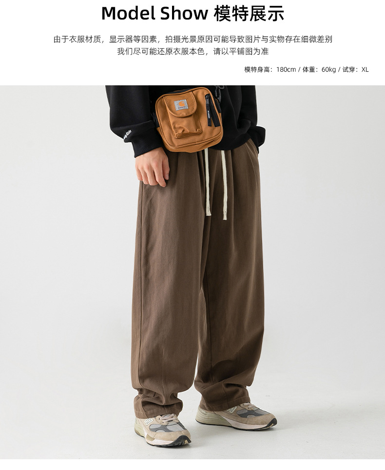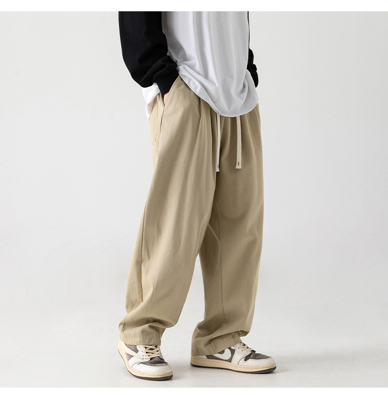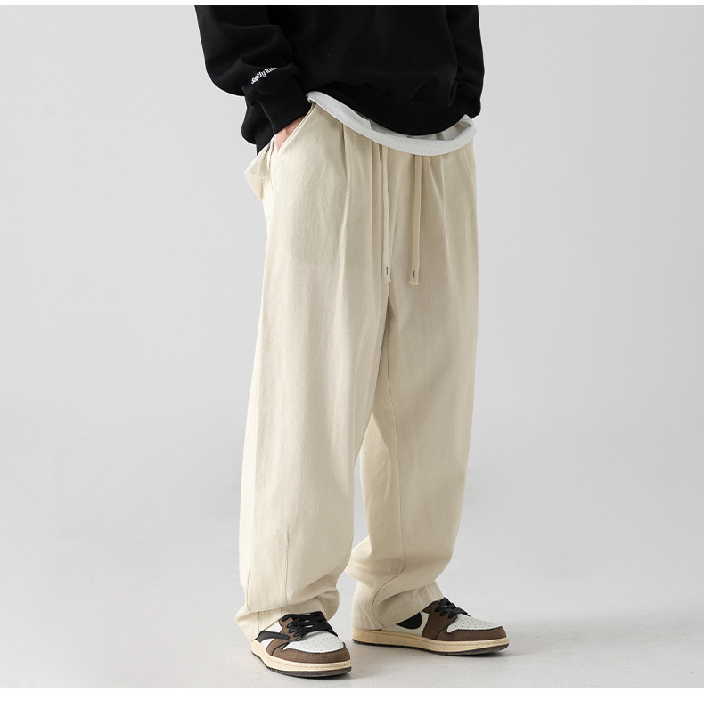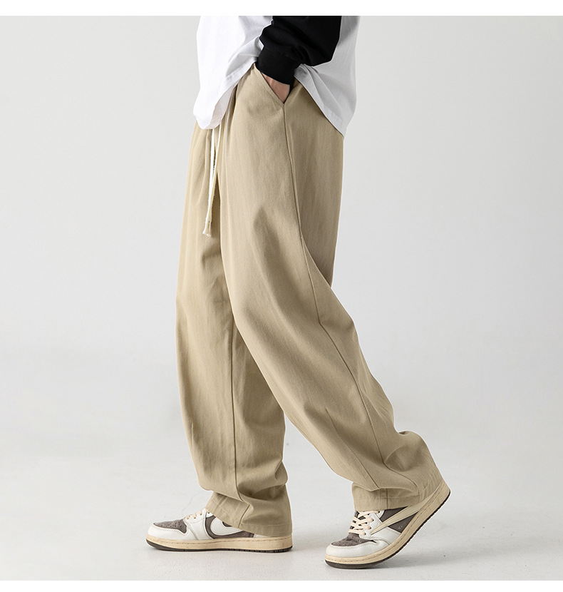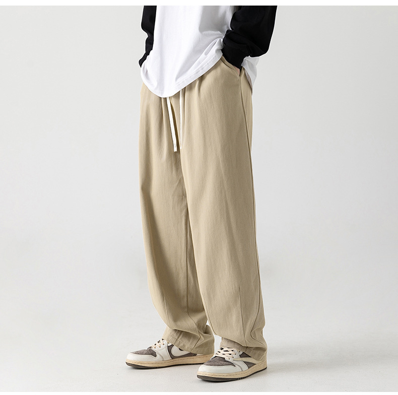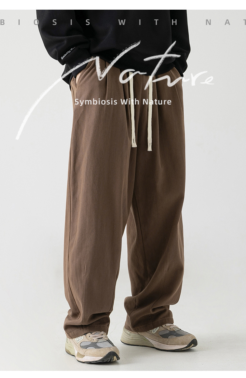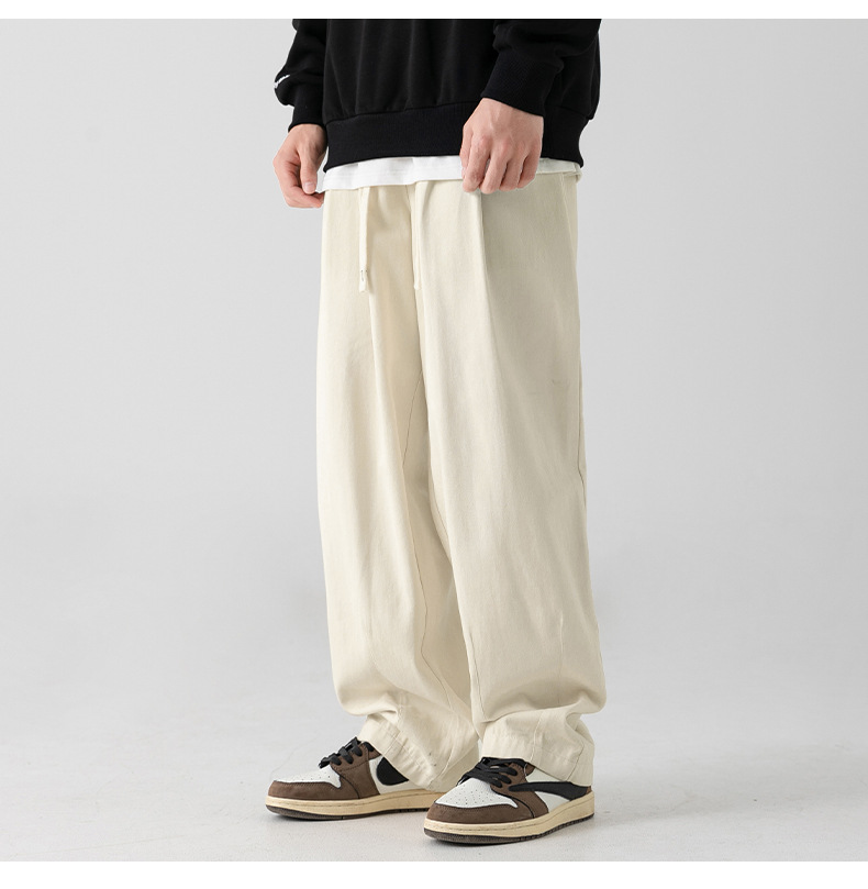 Pantalones casuales sueltos lavados en arena retro japoneses, estilo de primavera para hombres, marca de moda, diseño plisado tridimensional de todo fósforo más pantalones de terciopelo