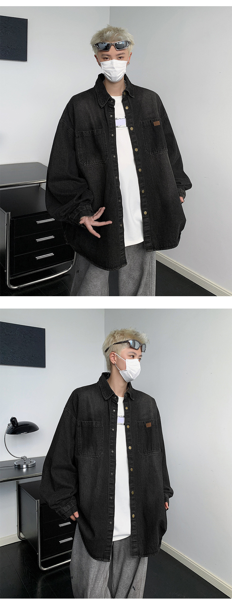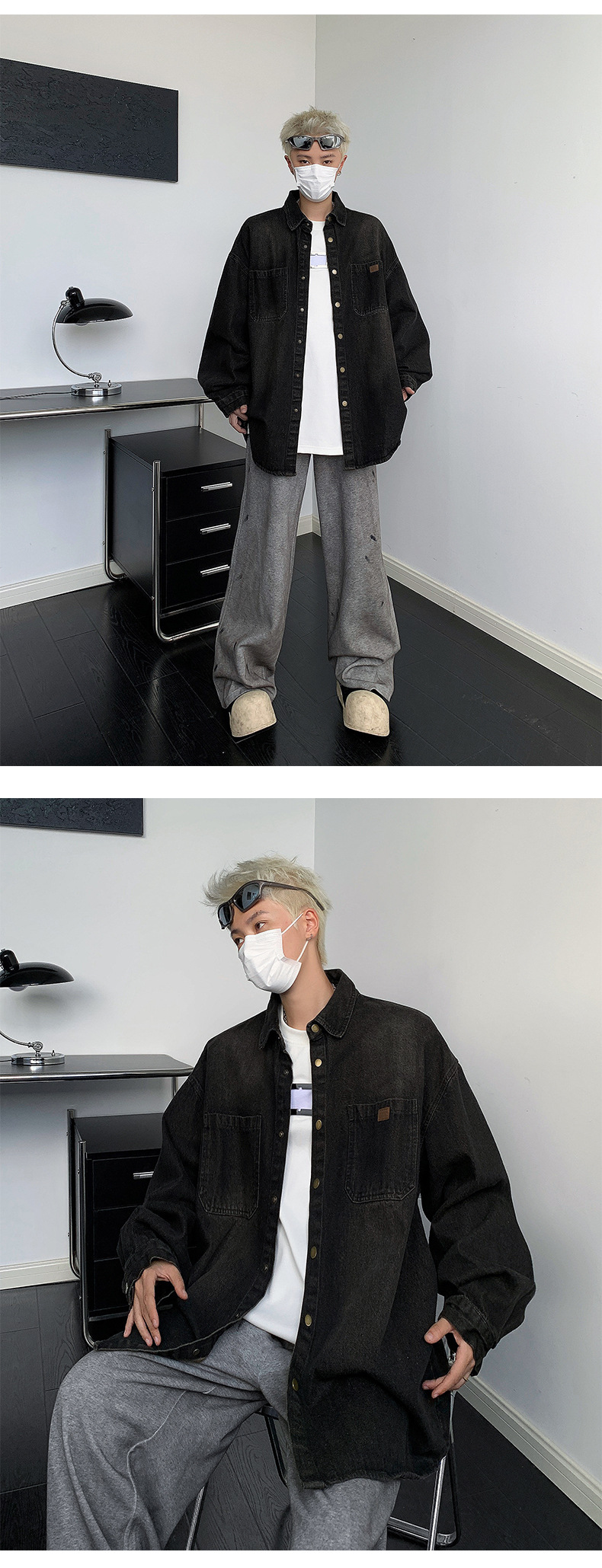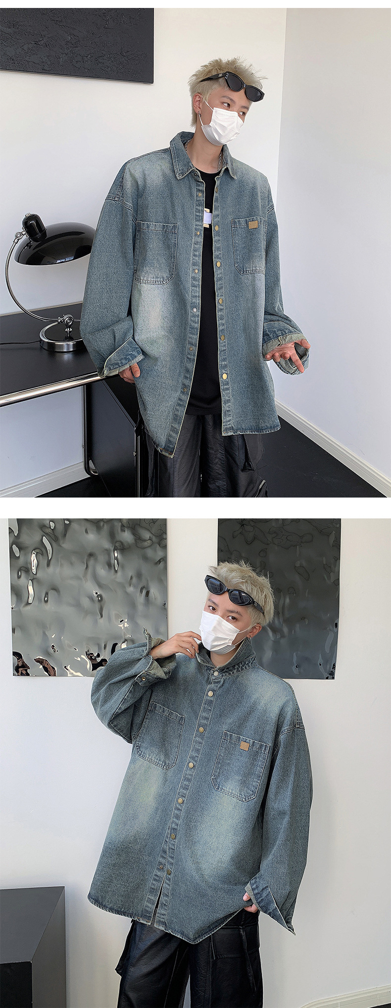 Camisa de mezclilla estilo americano, moderna, retro, teñida con cemento, para hombre, camisa informal holgada de manga larga para otoño, chaqueta tipo camisa para hombre.