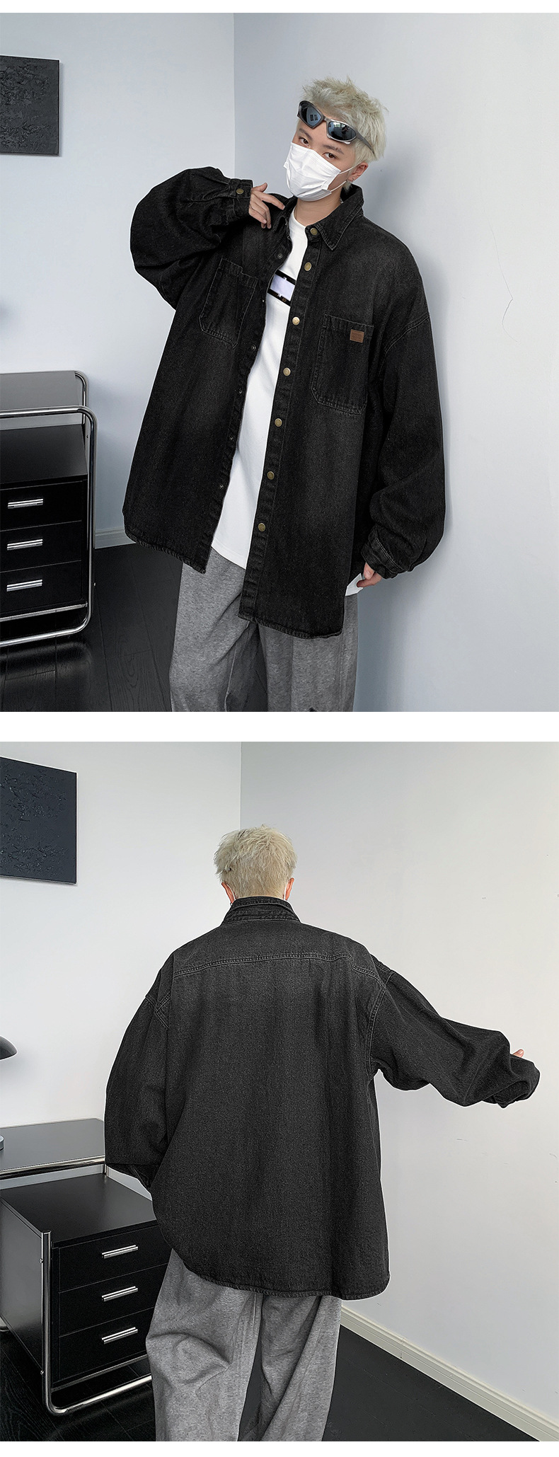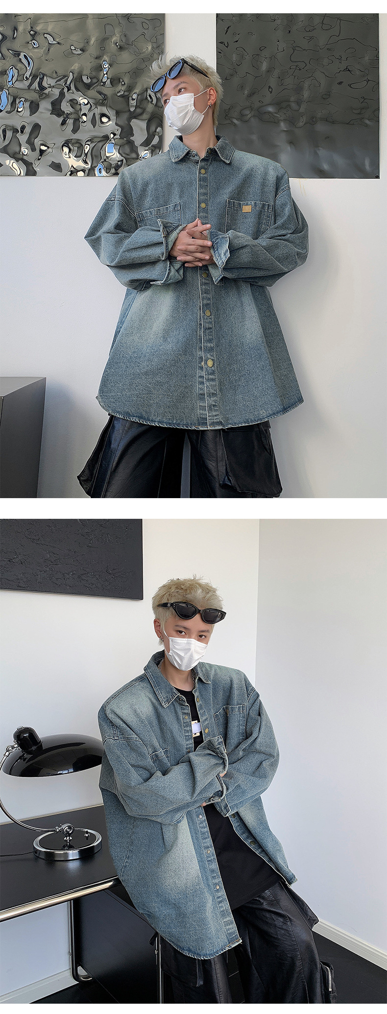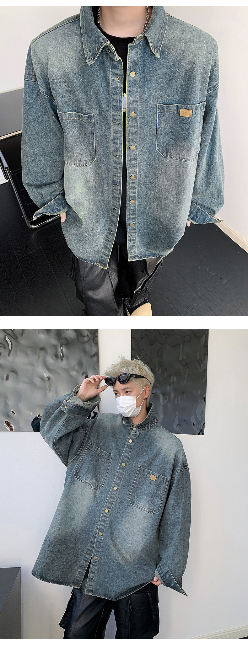Camisa de mezclilla estilo americano, moderna, retro, teñida con cemento, para hombre, camisa informal holgada de manga larga para otoño, chaqueta tipo camisa para hombre.