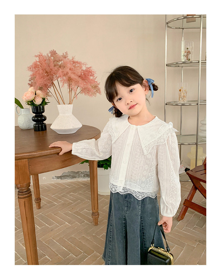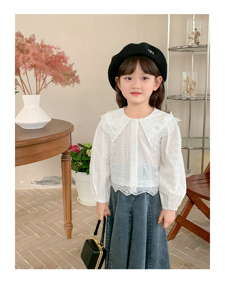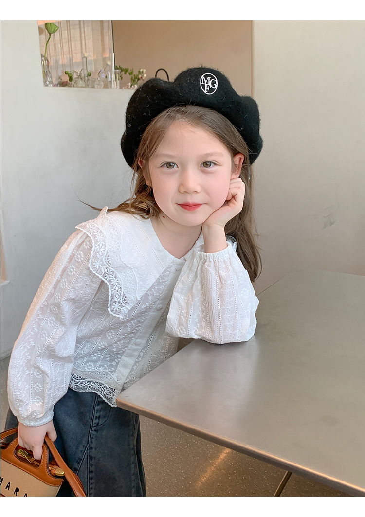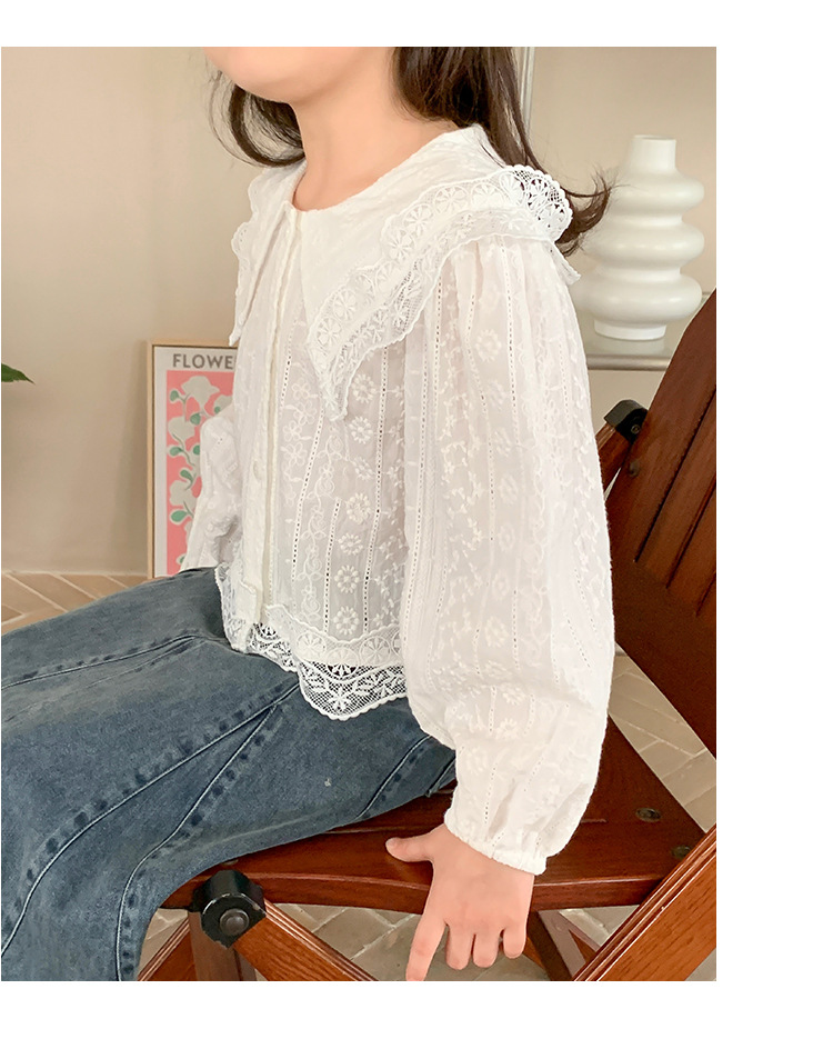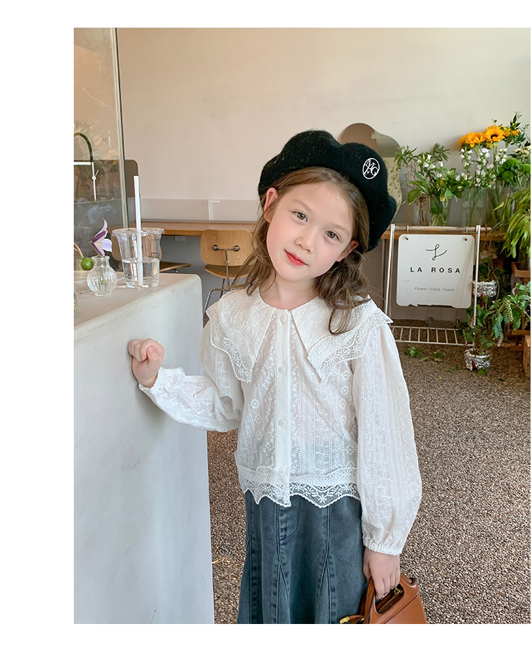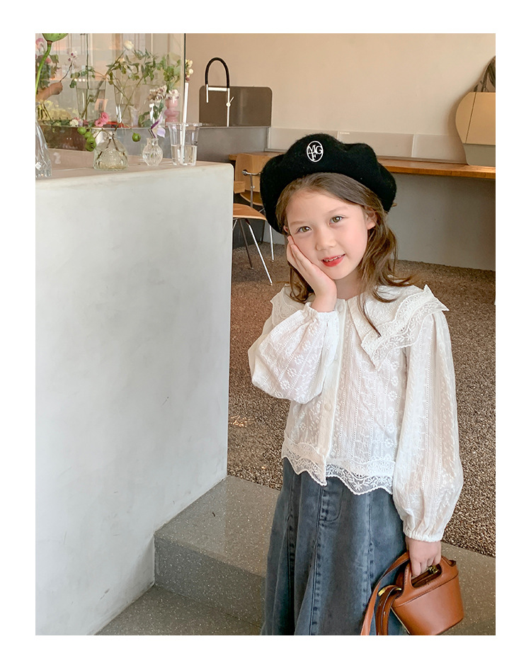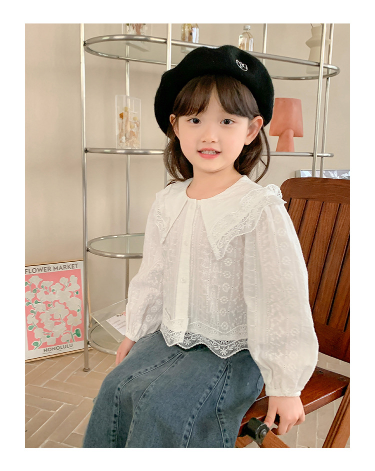 Camisa de muñeca de las niñas 2023 otoño nuevo estilo dulce bordado hueco superior de los niños camisa superior de encaje