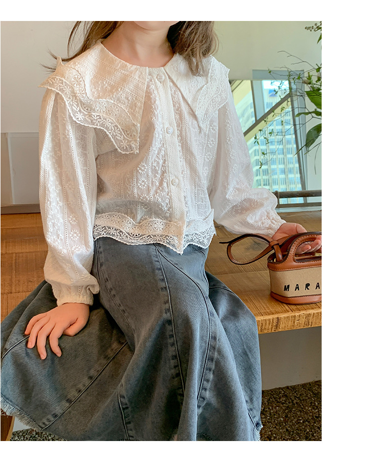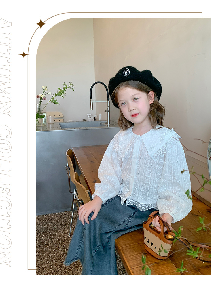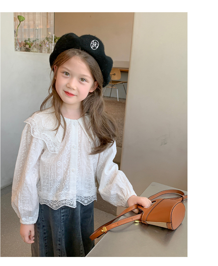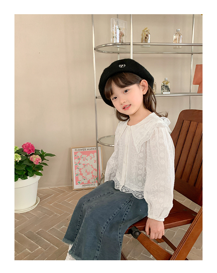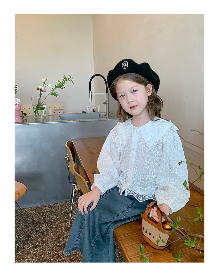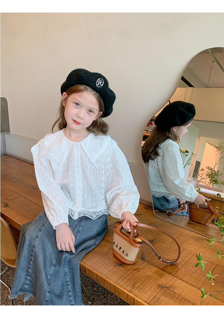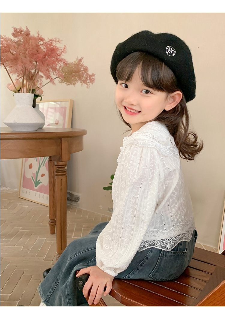 Camisa de muñeca de las niñas 2023 otoño nuevo estilo dulce bordado hueco superior de los niños camisa superior de encaje