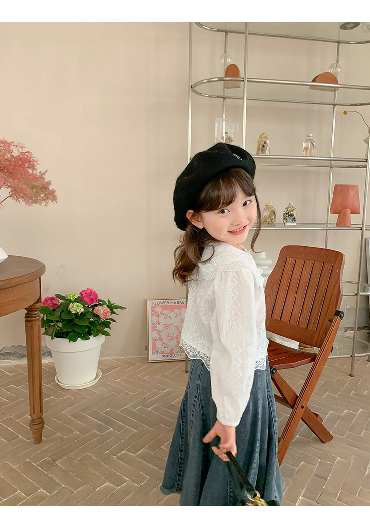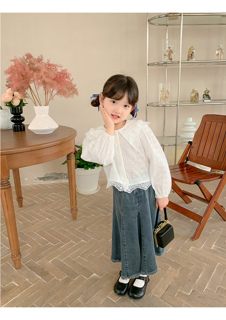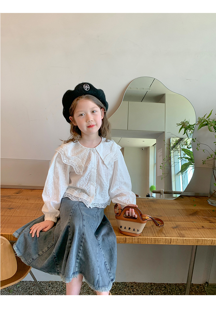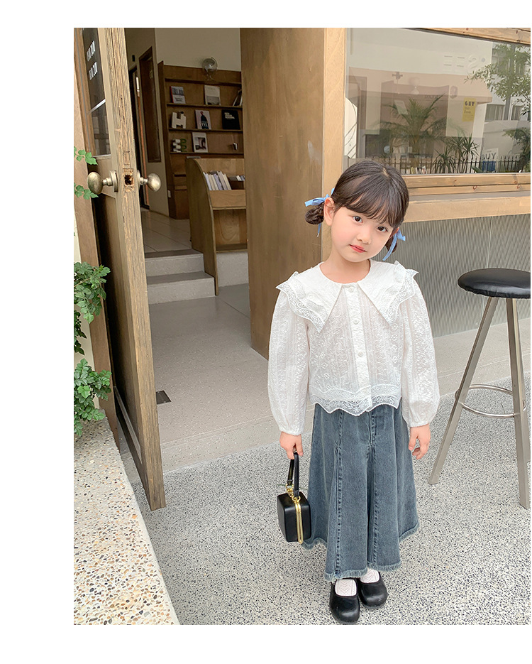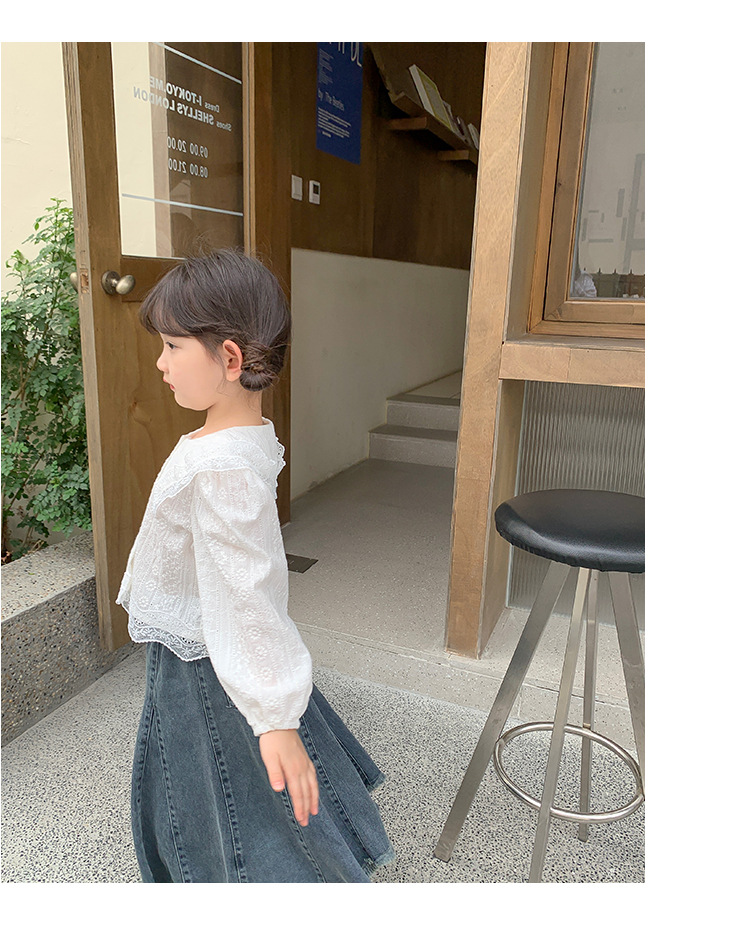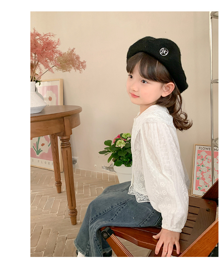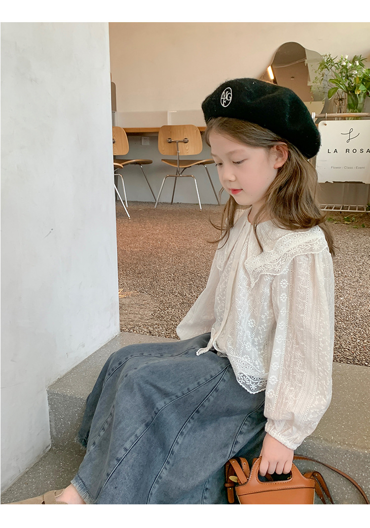 Camisa de muñeca de las niñas 2023 otoño nuevo estilo dulce bordado hueco superior de los niños camisa superior de encaje