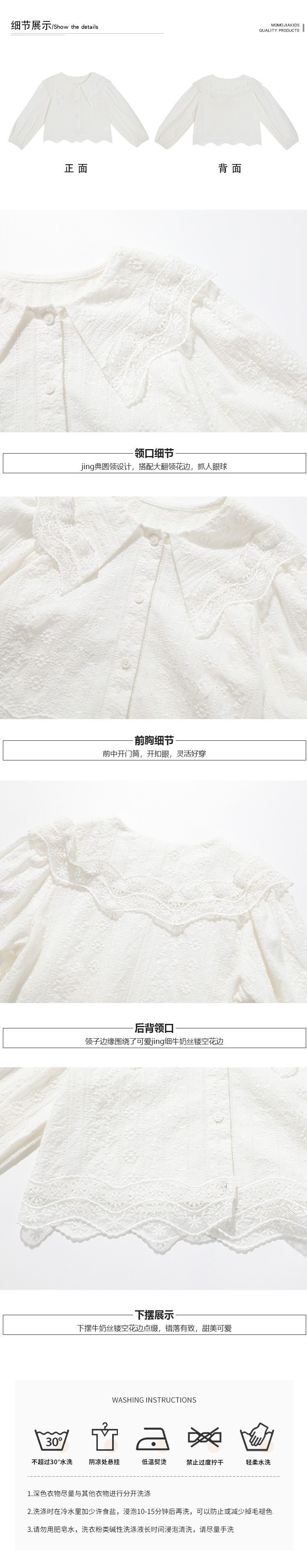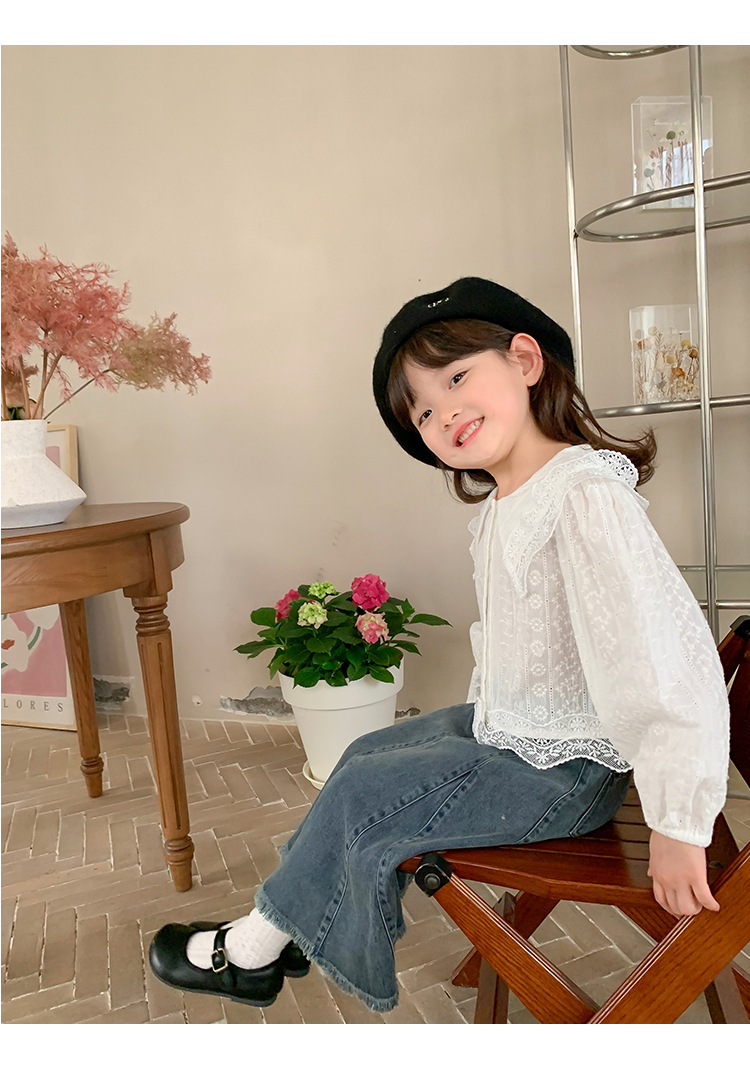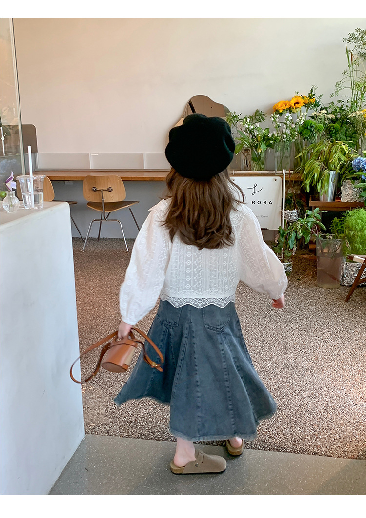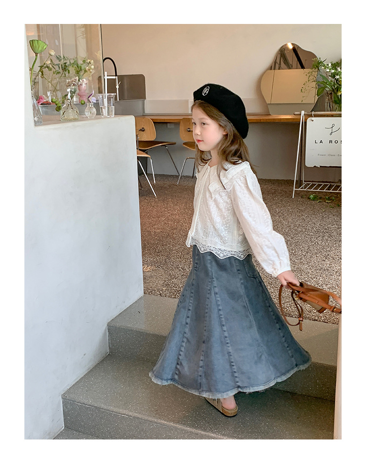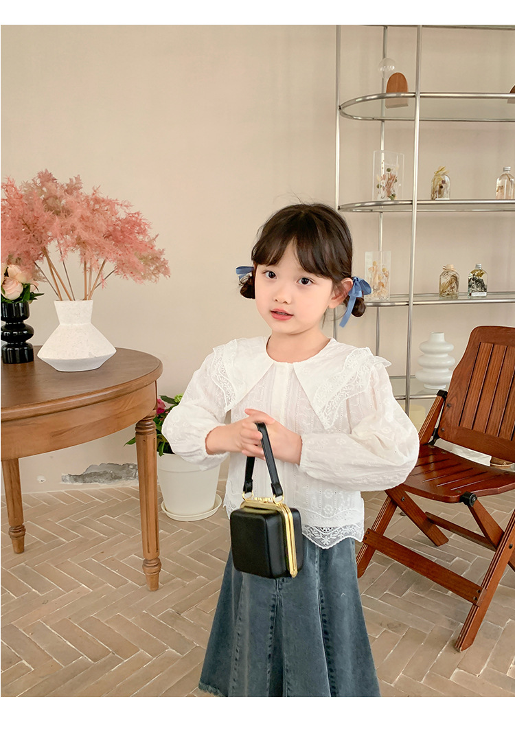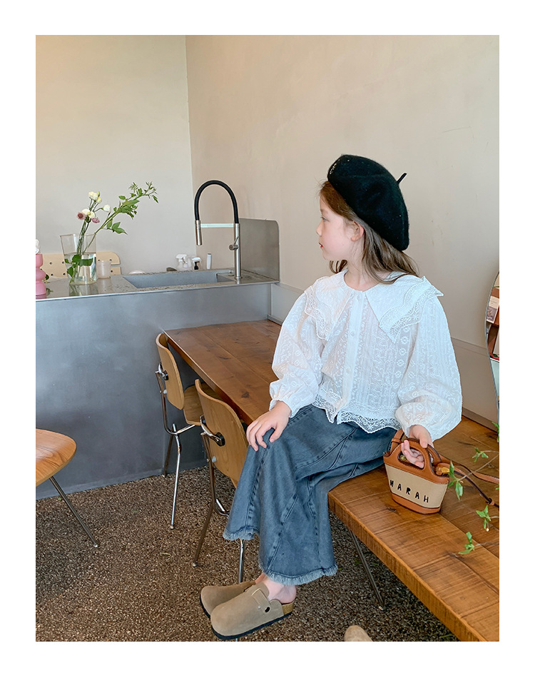 Camisa de muñeca de las niñas 2023 otoño nuevo estilo dulce bordado hueco superior de los niños camisa superior de encaje