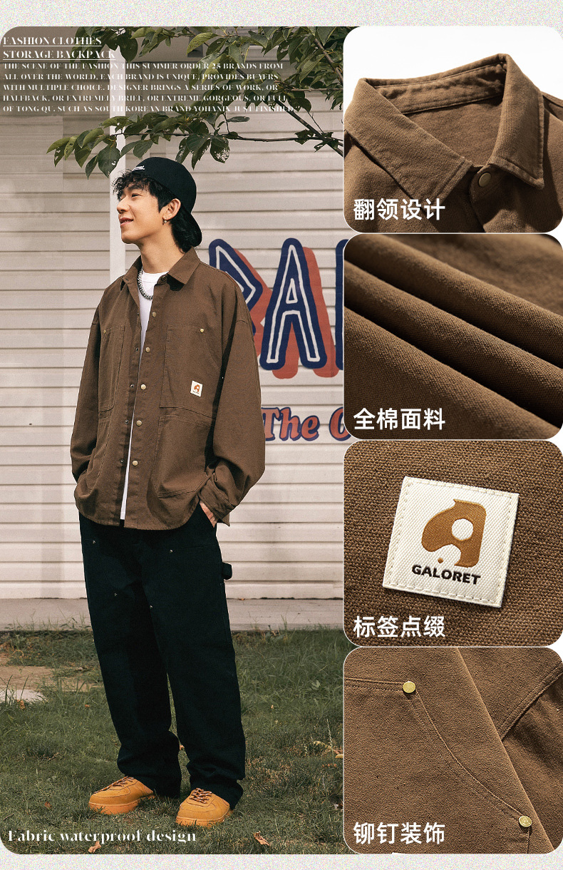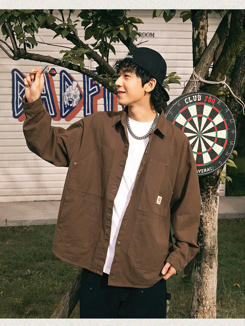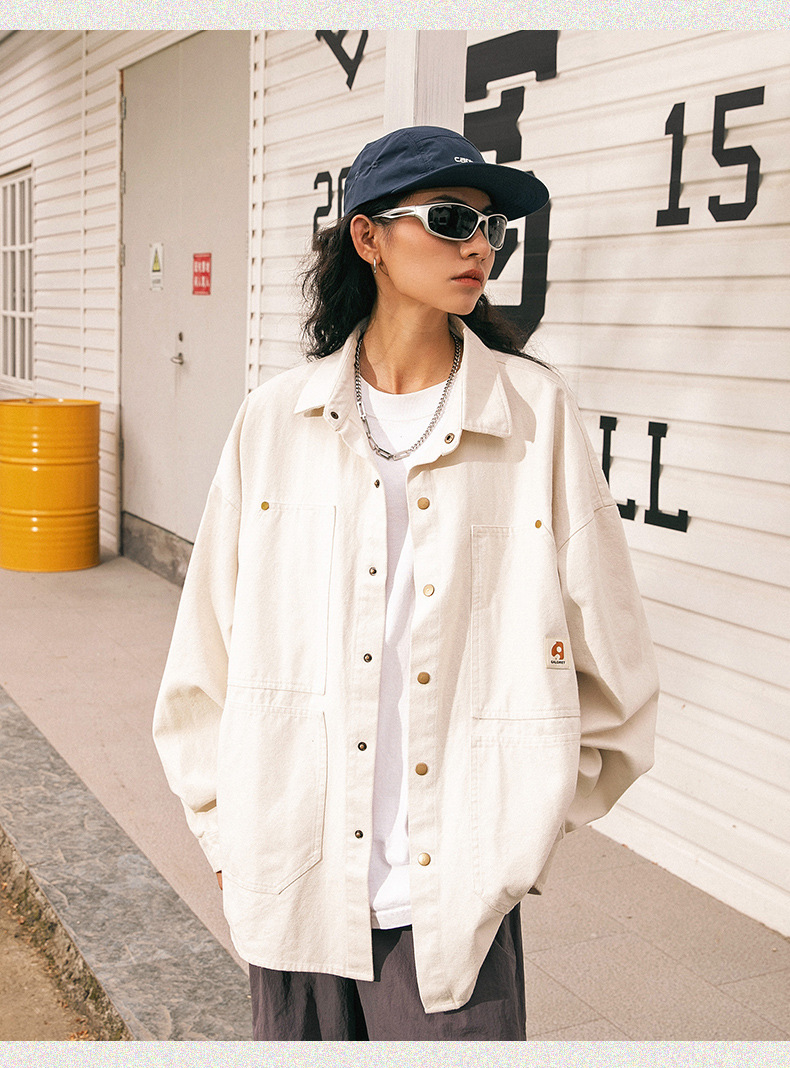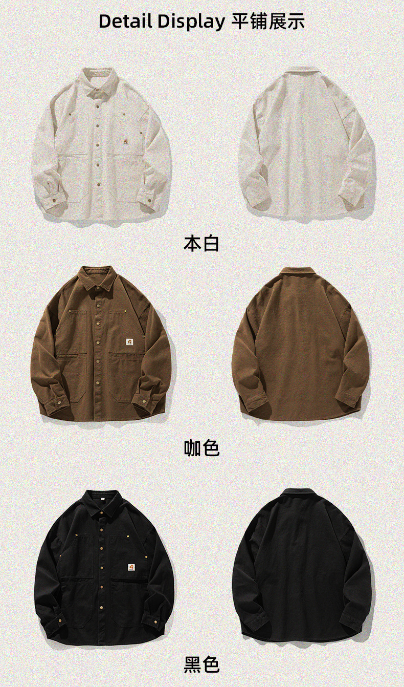 Camisa de manga larga de algodón puro retro americana lavada, nueva camisa holgada de primavera para mujer, estilo urbano, para parejas, tipo chaqueta q