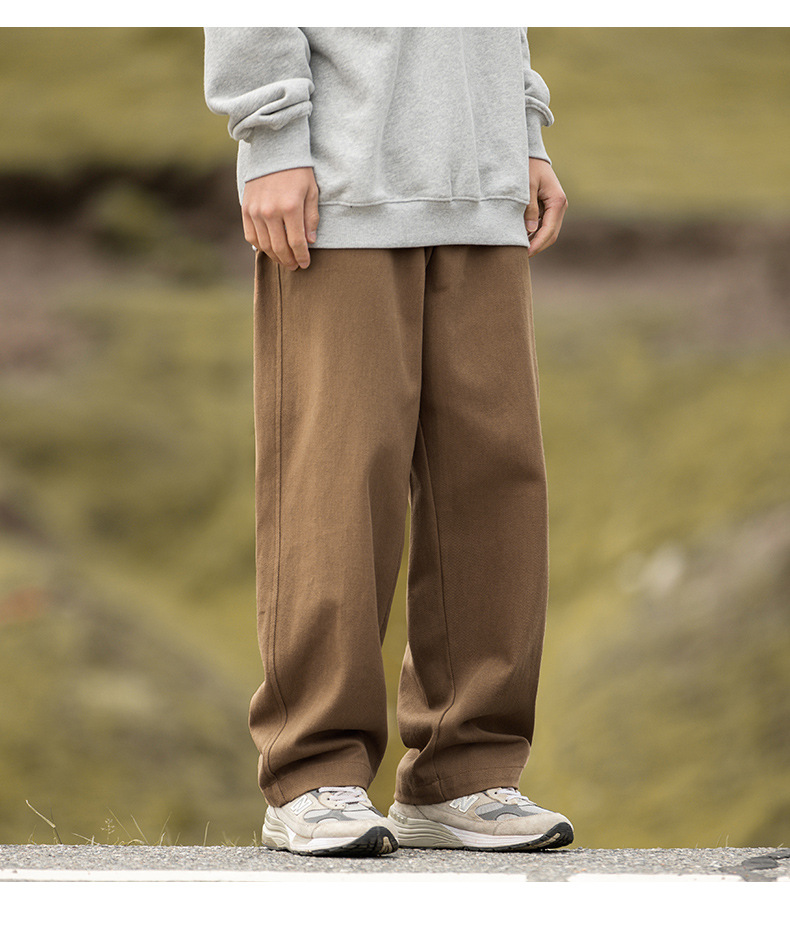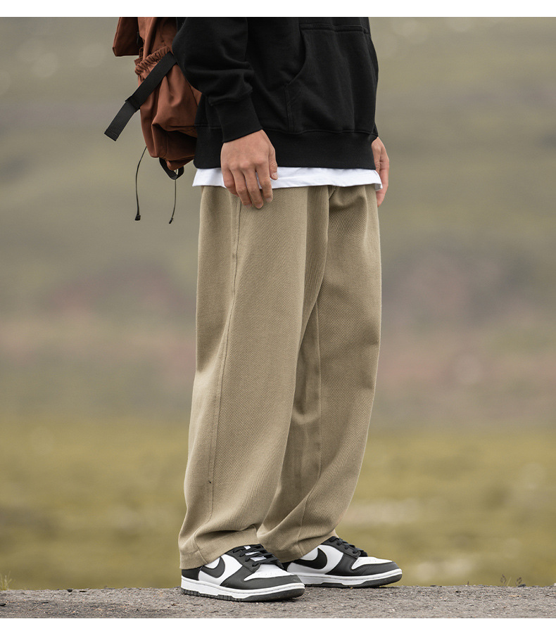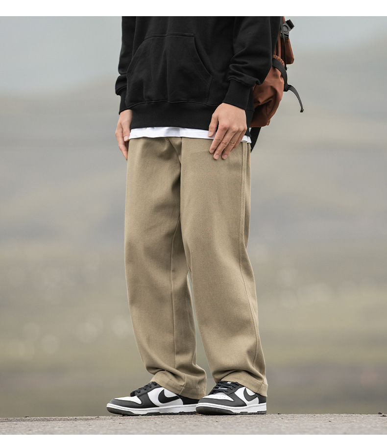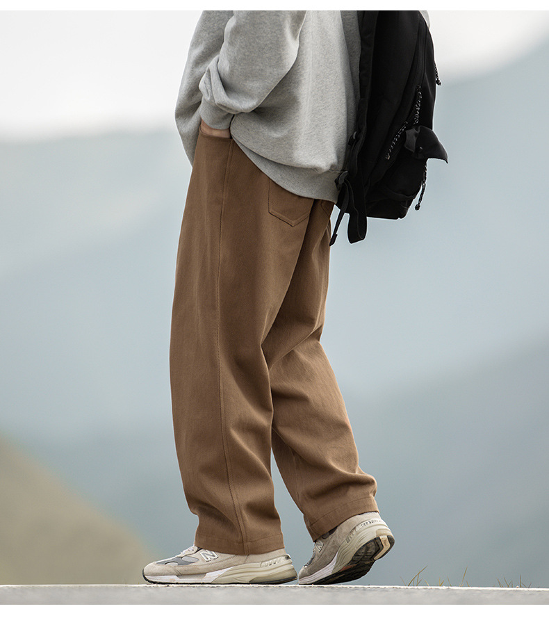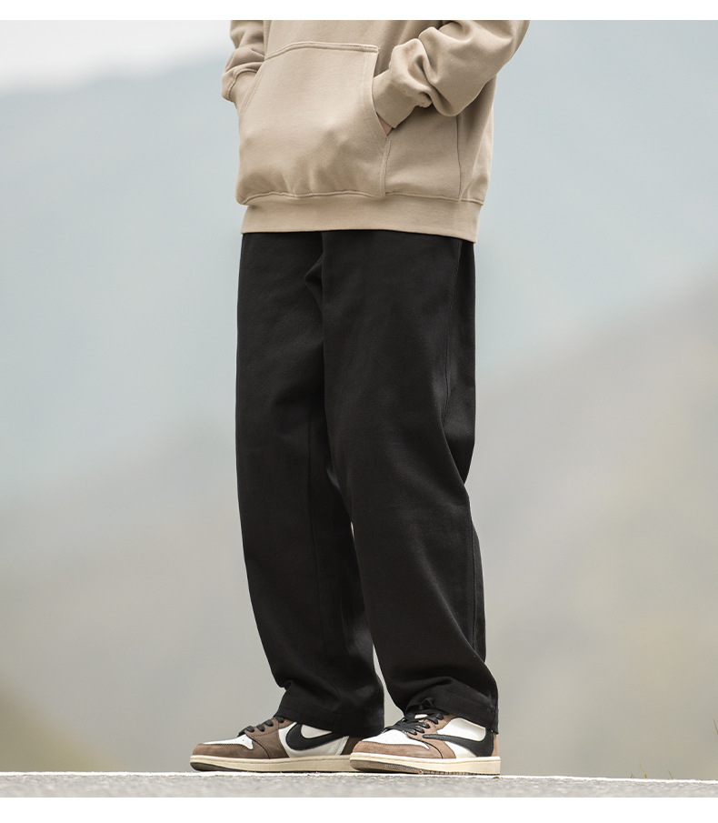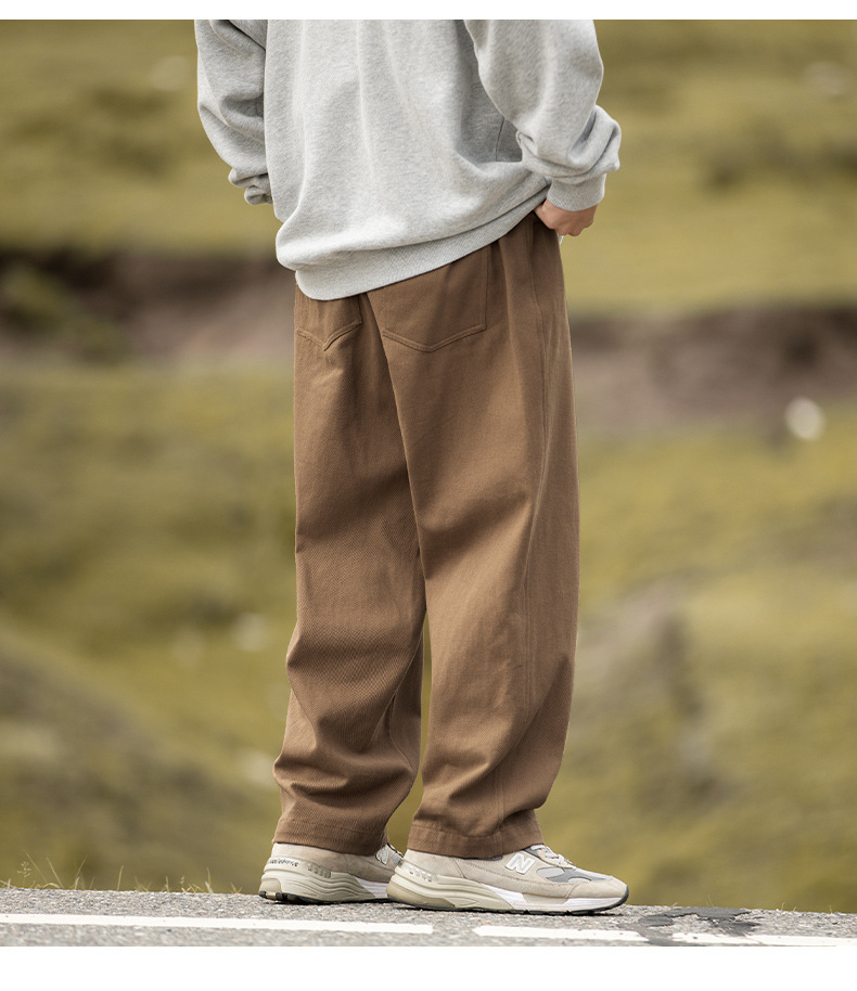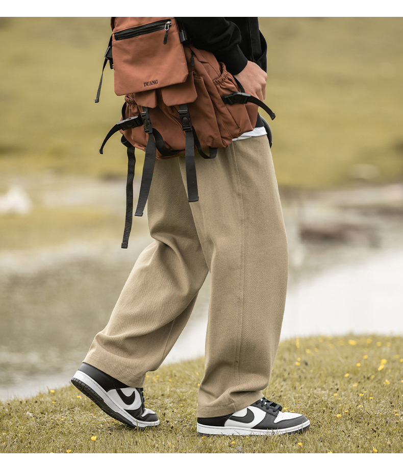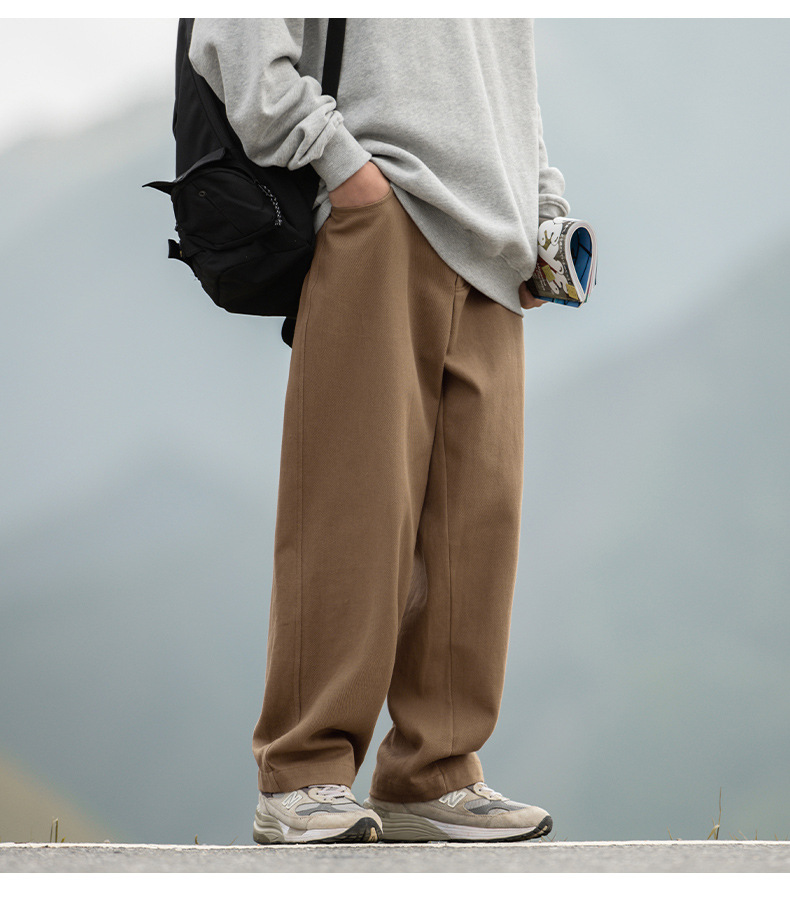 Pantalones casuales sueltos rectos de microperfil para hombre 2025 primavera nuevo estilo montaña pantalones retro de sarga de textura de algodón puro de todo fósforo