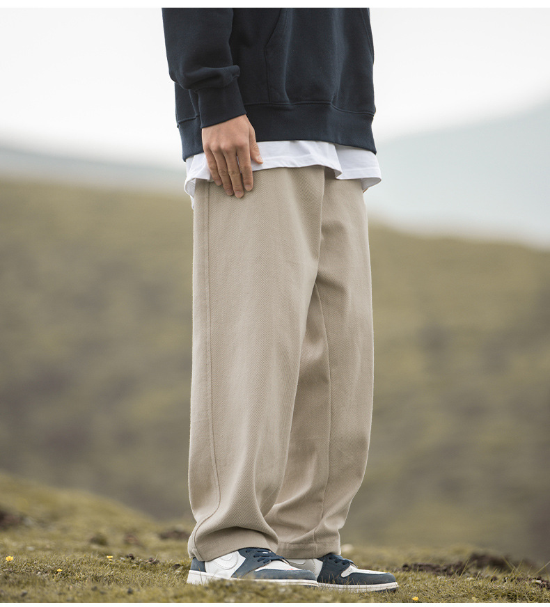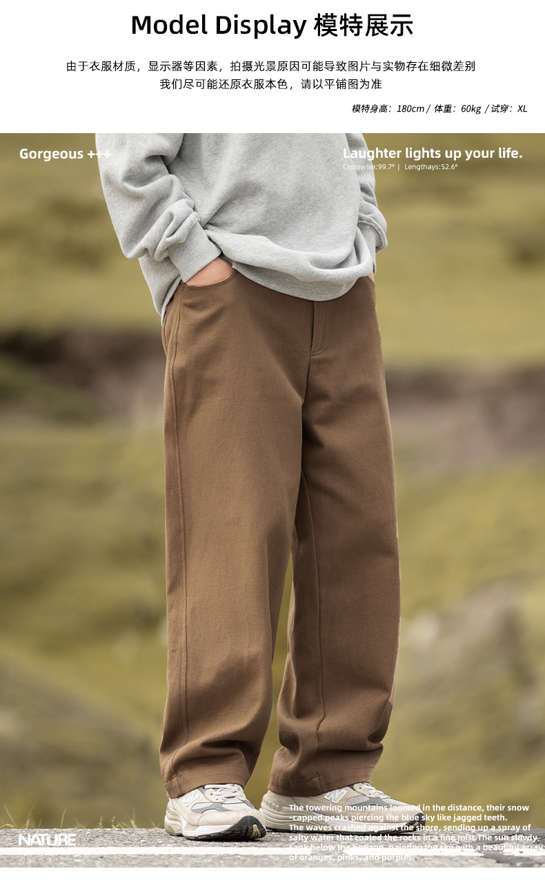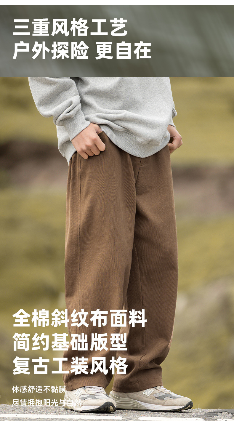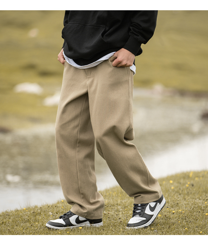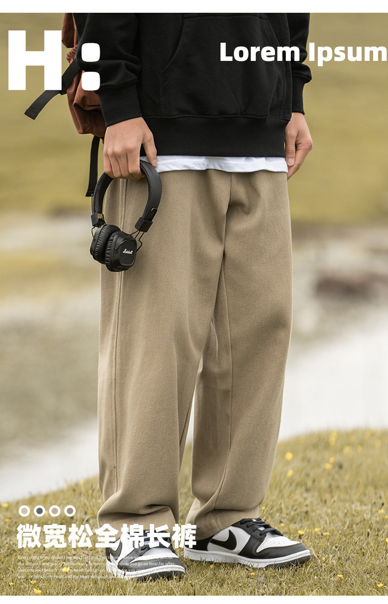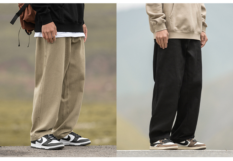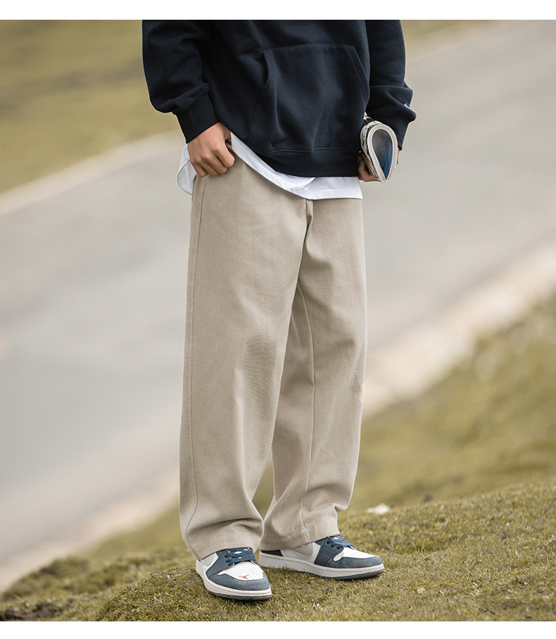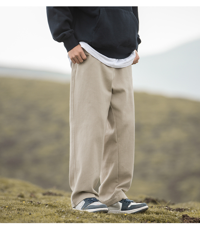 Pantalones casuales sueltos rectos de microperfil para hombre 2025 primavera nuevo estilo montaña pantalones retro de sarga de textura de algodón puro de todo fósforo