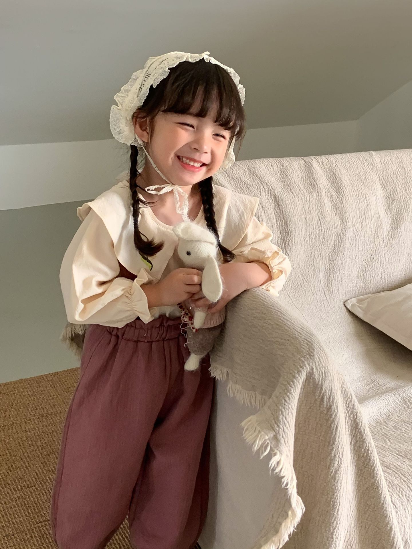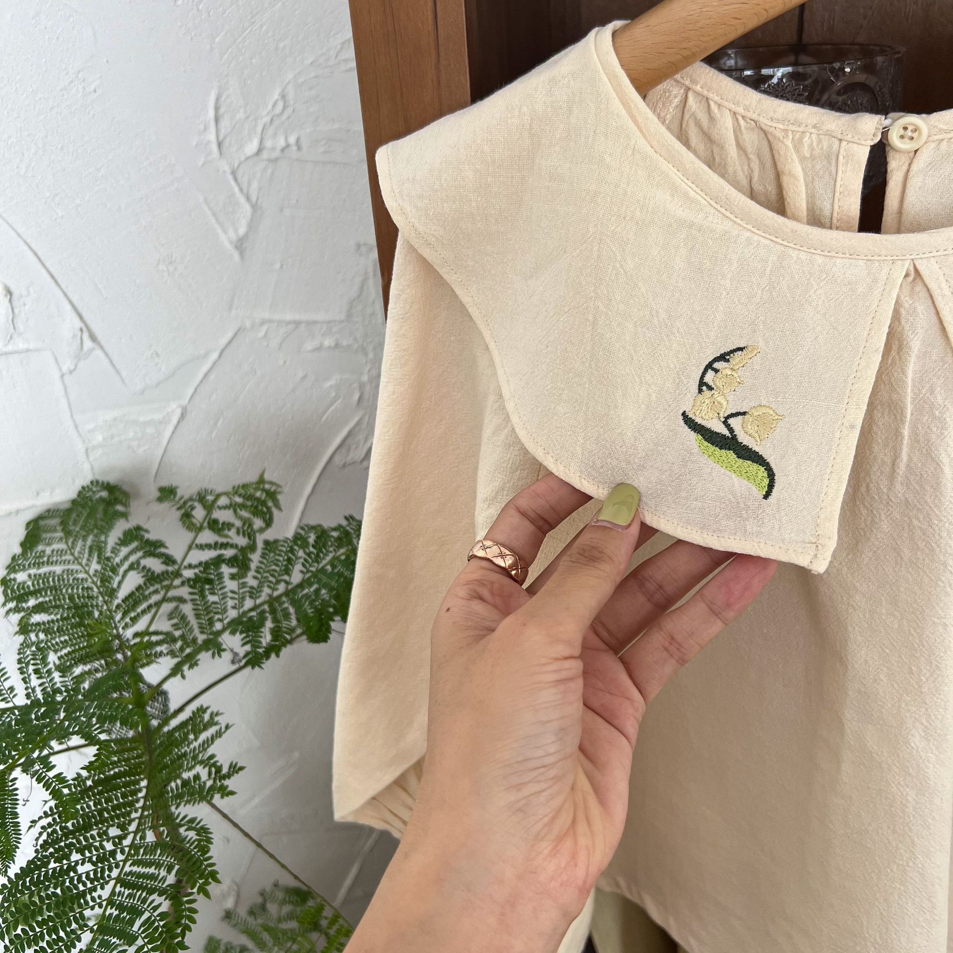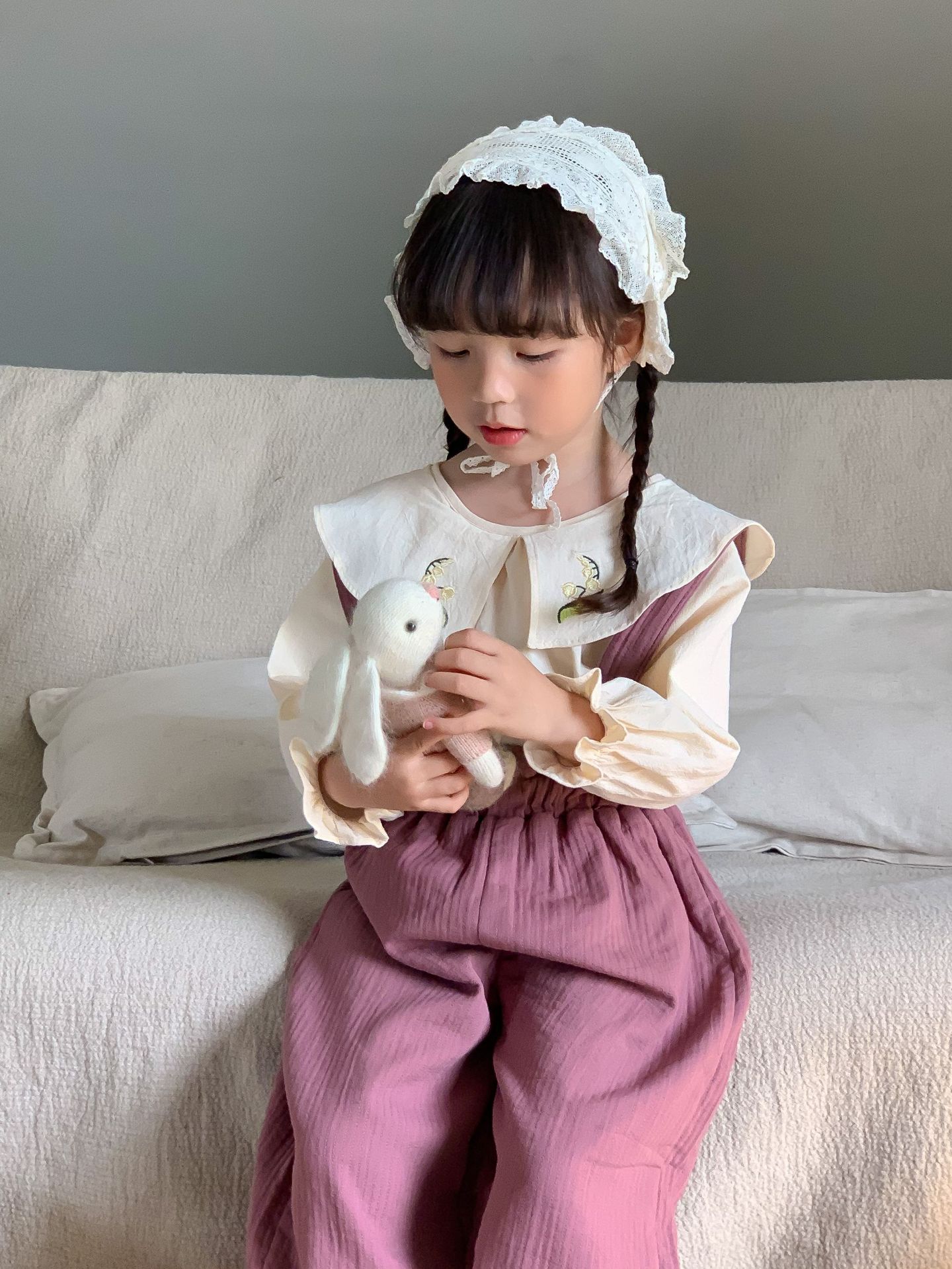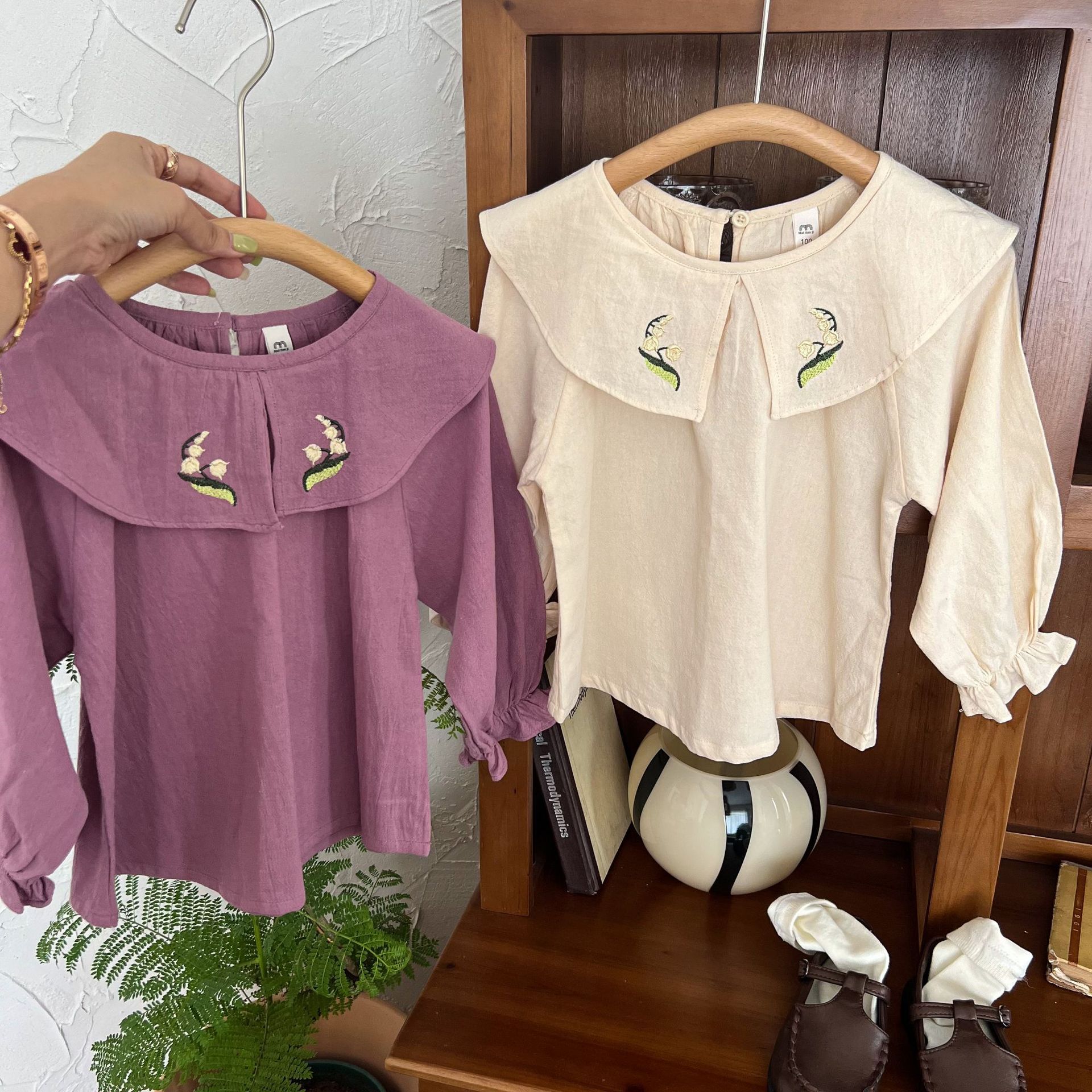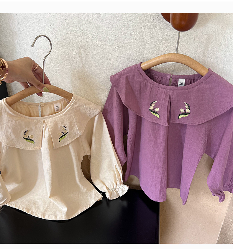Campo DE TRIGO 2023 primavera y otoño nueva Corea del Sur camisa de cuello de muñeca para niños camisa de manga larga de encaje bordado