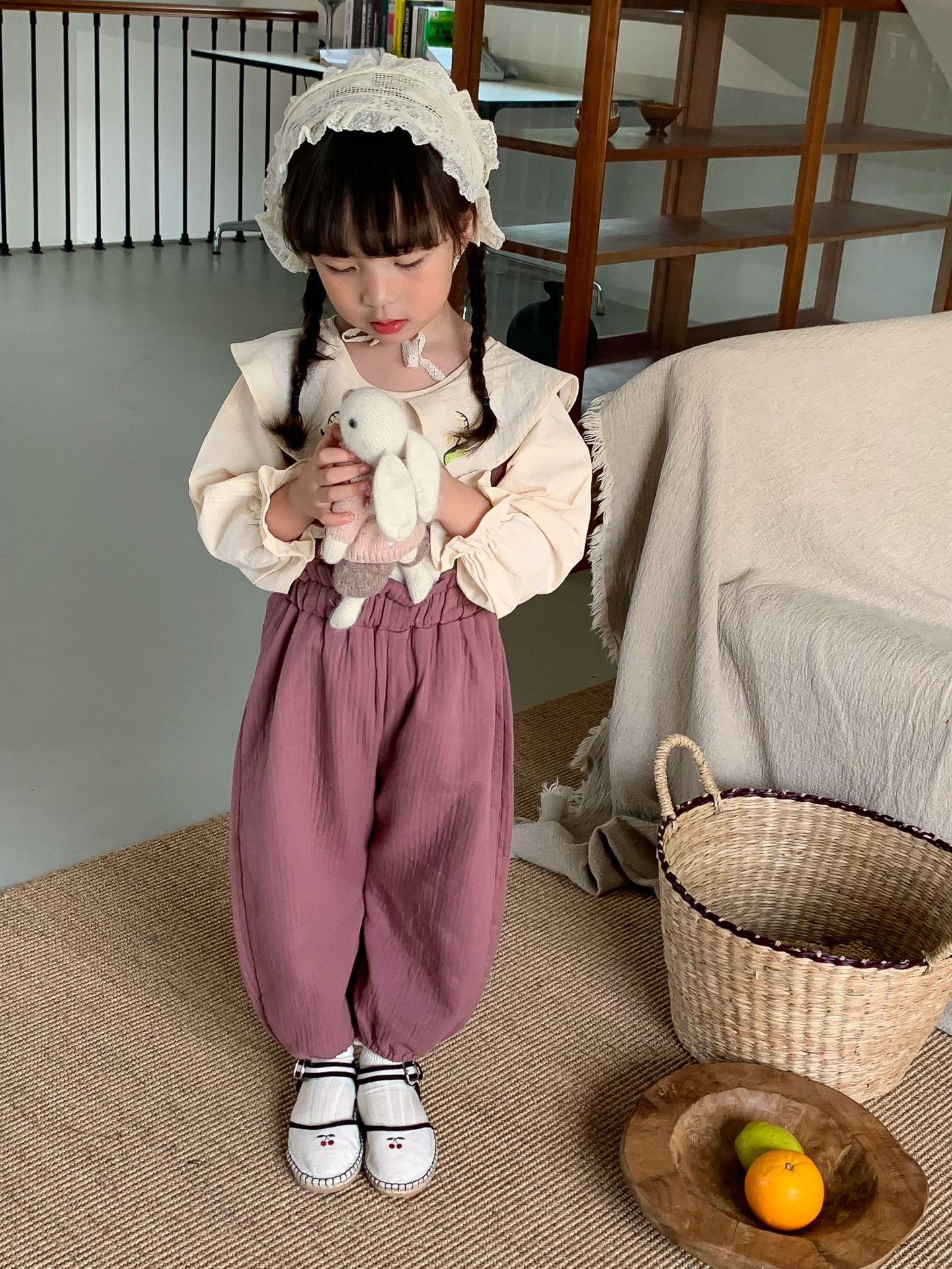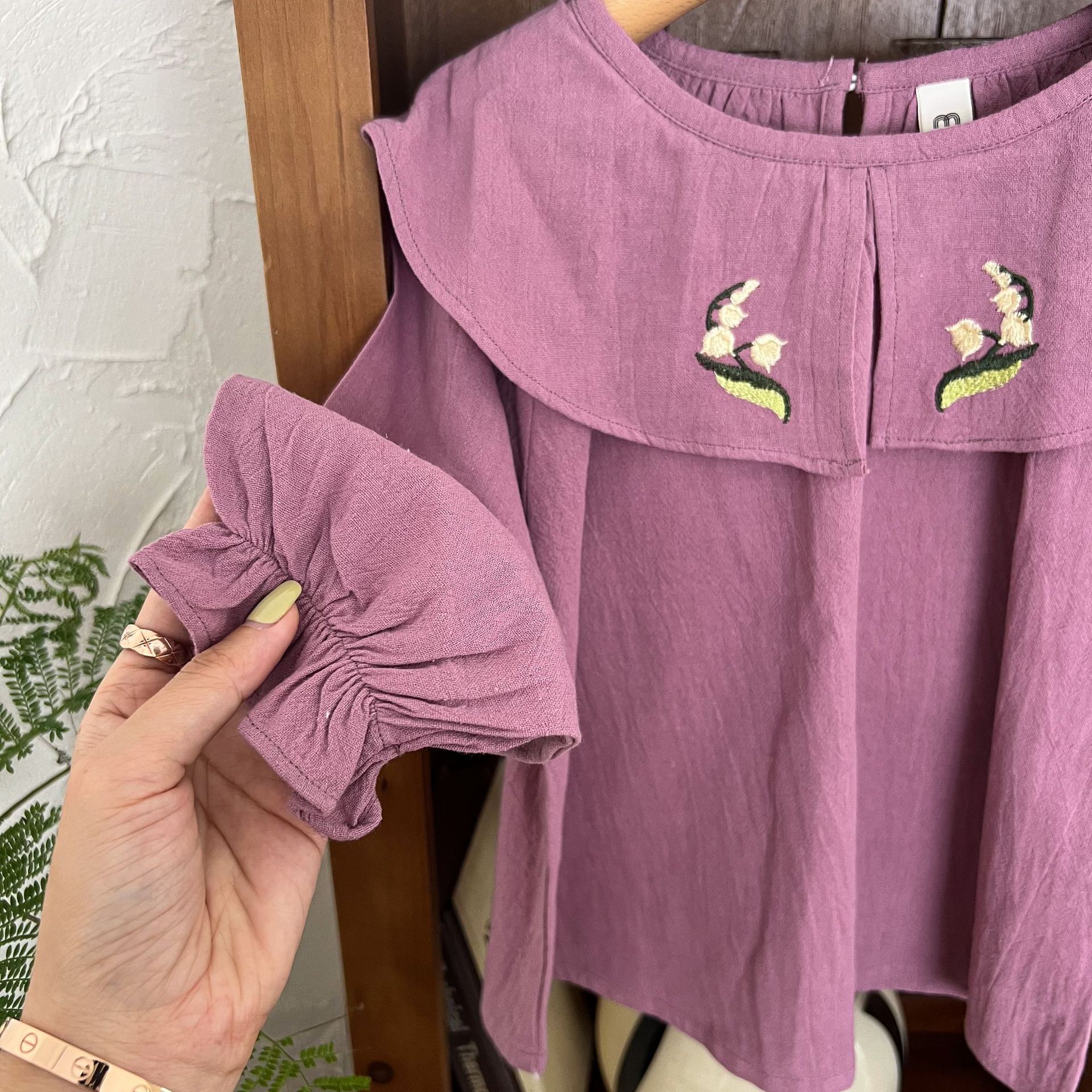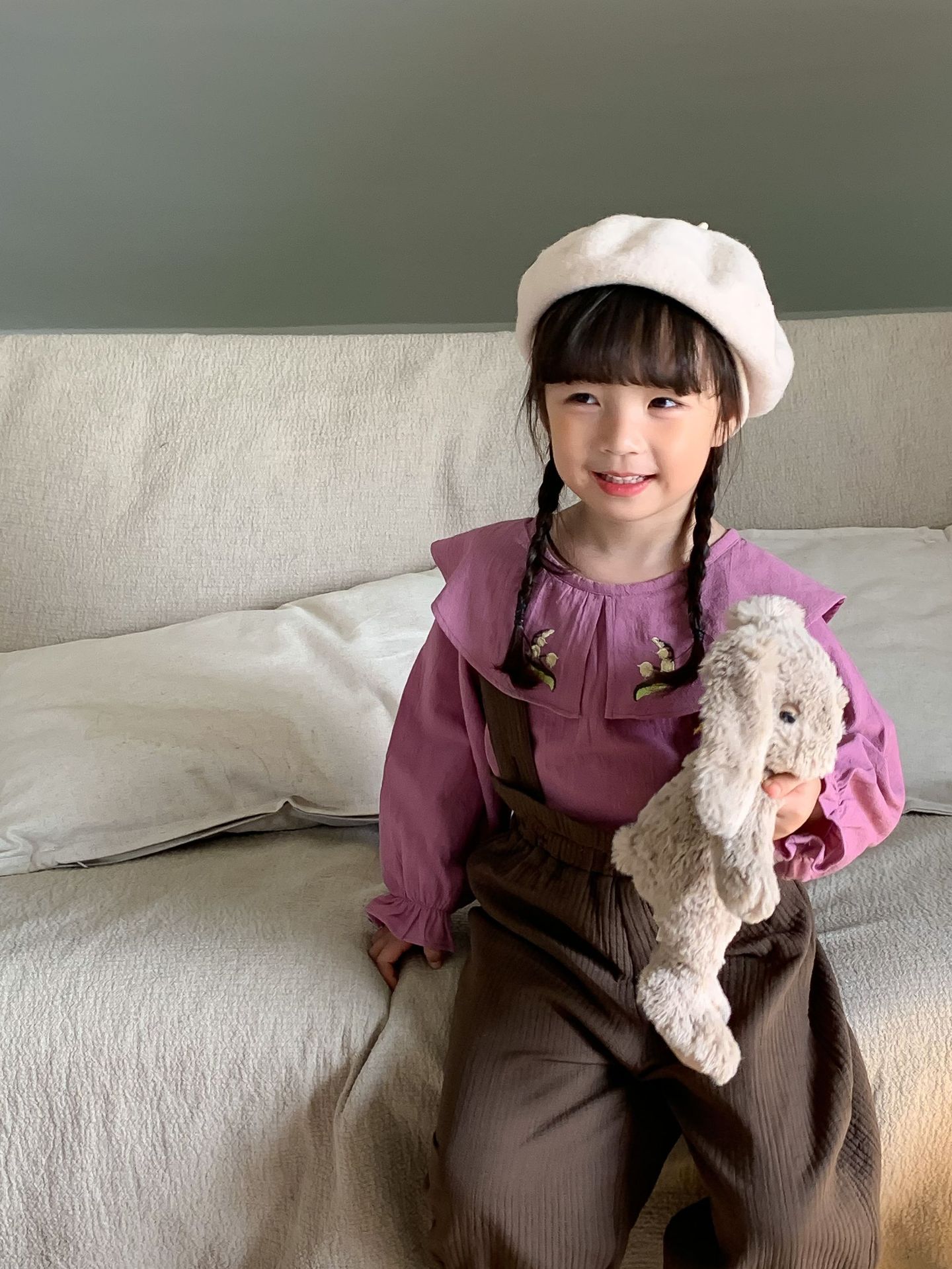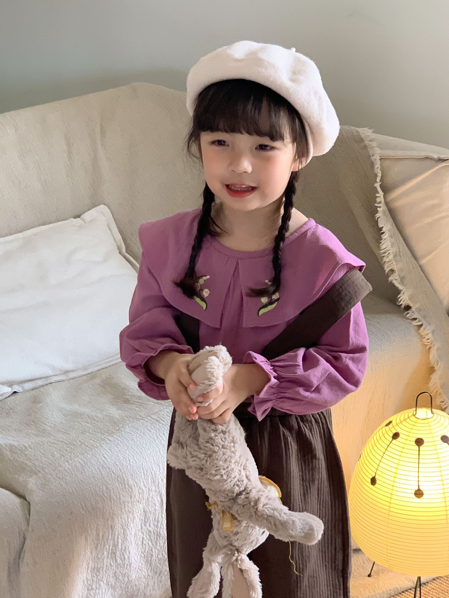 Campo DE TRIGO 2023 primavera y otoño nueva Corea del Sur camisa de cuello de muñeca para niños camisa de manga larga de encaje bordado