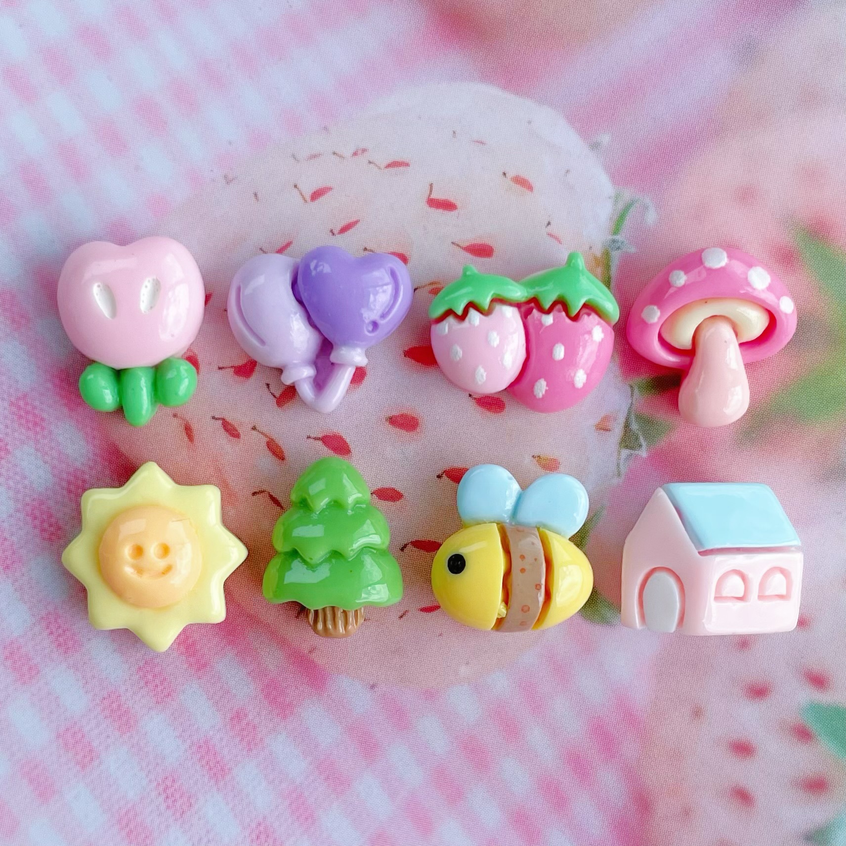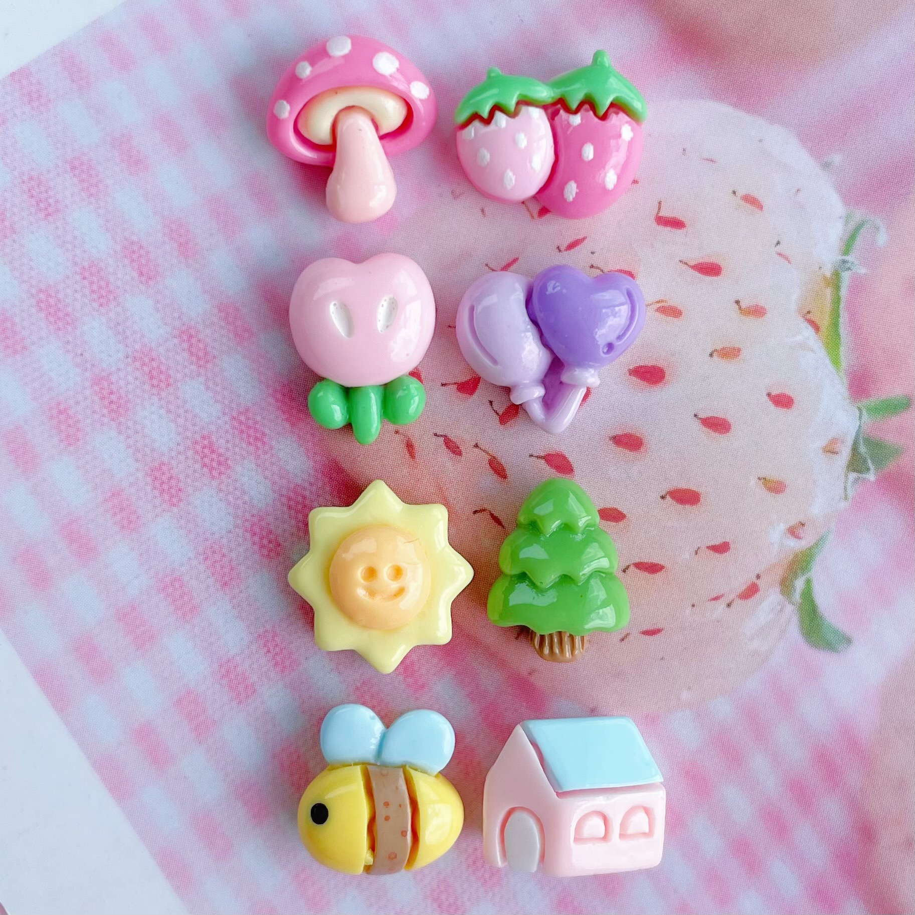 Pequeño árbol seta abeja flor casa mini tamaño pequeño brillante accesorios de resina crema pegamento circunferencia uñas adorno joyería