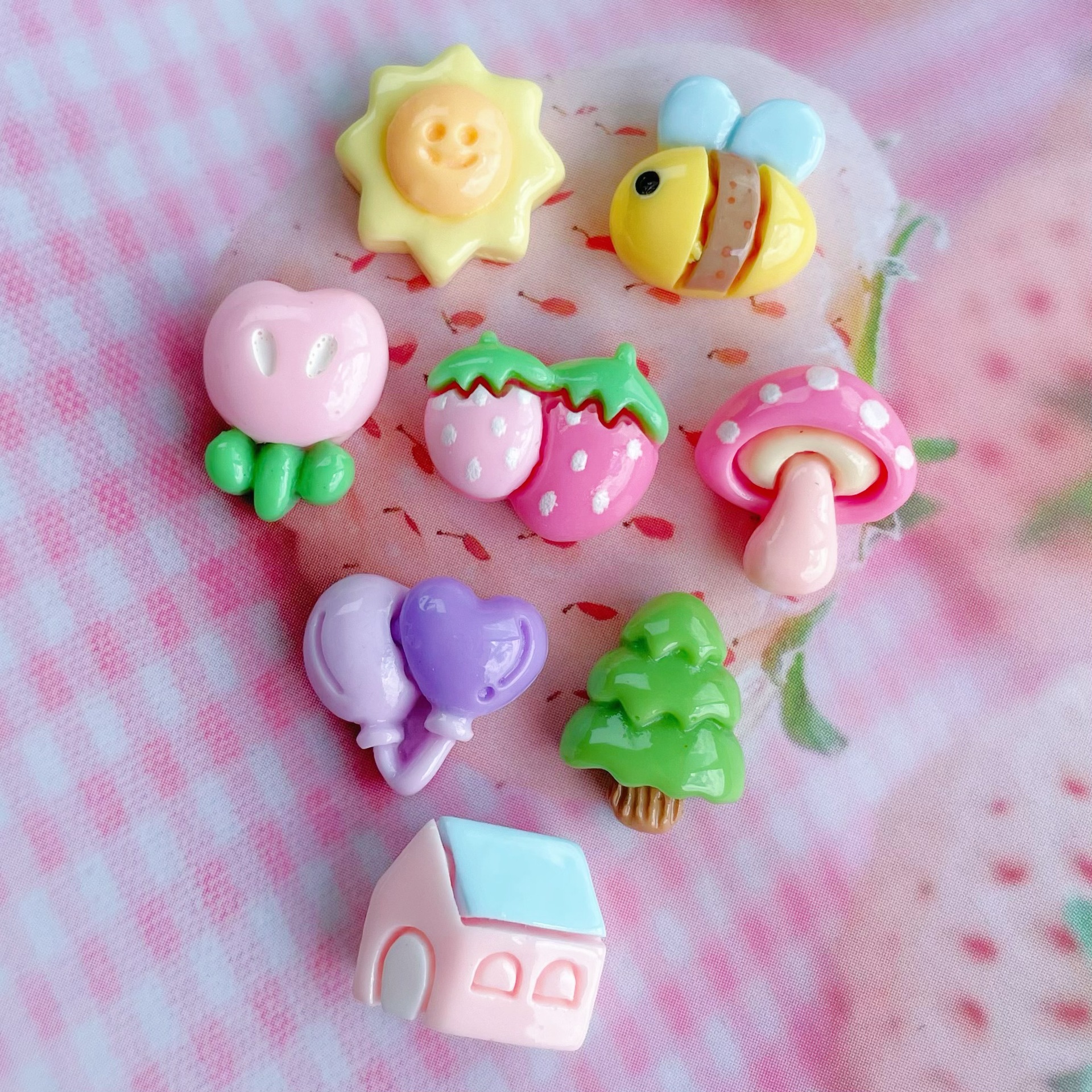 | Colores | Una mezcla aleatoria,1 * Shiitake Mini,2 * Doble Fresa Mini,3 * flores en polvo mini,4 * Mini globo de corazón púrpura,5 * polvo casa mini,6 * abeja mini,7 * Sol Mini,8 * árboles mini,9 * Tarro de miel |