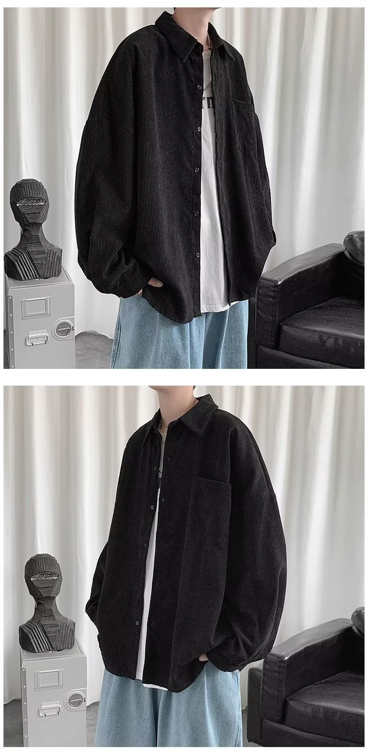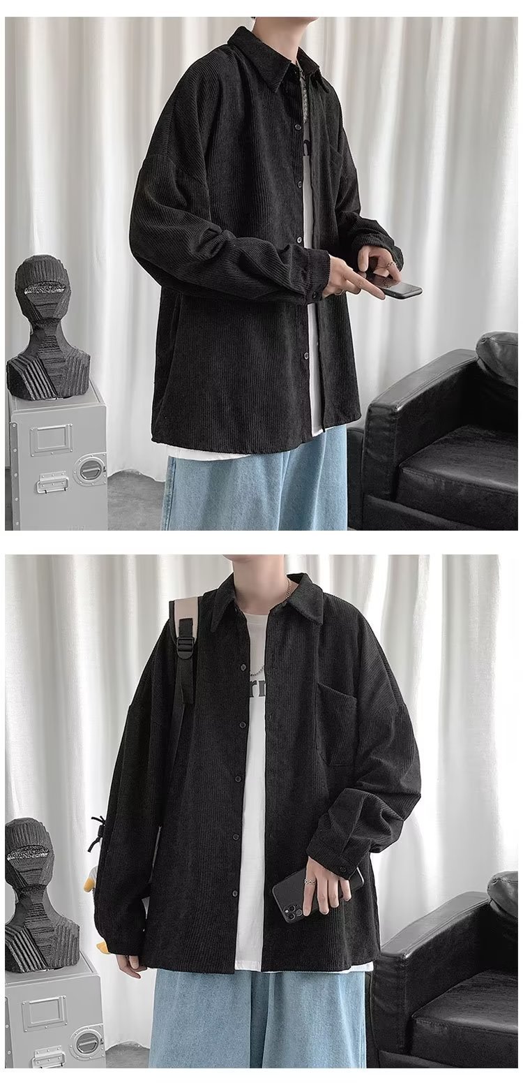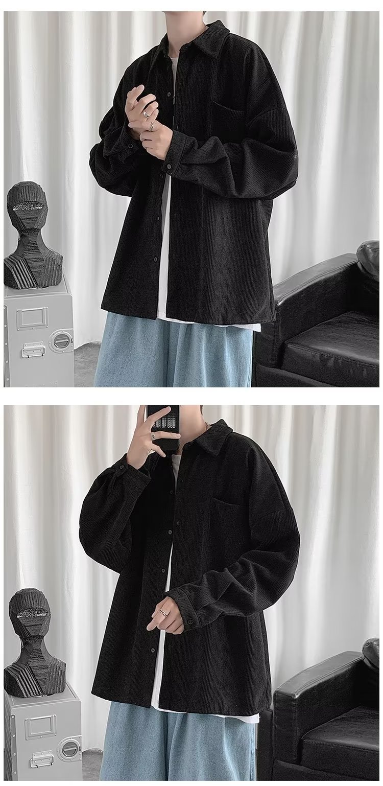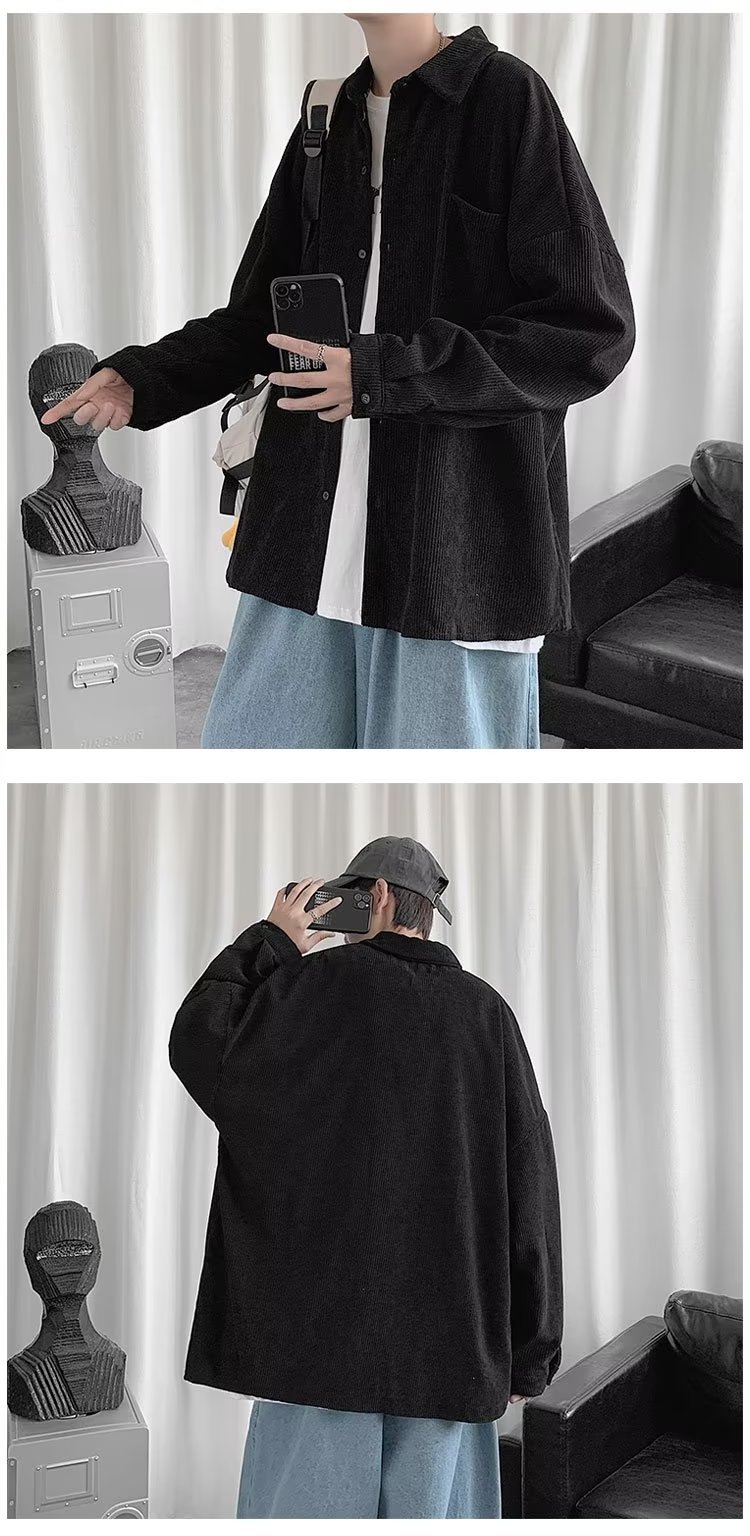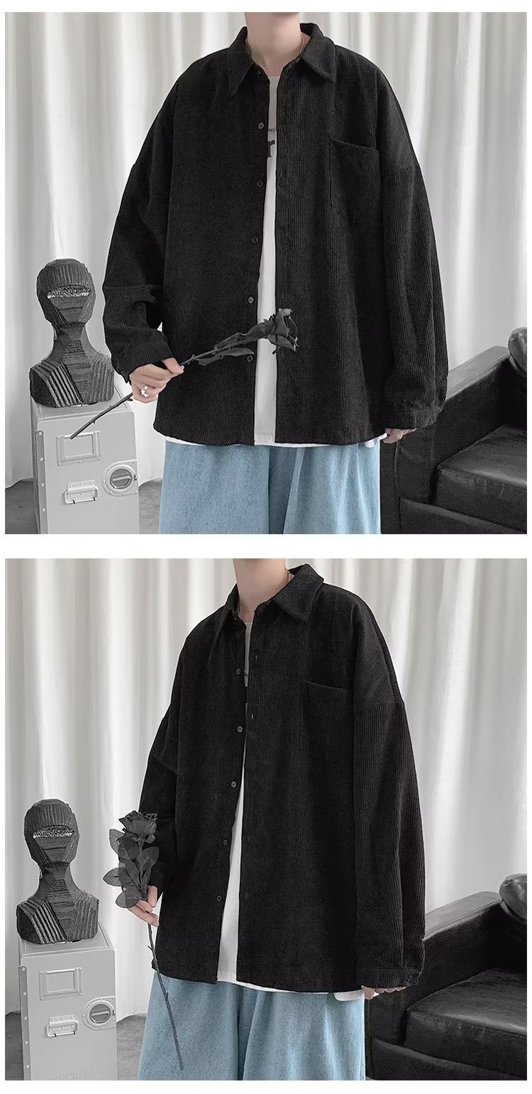 Camisa de pana para hombre 2023 nuevo estilo de Hong Kong moda suelta japonesa retro negro camisa casual chaqueta