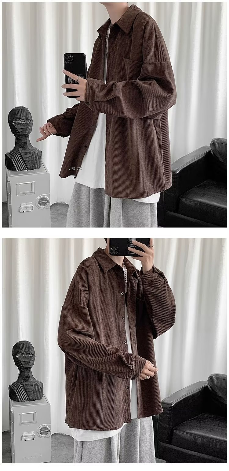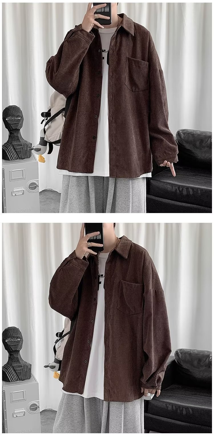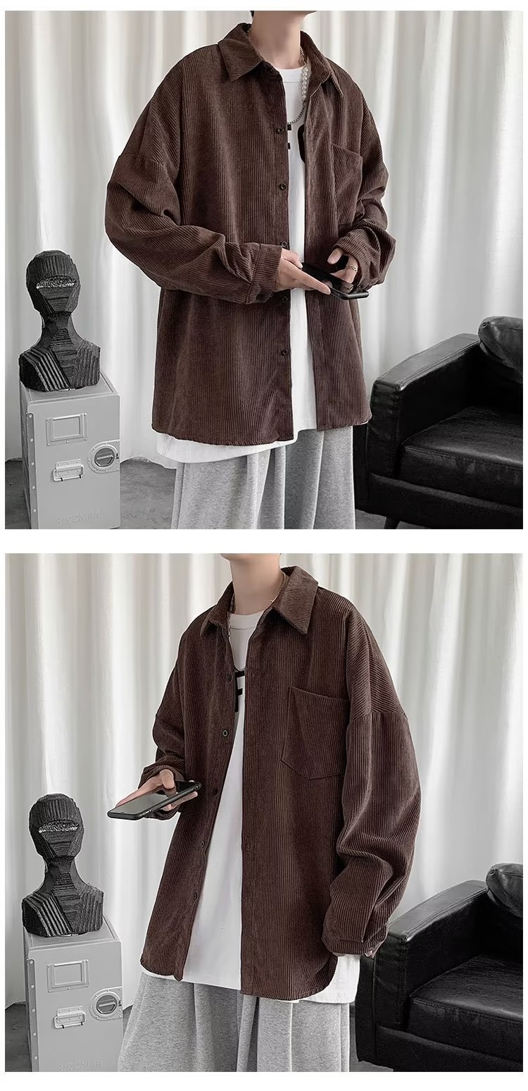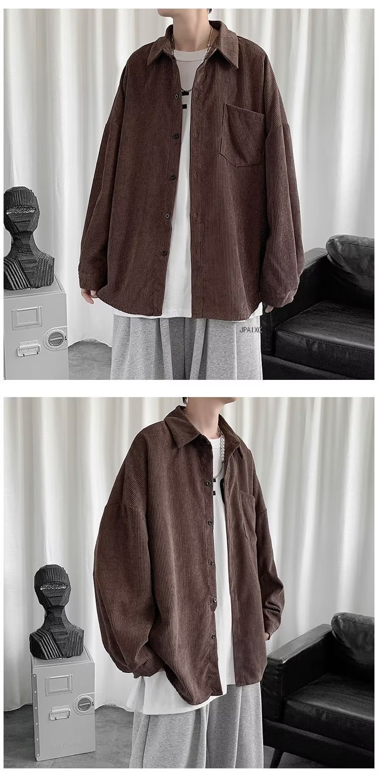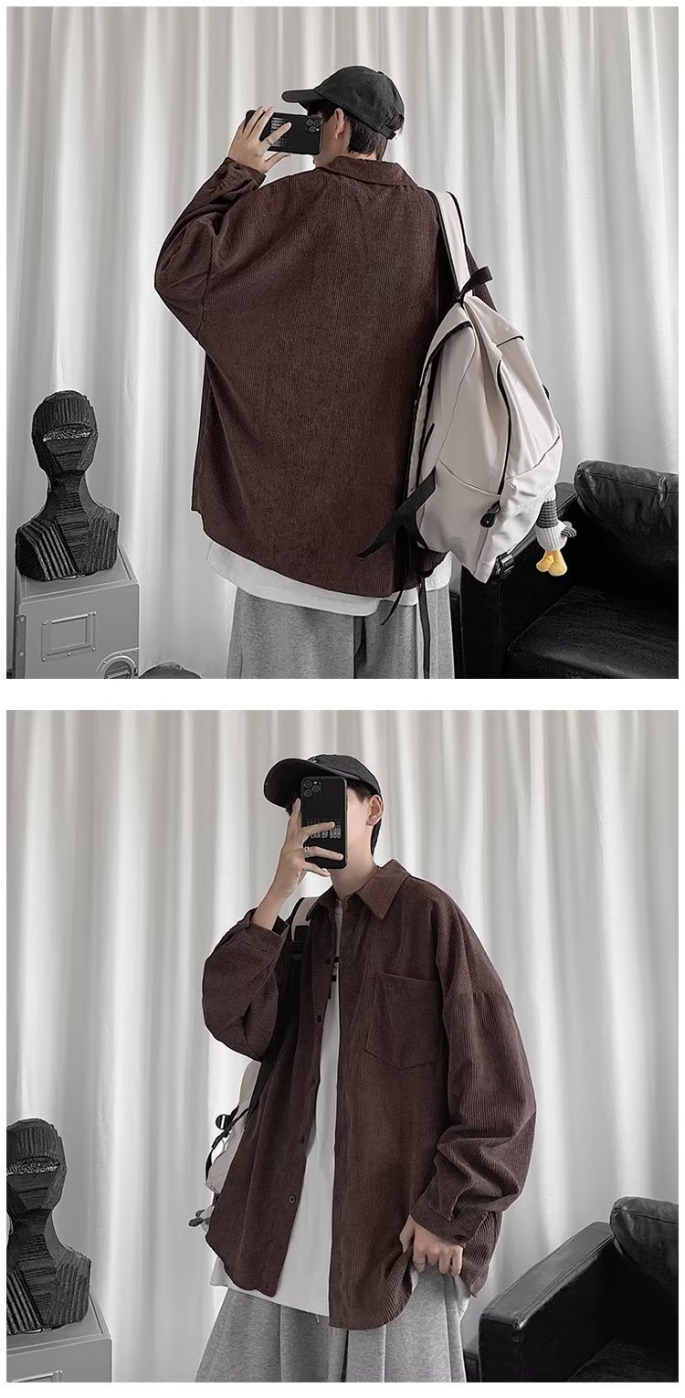 Camisa de pana para hombre 2023 nuevo estilo de Hong Kong moda suelta japonesa retro negro camisa casual chaqueta