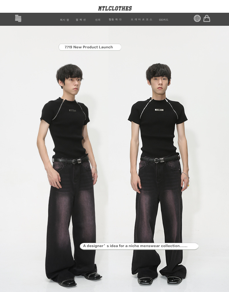 Mtlclothes ropa de Hombre | 2023 verano nuevo estilo coreano pierna ancha floja drapeado MOP retro jeans