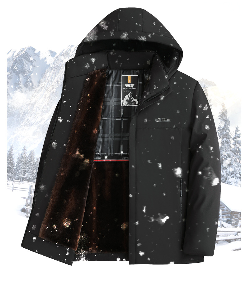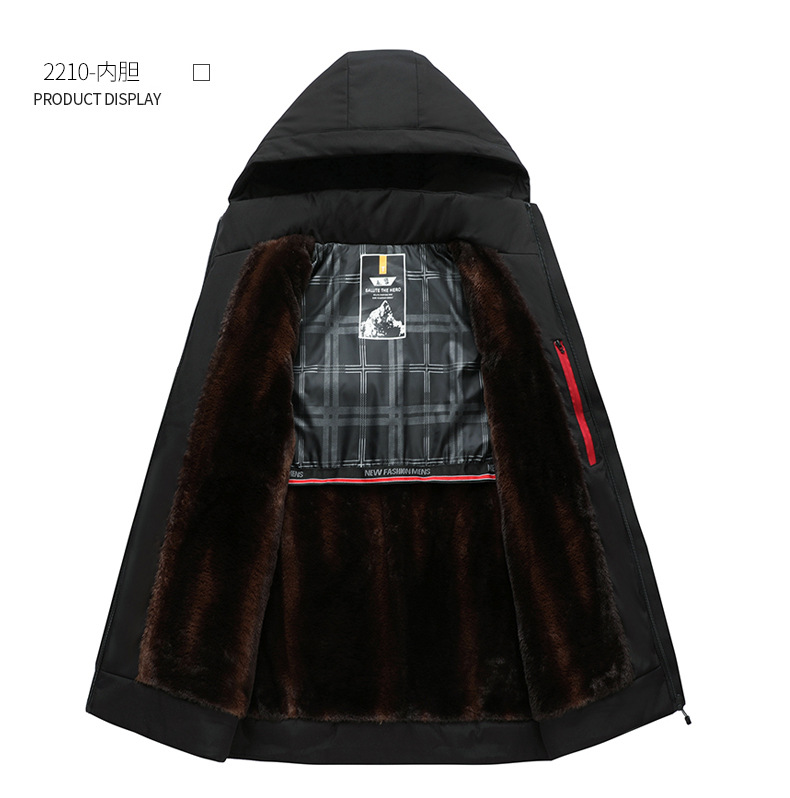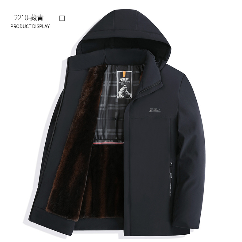 Abrigo de invierno grueso con forro polar abrigo de algodón acolchado para hombre sombrero desmontable chaqueta de plumón abrigo de algodón acolchado de papá invierno de hombres de mediana edad