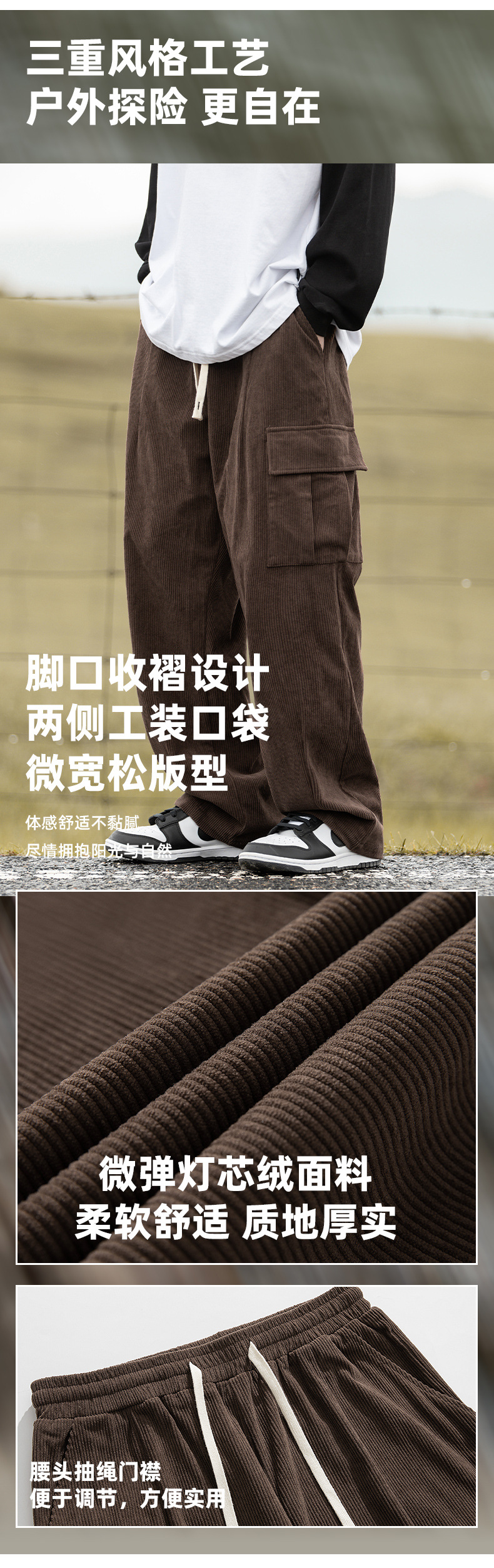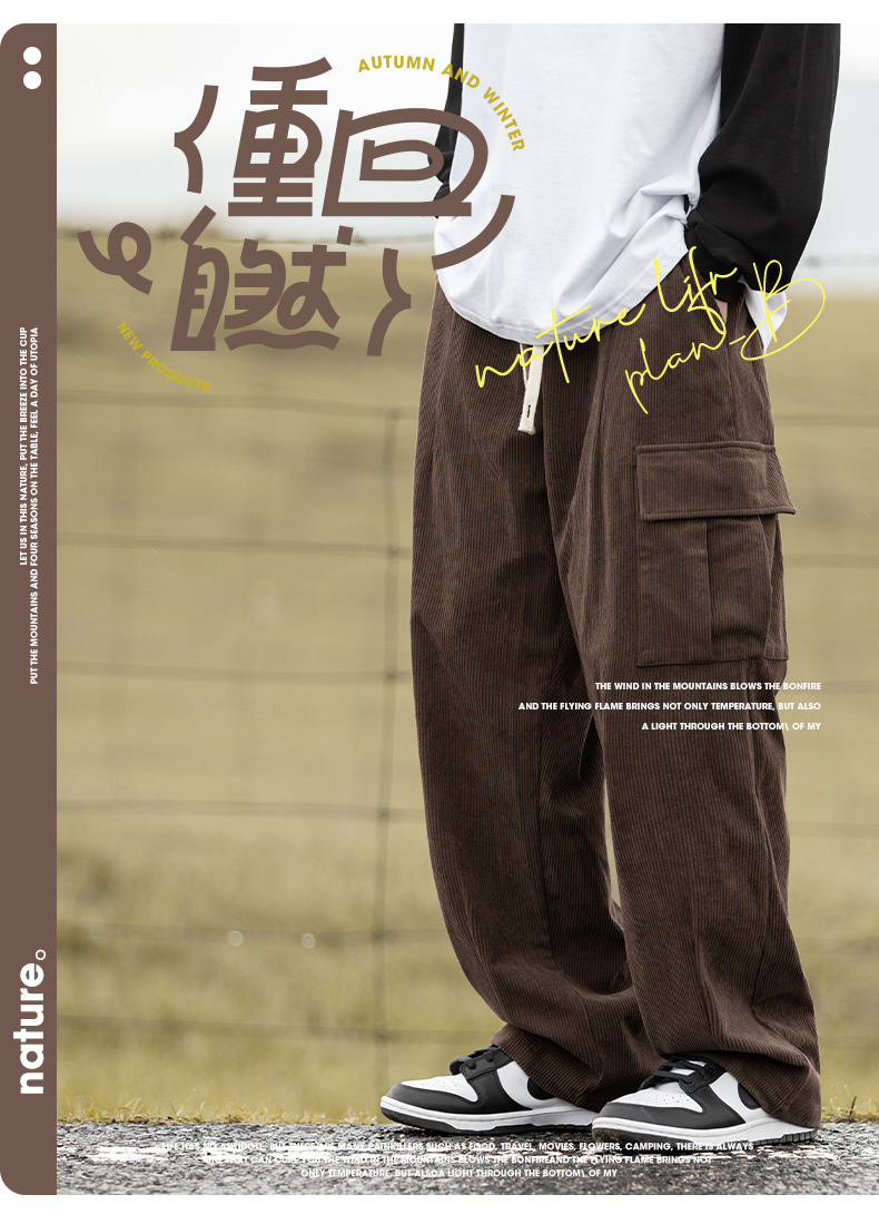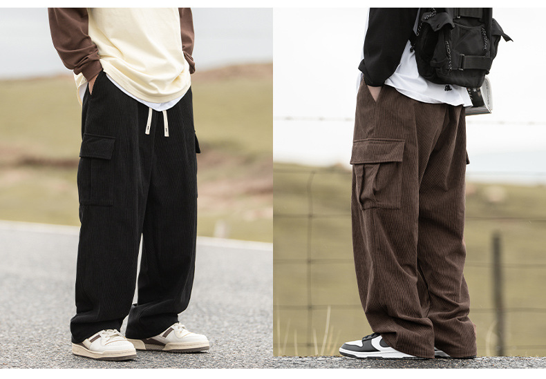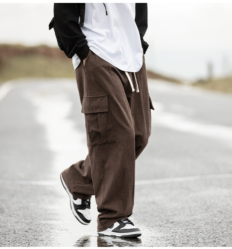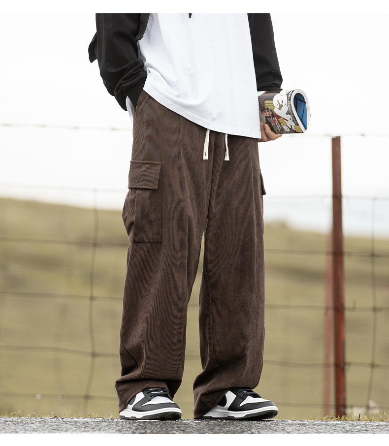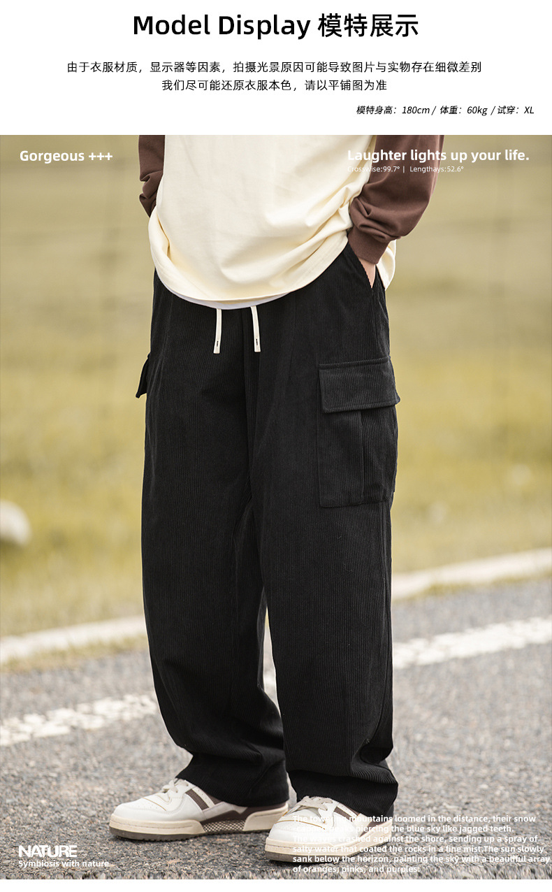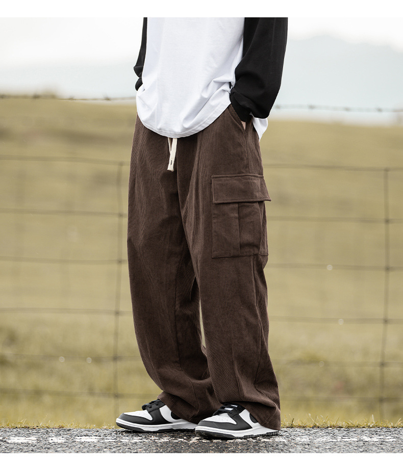 Pantalones Casuales de Pana Estilo Montaña Vintage, Primavera 2025, Nuevo Diseño Texturizado Holgado Estilo Japonés con Pliegues, Pantalones Largos