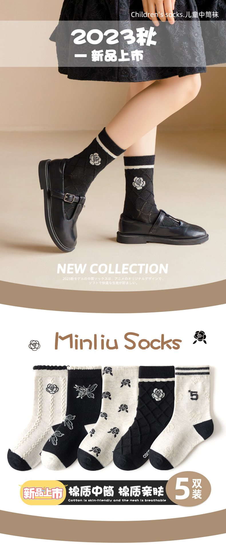 2023 otoño nuevos calcetines de algodón Otoño e Invierno calcetines de media pantorrilla
