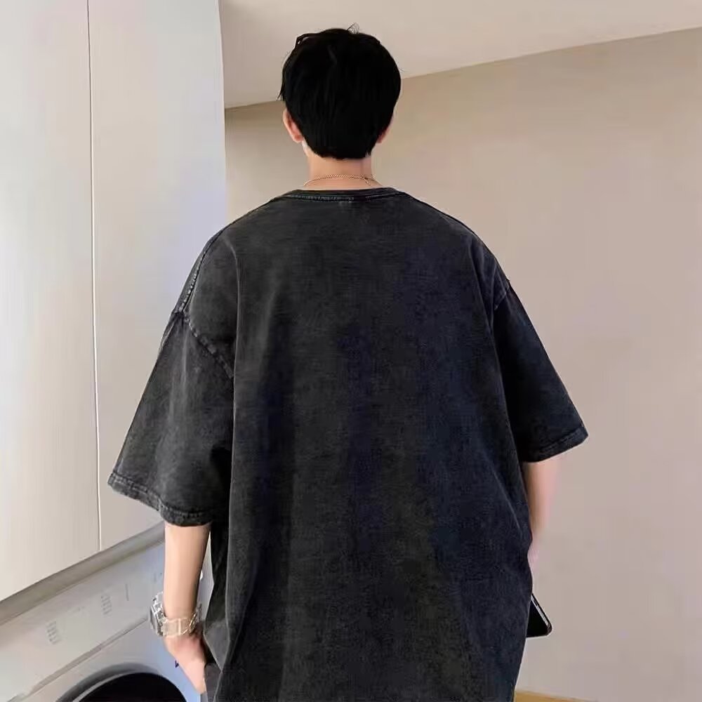 Camiseta de manga corta de algodón puro desgastado lavado retro americano para hombre, camiseta de media manga de marca holgada informal de verano para hombre