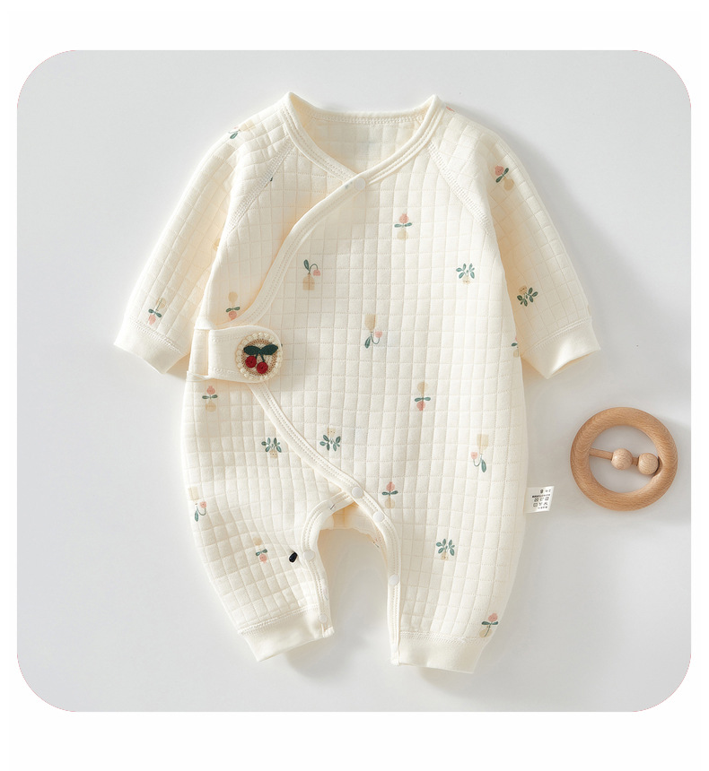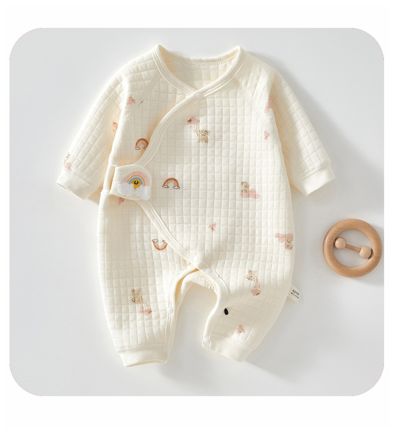 Ropa de bebé recién nacido Ropa de otoño e invierno ropa de abrigo Clase A de algodón puro correa sin hueso mameluco de una pieza para bebés nacidos a principios de marzo