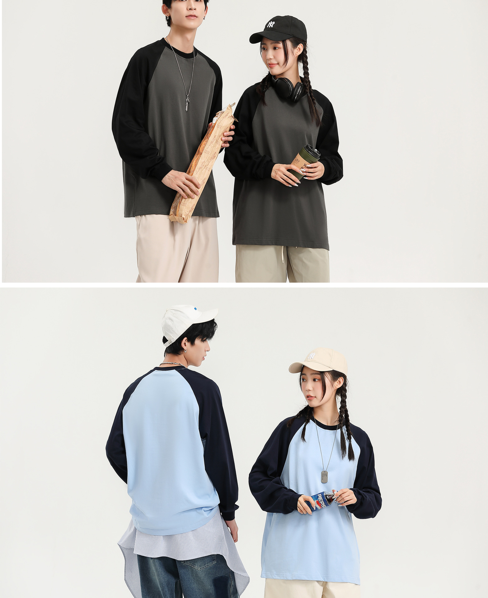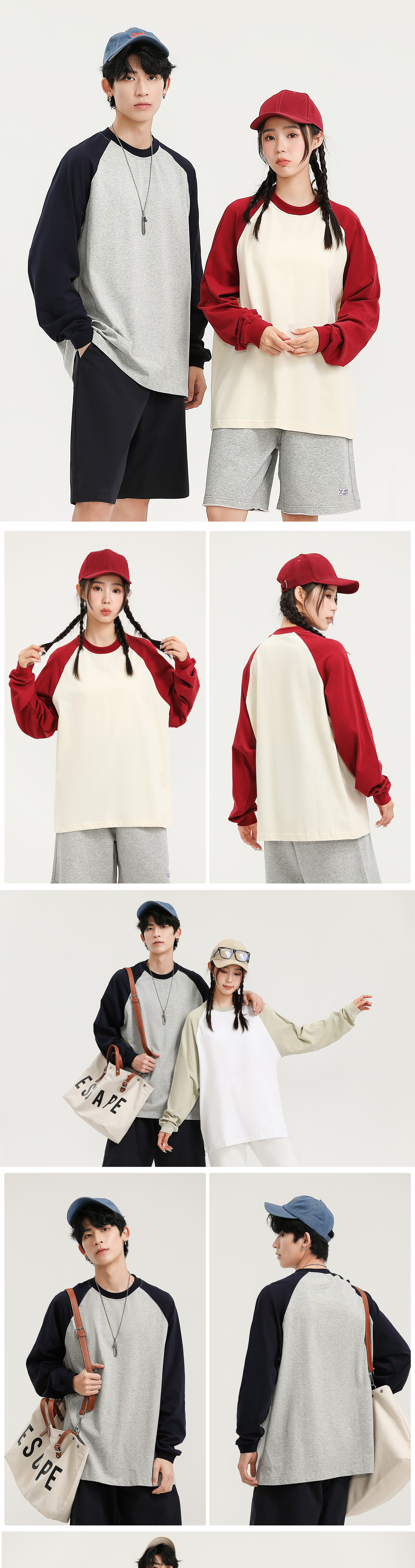 Camiseta de manga larga con cuello redondo de moda 2024 para hombre y mujer, ajuste holgado, algodón puro, top casual raglán de manga corta con bloques de color, algodón peinado.