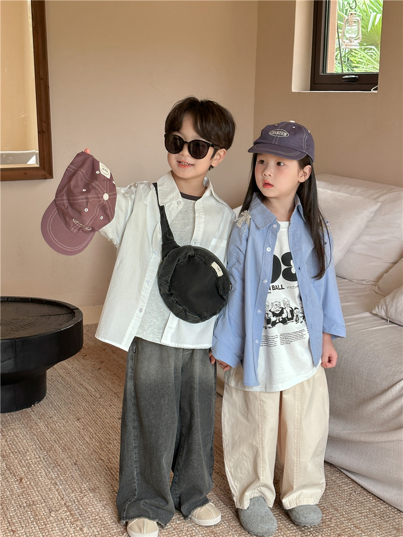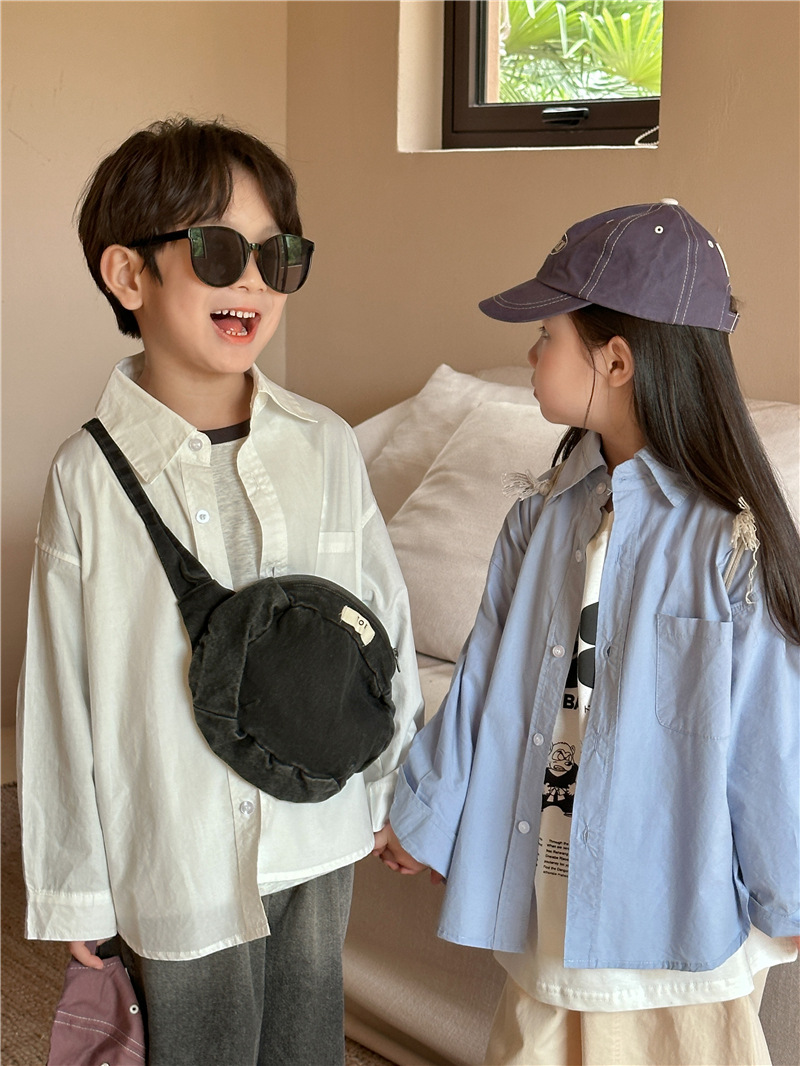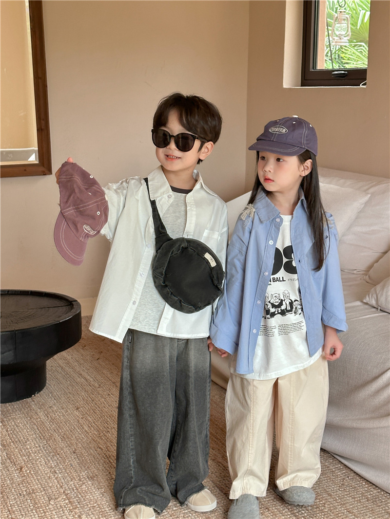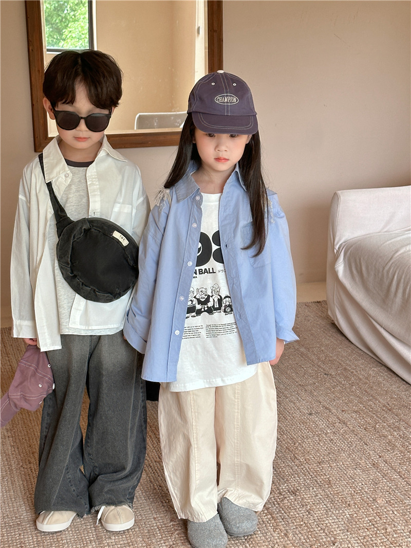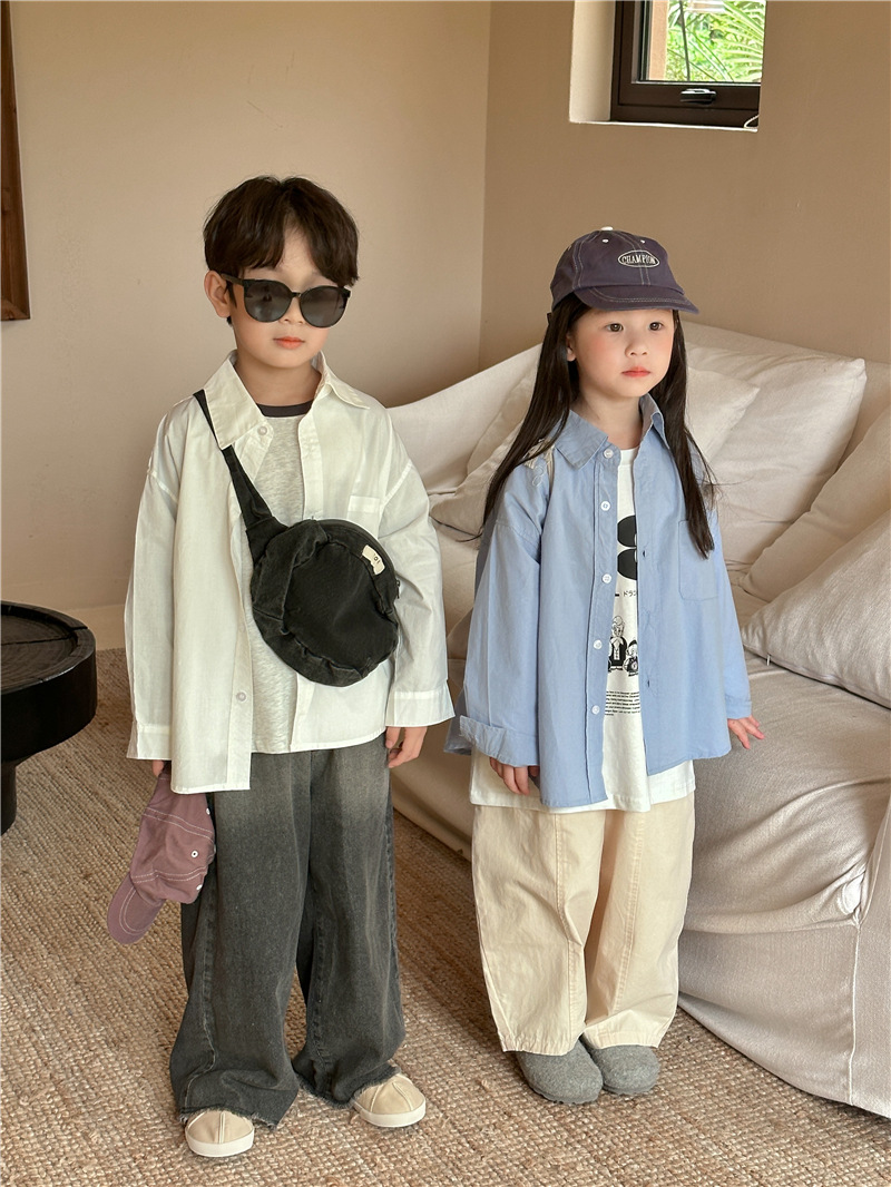Camisa DE LOS NIÑOS 2024 primavera nuevos niños y niñas camisa de solapa de color sólido bebé lavado algodón camisa casual