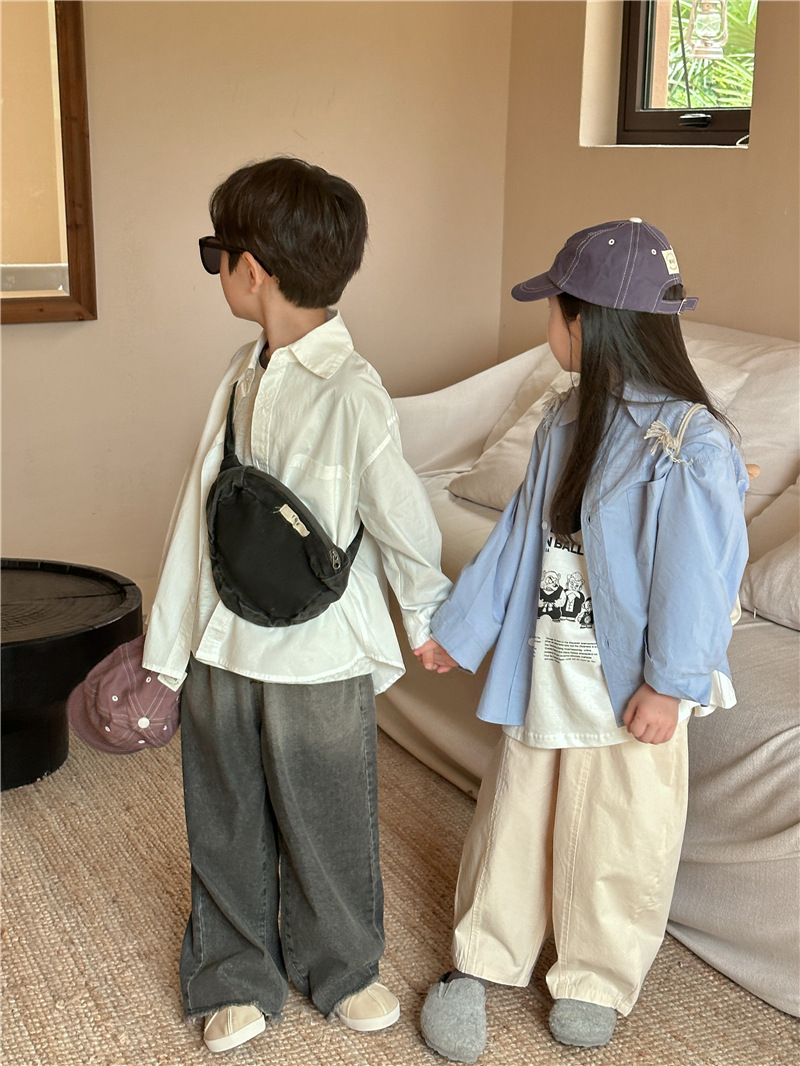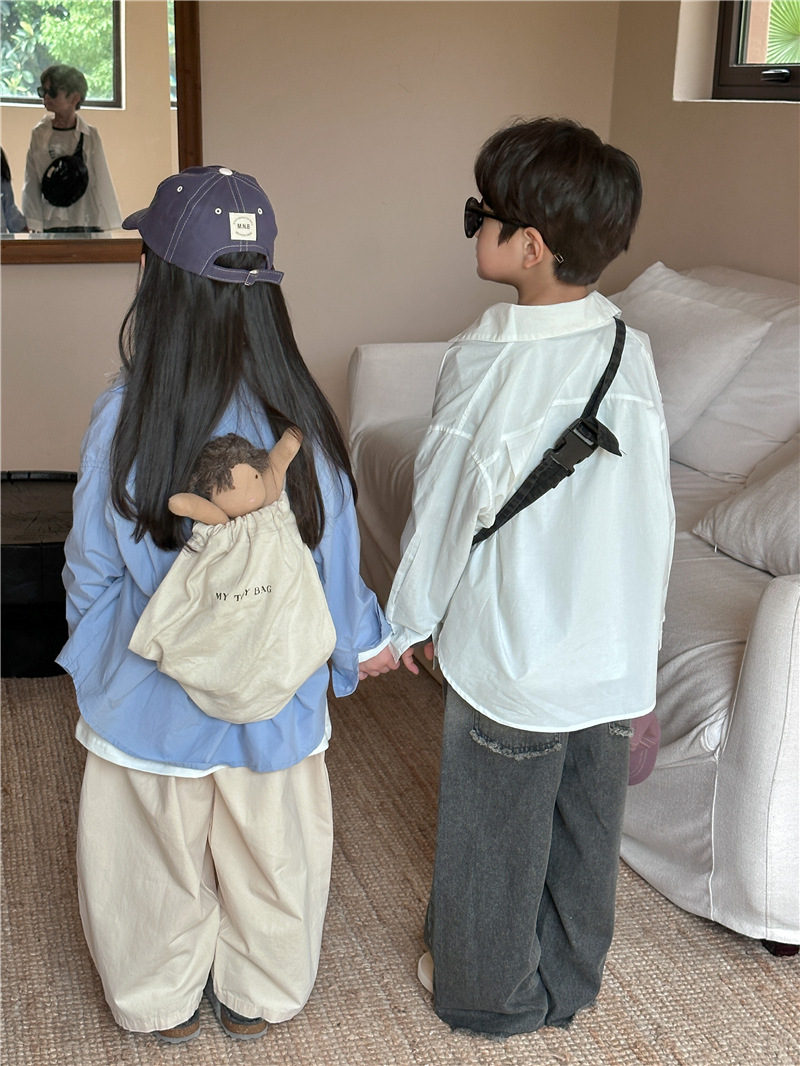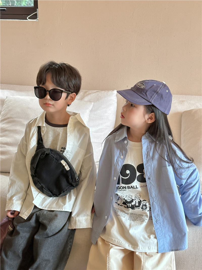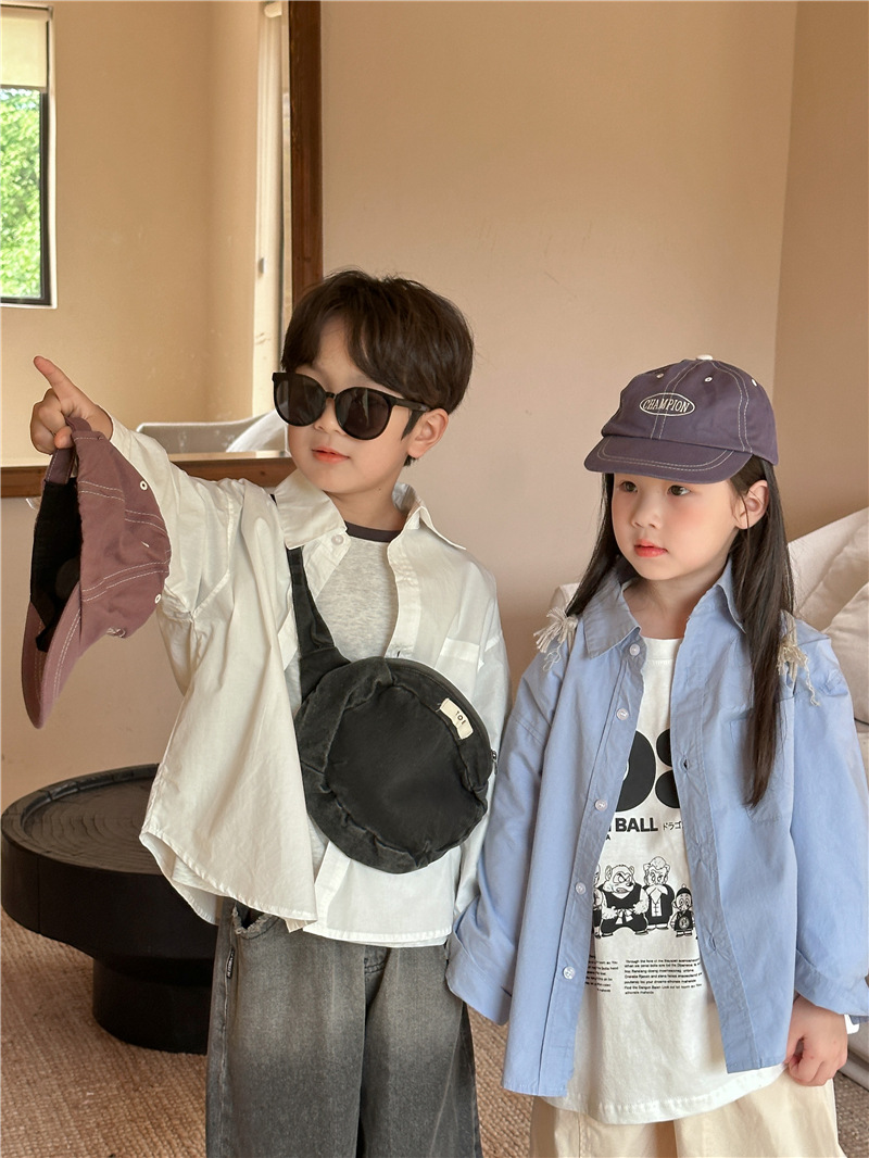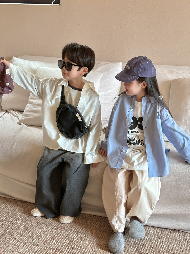 Camisa DE LOS NIÑOS 2024 primavera nuevos niños y niñas camisa de solapa de color sólido bebé lavado algodón camisa casual