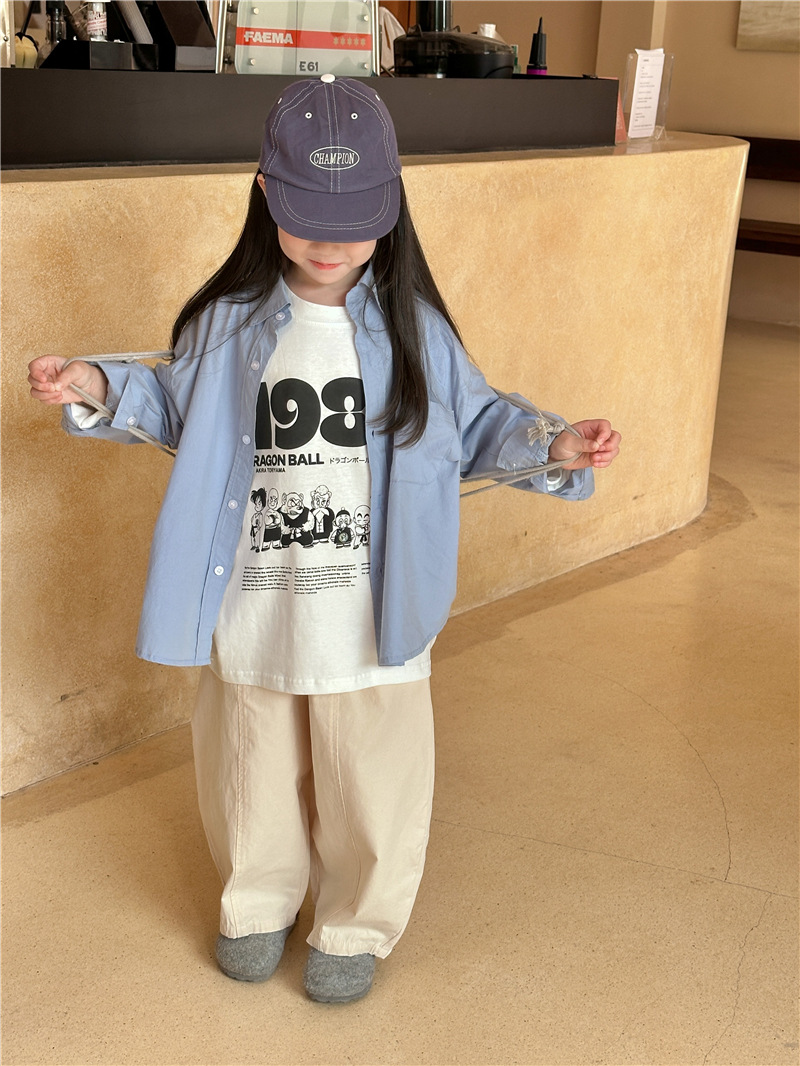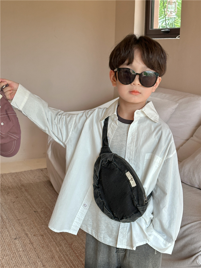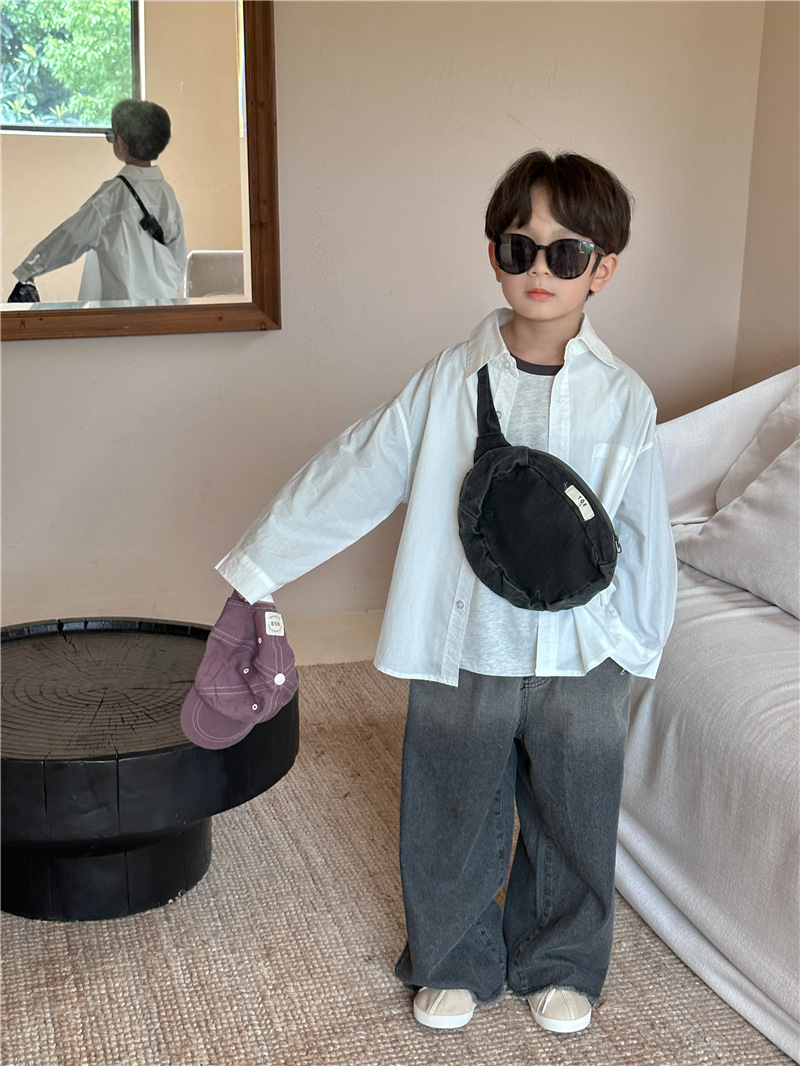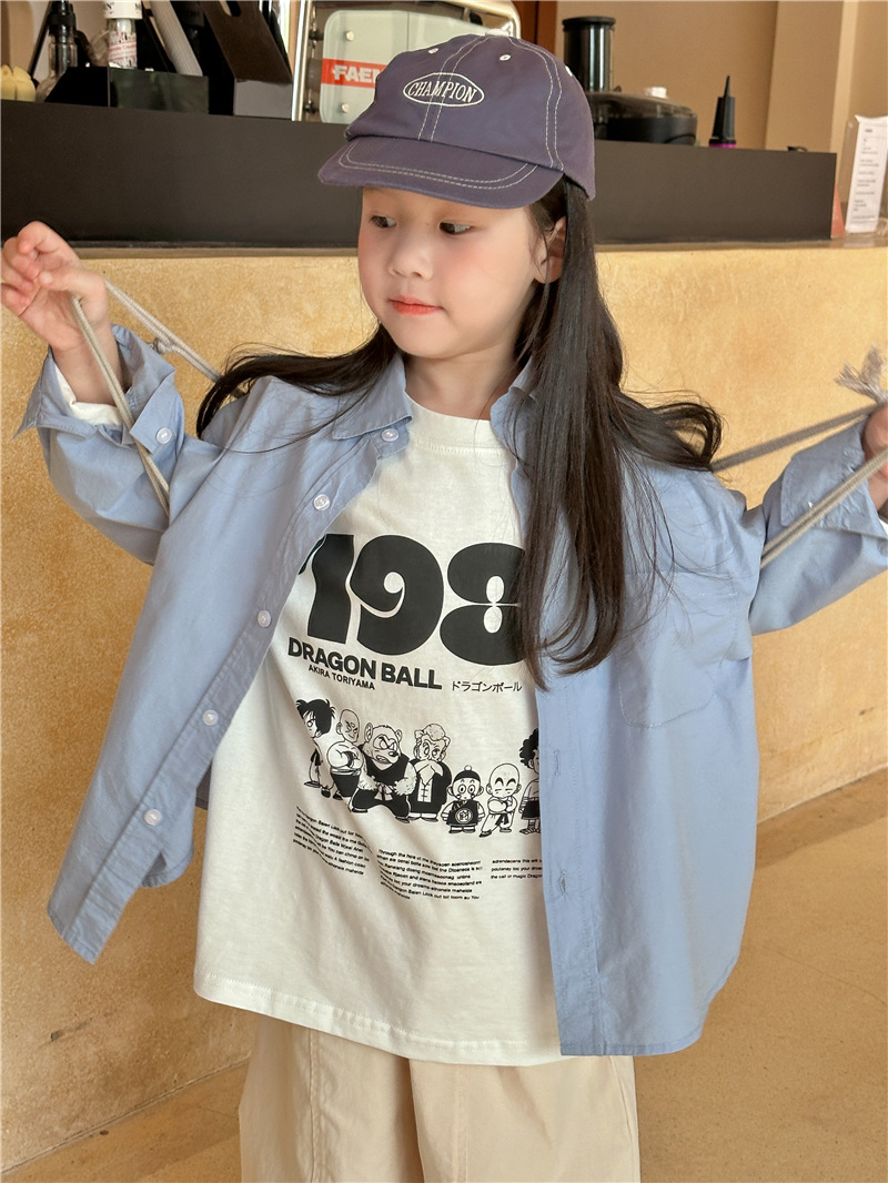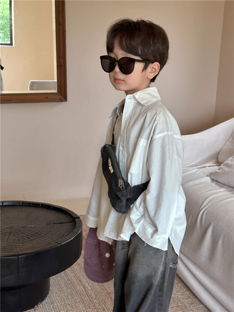 Camisa DE LOS NIÑOS 2024 primavera nuevos niños y niñas camisa de solapa de color sólido bebé lavado algodón camisa casual