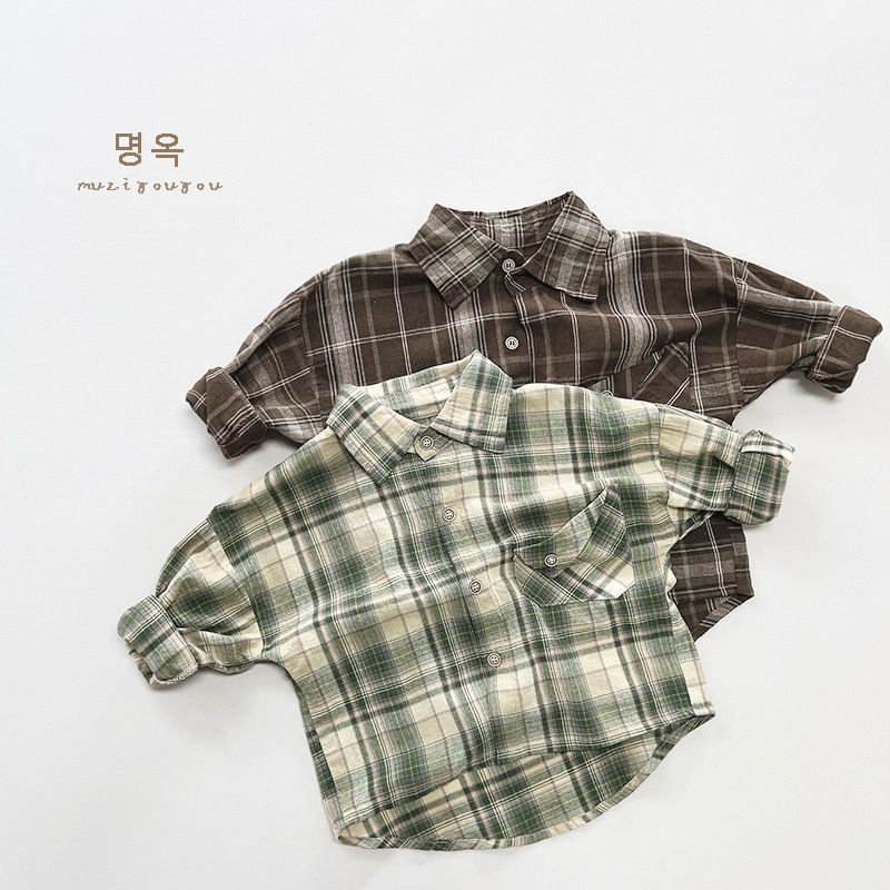 Niños primavera y otoño nuevo estilo coreano japonés retro camisa de los niños Plaid Mori chica algodón capa fina ropa