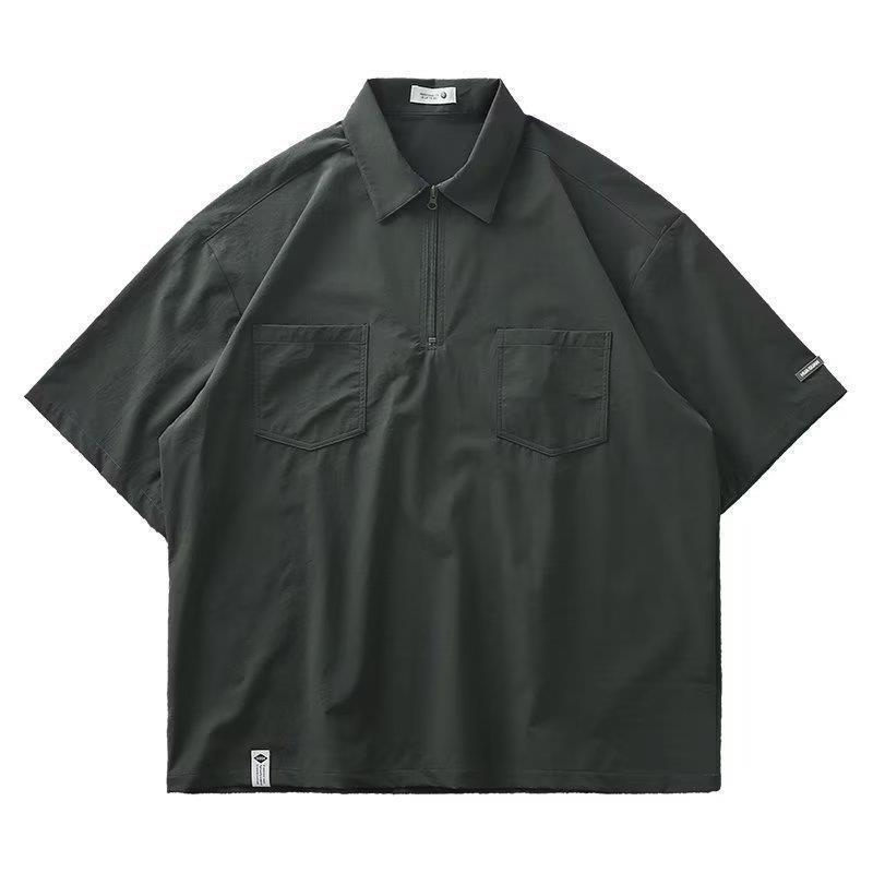 Moda juvenil popular simple nuevo color sólido estándar 2023 media manga verano versátil moda de los hombres polo