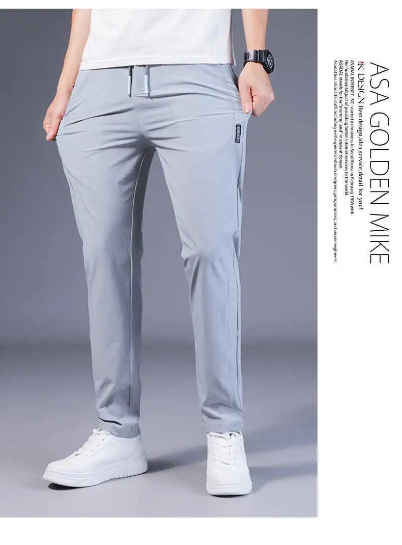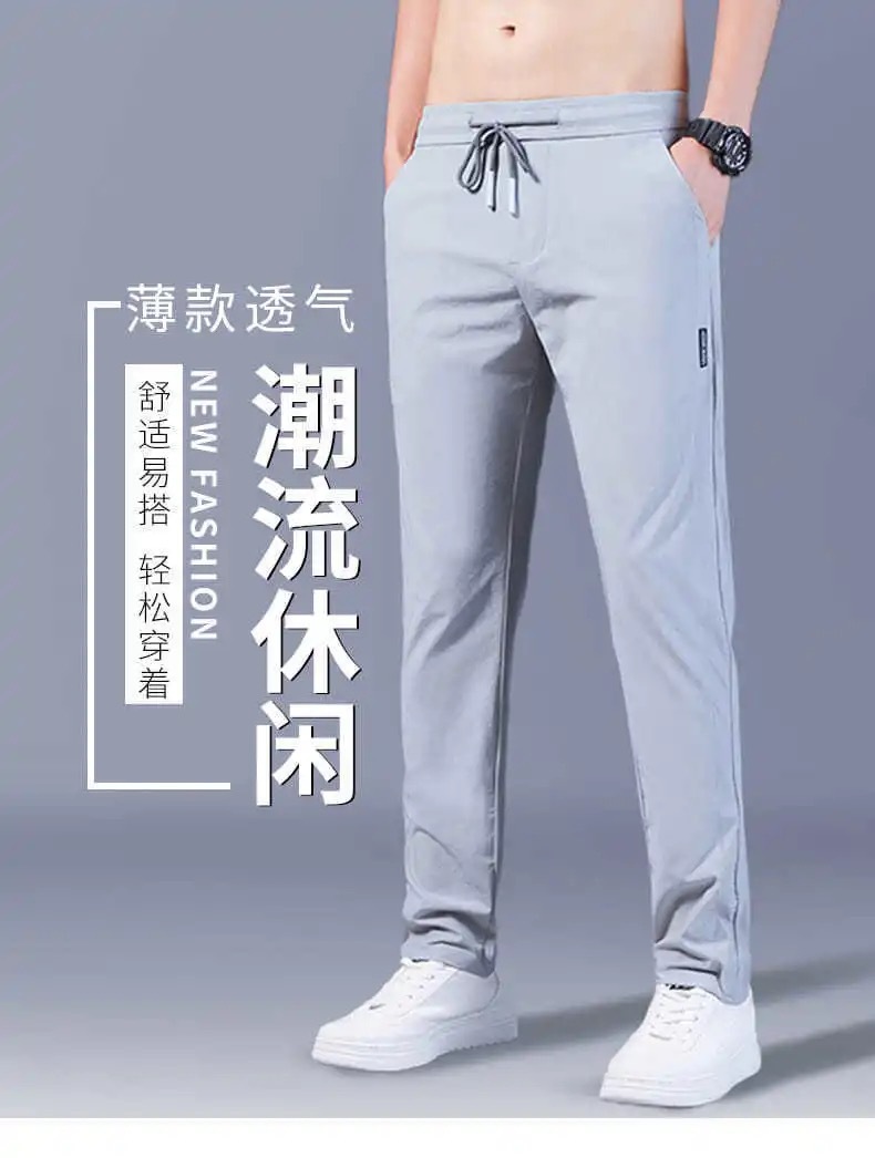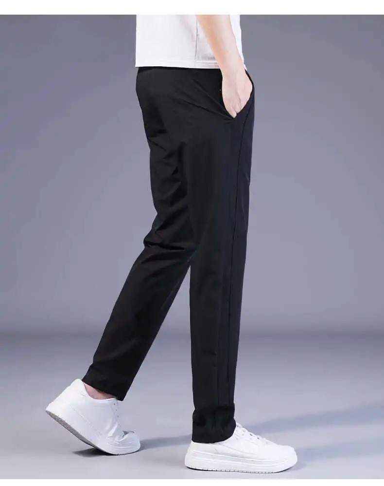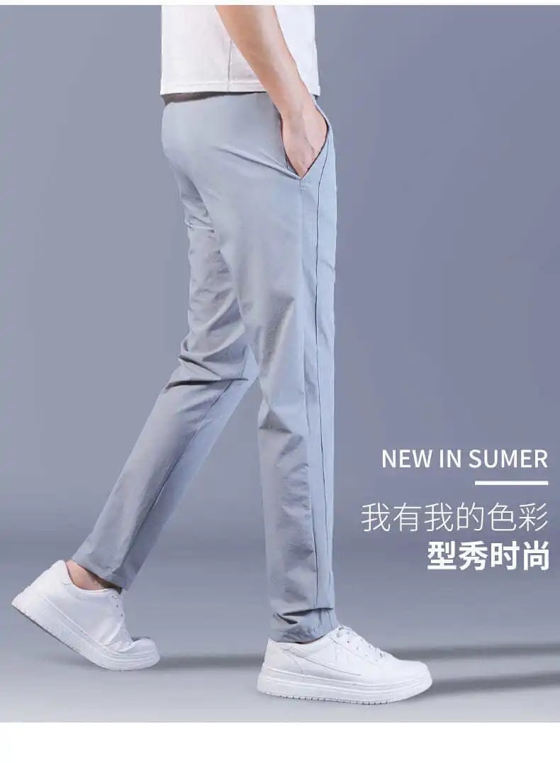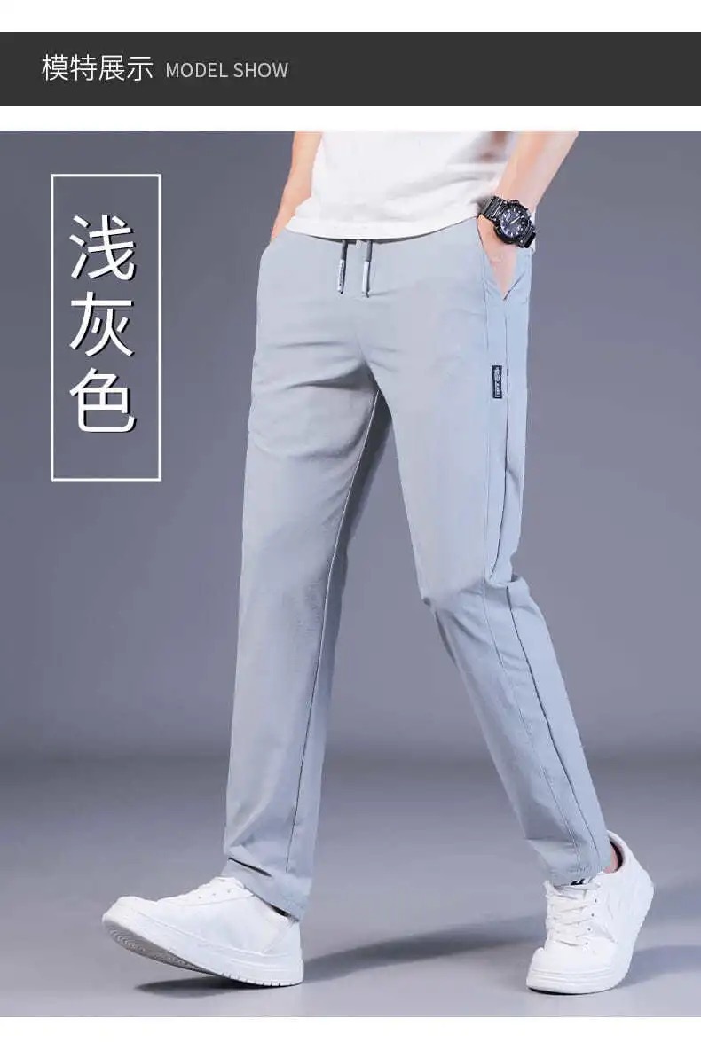 Pantalones casuales de los hombres rectos slim fit verano fino elástico cinturón elástico pantalones sueltos más tamaño entrega de una sola pieza