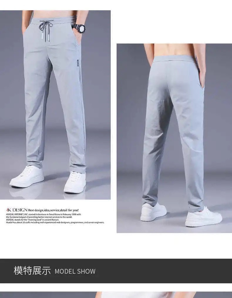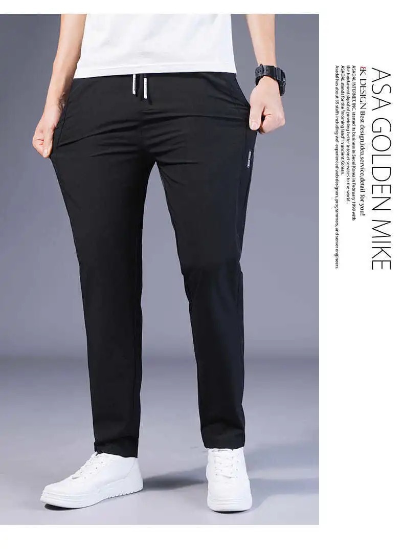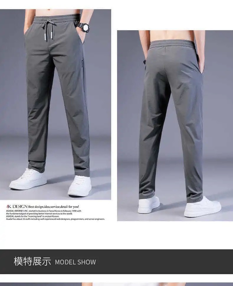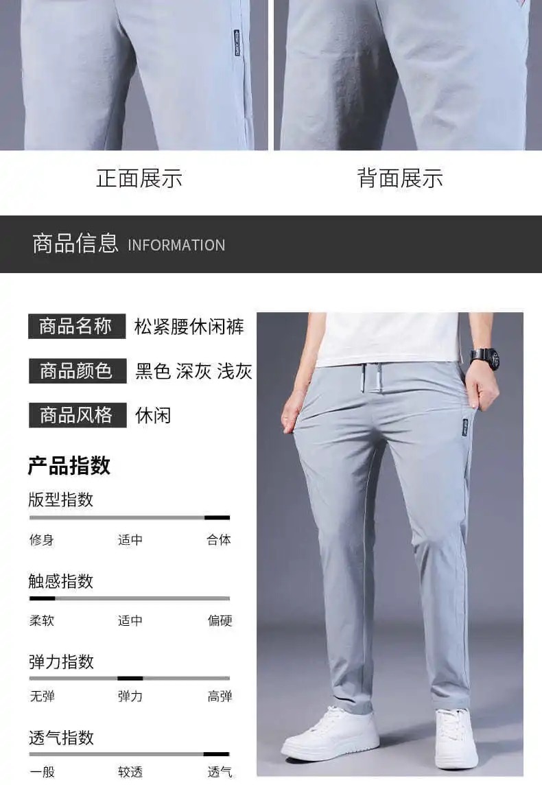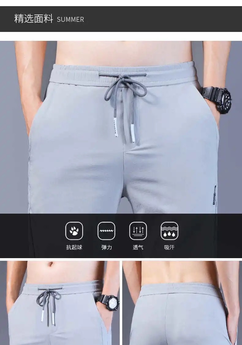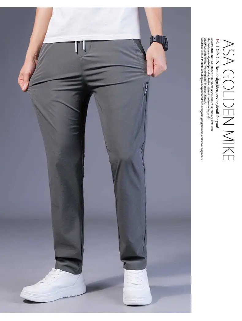 Pantalones casuales de los hombres rectos slim fit verano fino elástico cinturón elástico pantalones sueltos más tamaño entrega de una sola pieza