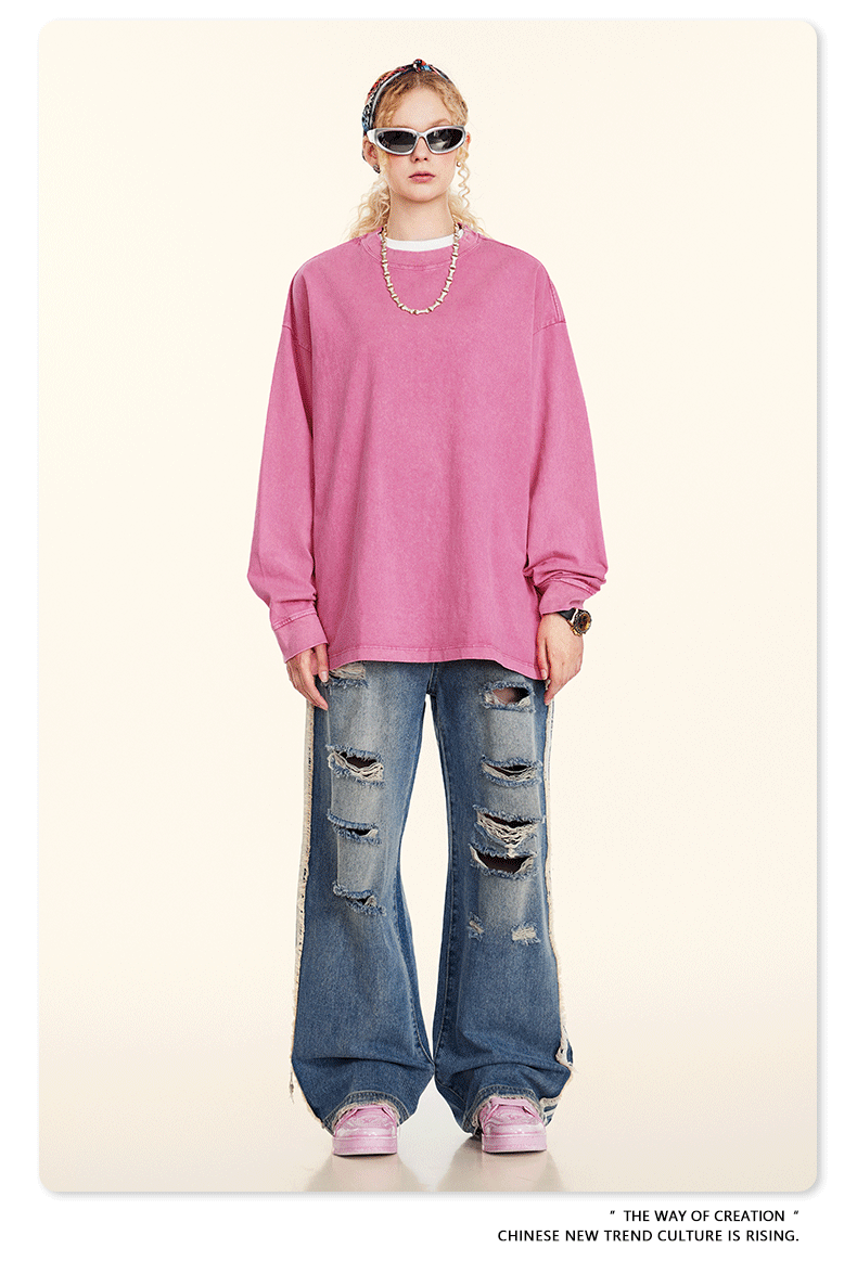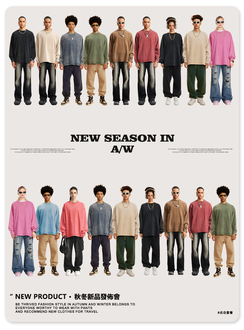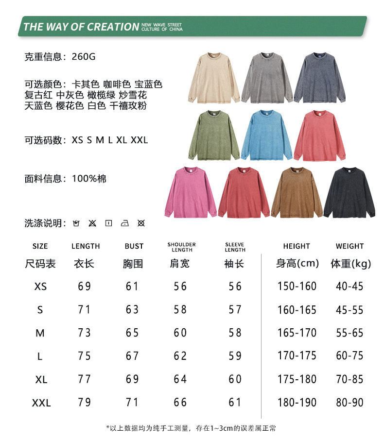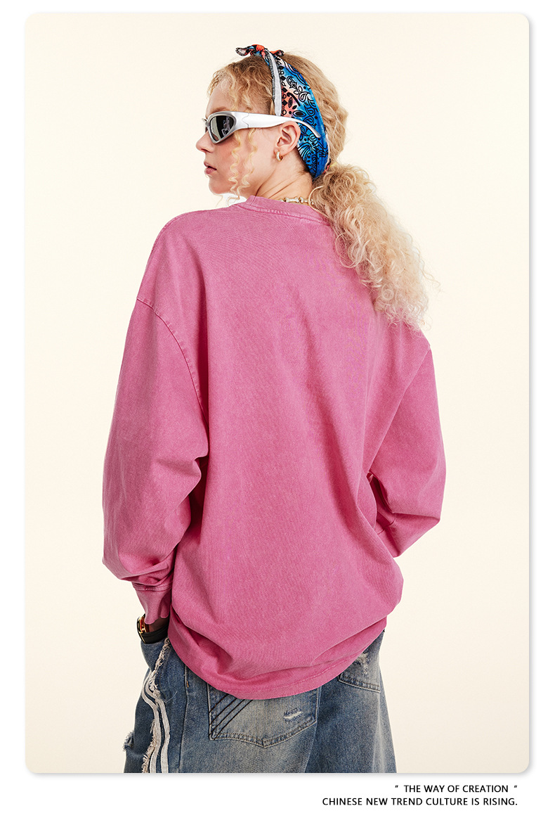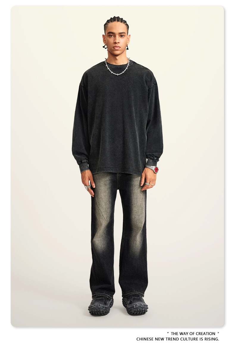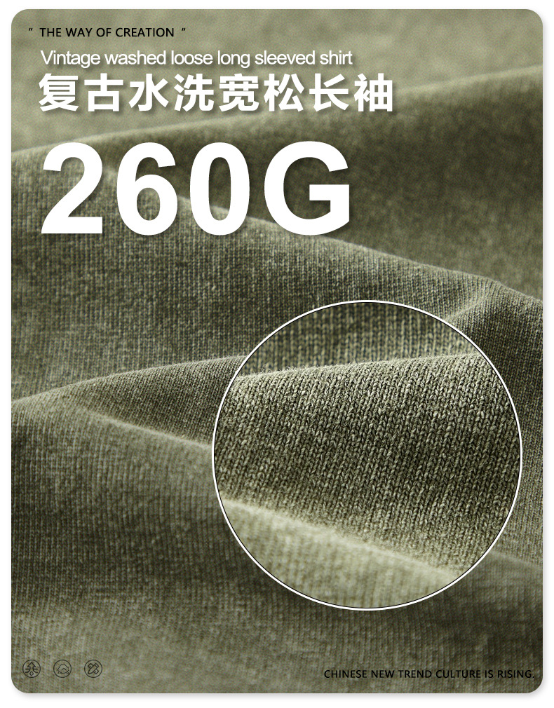 Camiseta de Manga Larga para Hombre BE, Estilo Americano 2025, Marca Moderna, Algodón Lavado Vintage, 260G, Camiseta Juvenil para Hombre