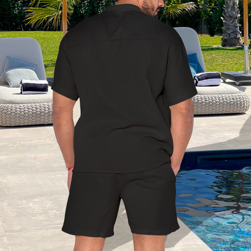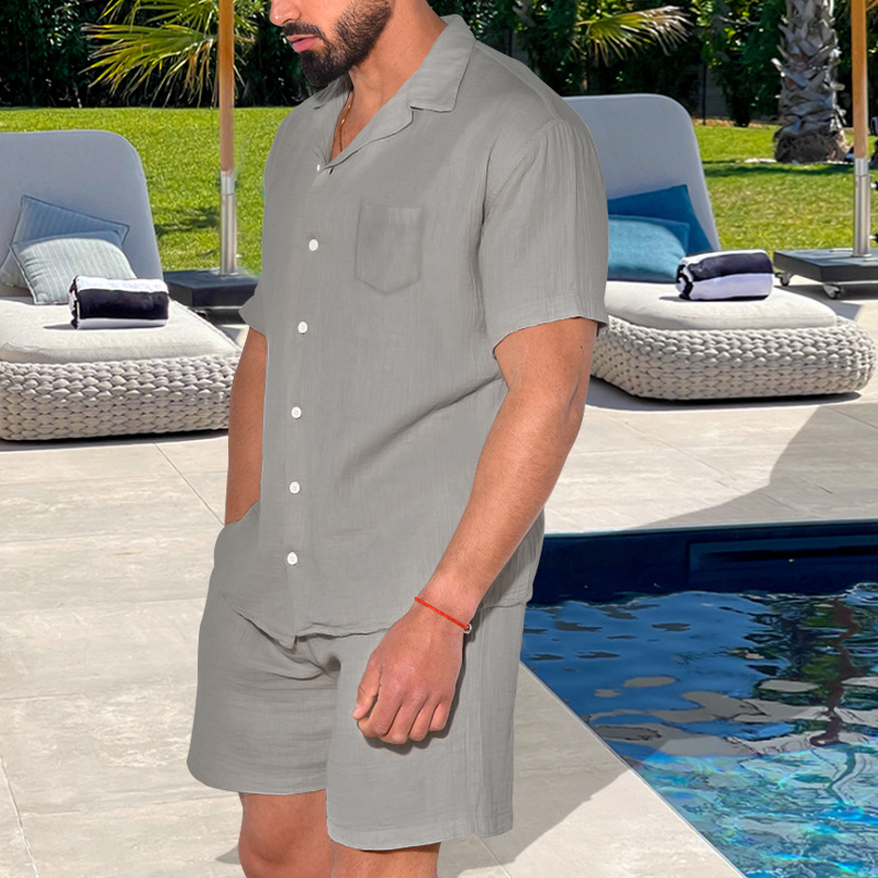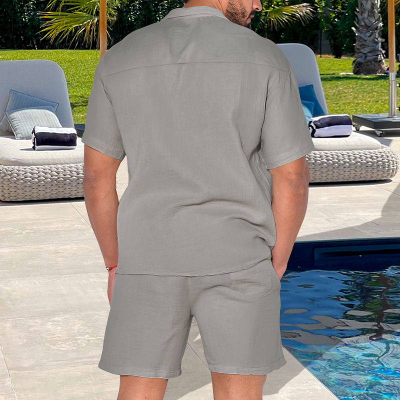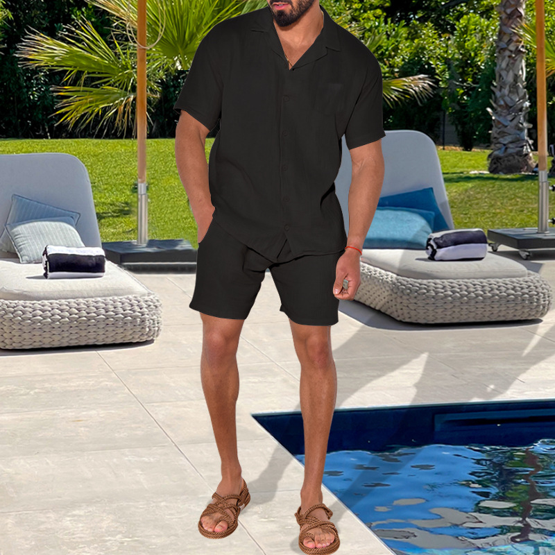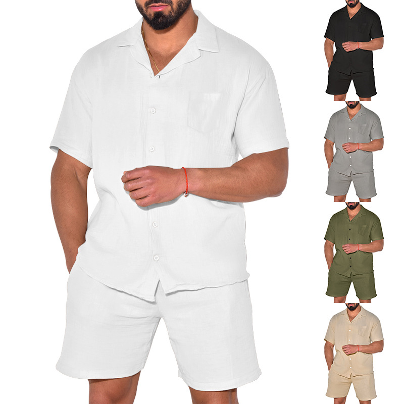 2023 en stock Los pantalones cortos de manga corta de los deportes de verano transfronterizos europeos y estadounidenses se adaptan a la camisa de los hombres ocasionales sueltos