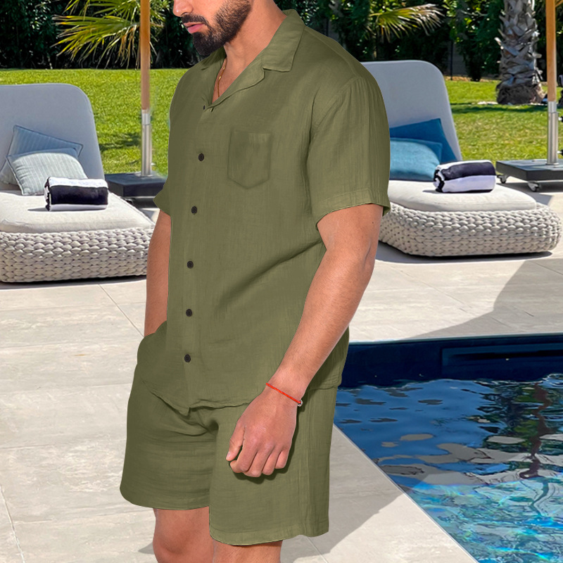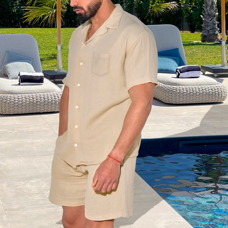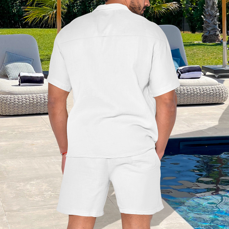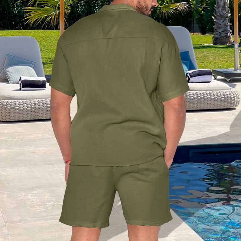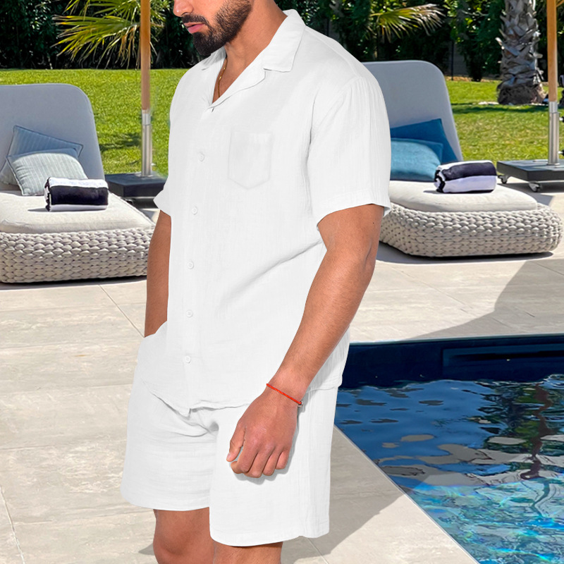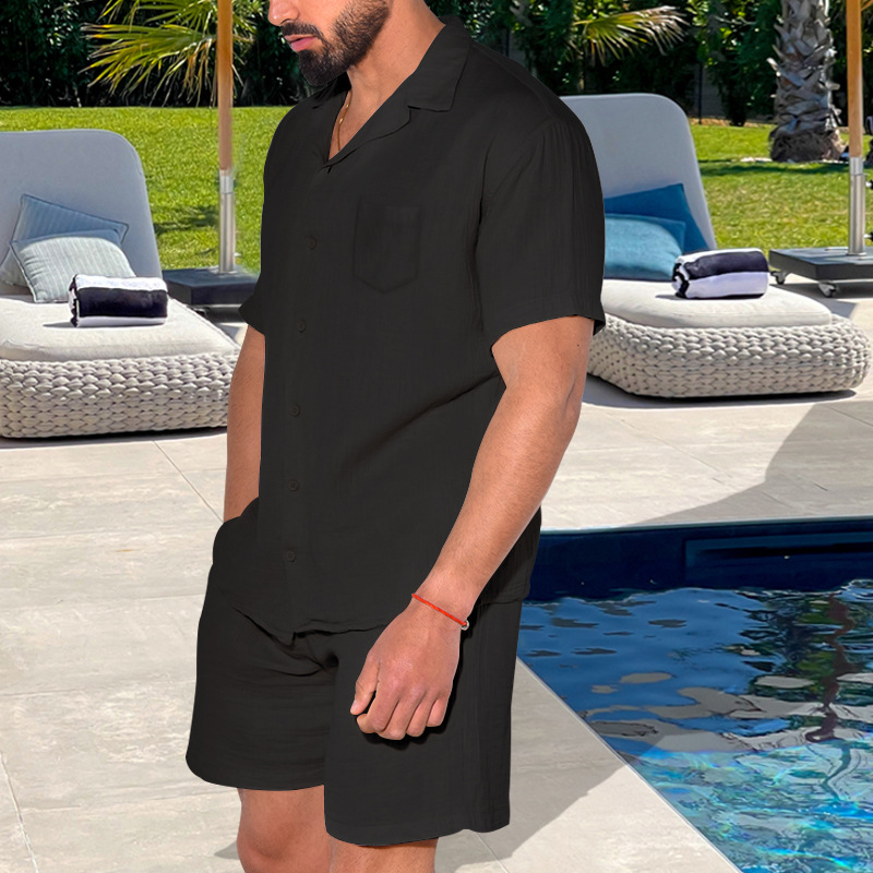 2023 en stock Los pantalones cortos de manga corta de los deportes de verano transfronterizos europeos y estadounidenses se adaptan a la camisa de los hombres ocasionales sueltos