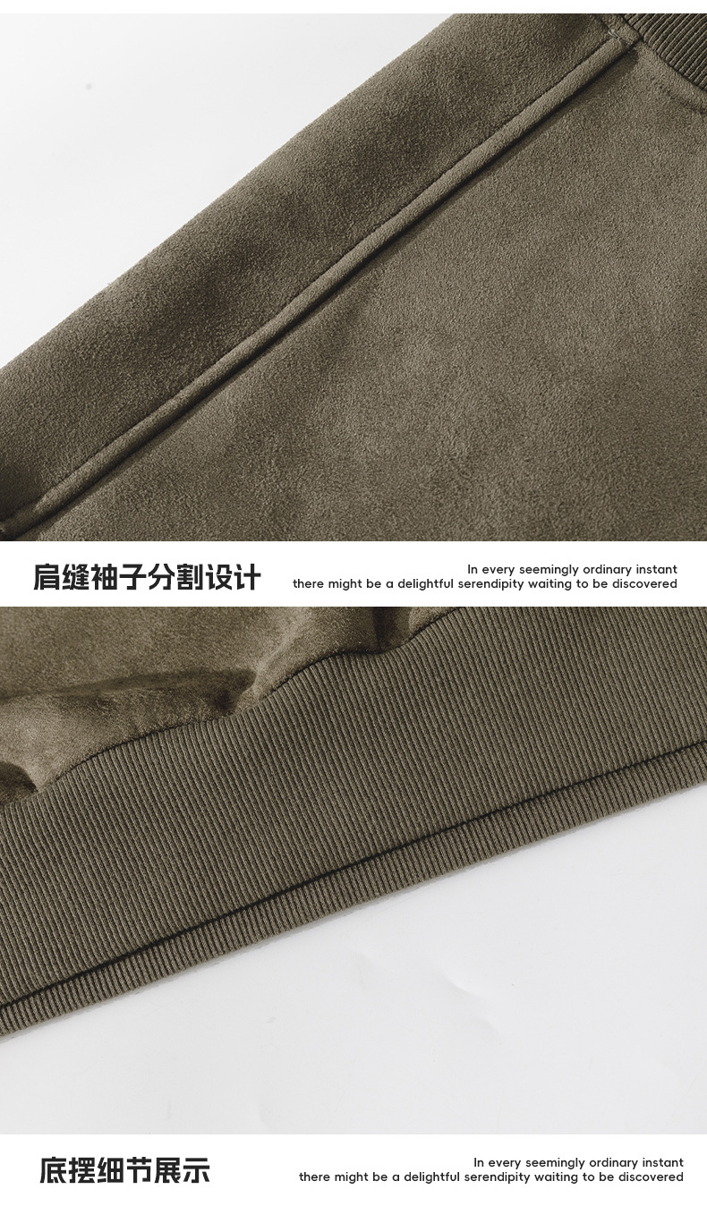 Sudadera de cuello redondo de gamuza de 350 g para hombre, estilo japonés, nueva colección primavera 2025, de marca, holgada, bordada, estilo chaqueta.