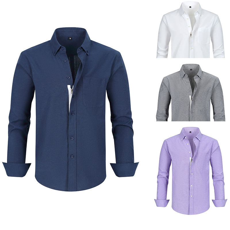 Camisa Oxford con cremallera para hombre, de liquidación a bajo precio, manga larga, estilo casual de negocios, color sólido, modelo de exportación de Amazon.