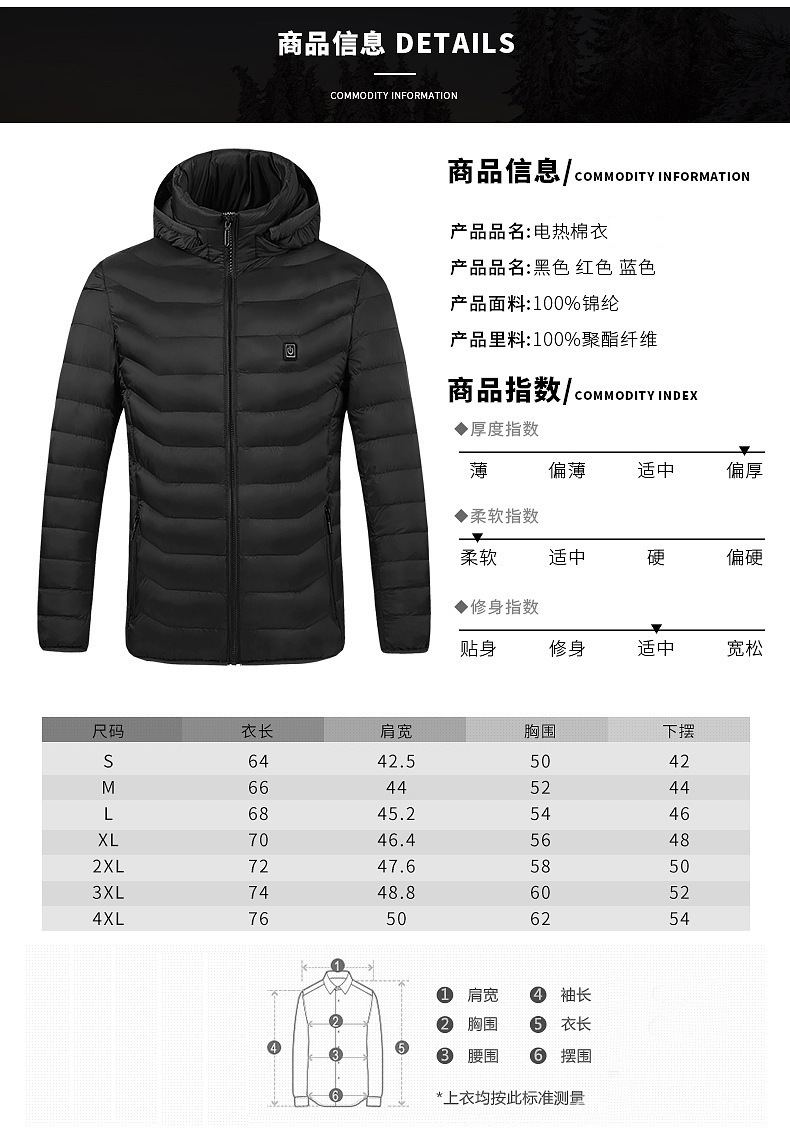 Suministro directo de fábrica transfronteriza ropa de calefacción inteligente calefacción ropa acolchada de algodón calefacción eléctrica térmica al aire libre calefacción inteligente ropa acolchada de algodón