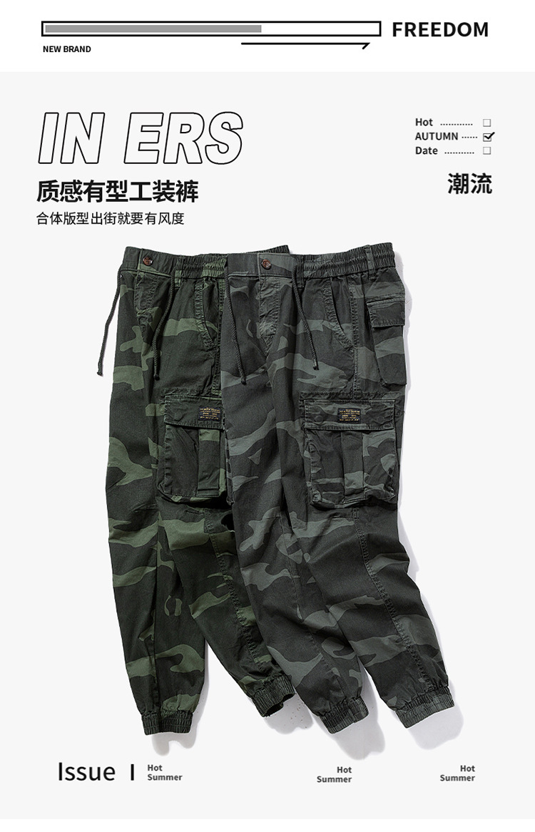 Pantalones cargo de estilo americano con camuflaje para hombre, modernos, con cordón y múltiples bolsillos, exclusivos para Amazon A655.