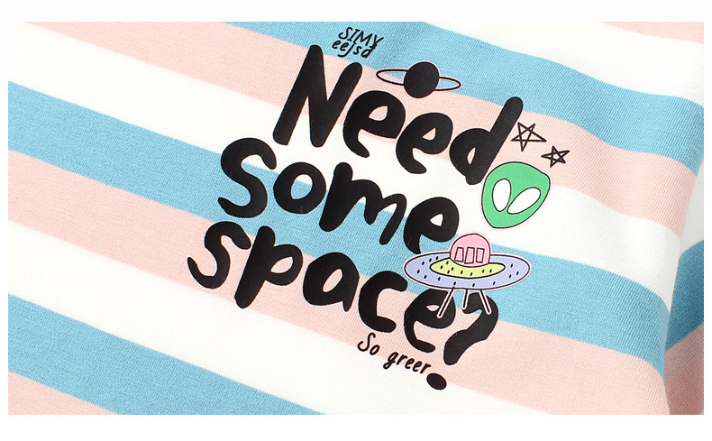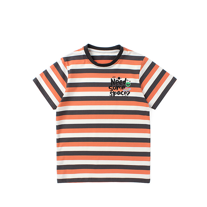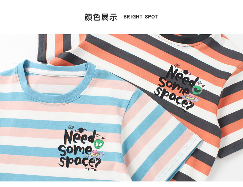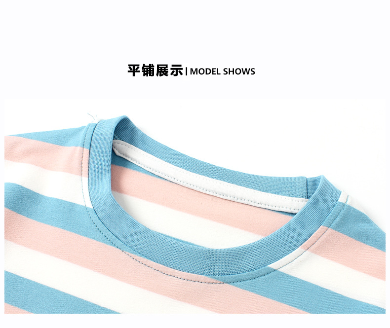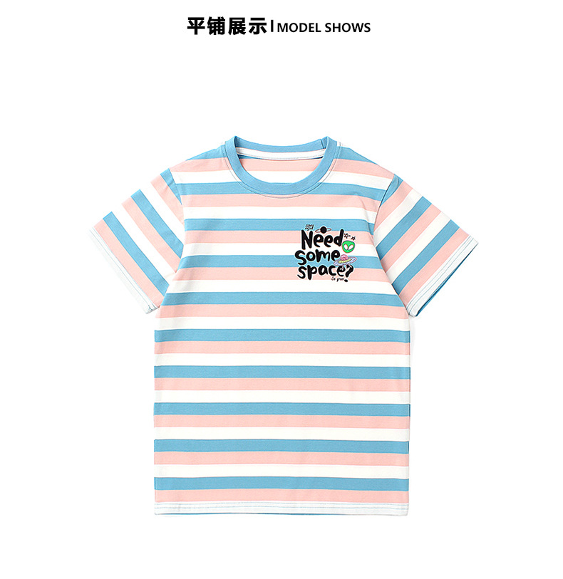 Ropa de verano estilo coreano para niños nuevos niños a rayas de manga corta para niños grandes dibujos animados impresos Camiseta de manga corta para niñas de media manga