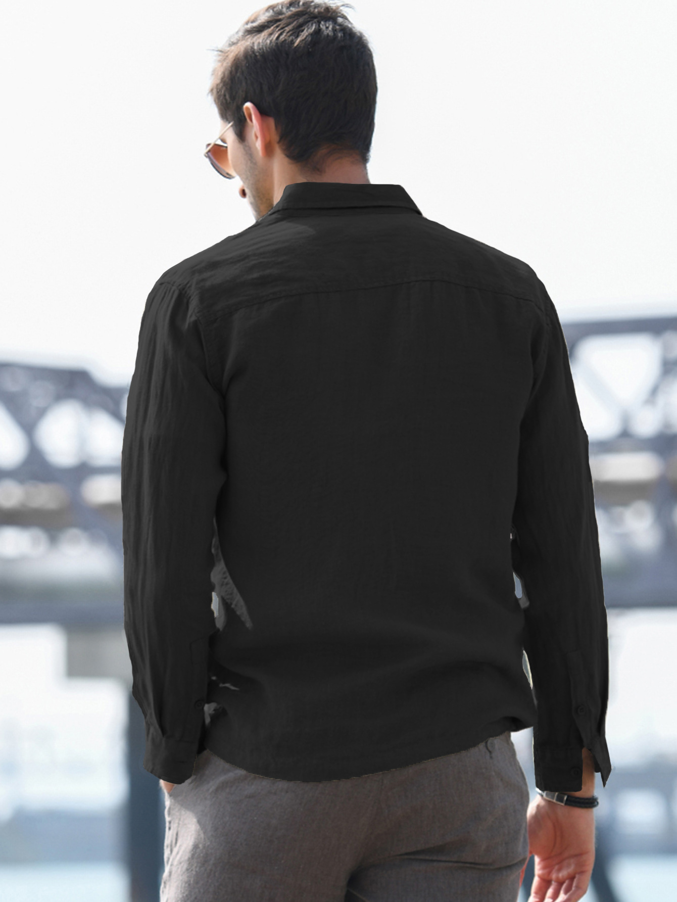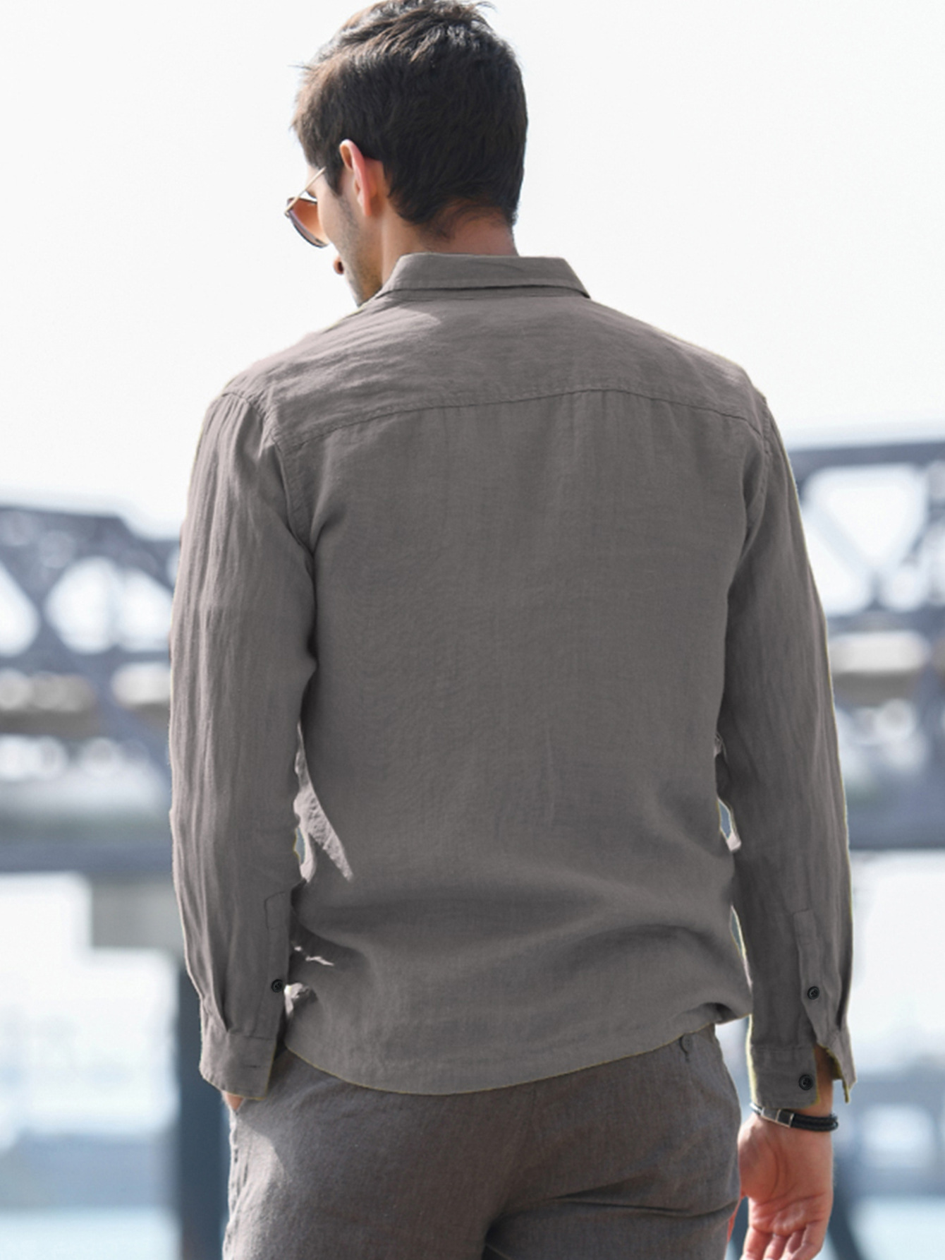 Ropa de hombre transfronteriza nueva juventud suelta más el tamaño de los hombres de color sólido simple solapa de manga larga Camisa de algodón y lino en stock Generación de cabello