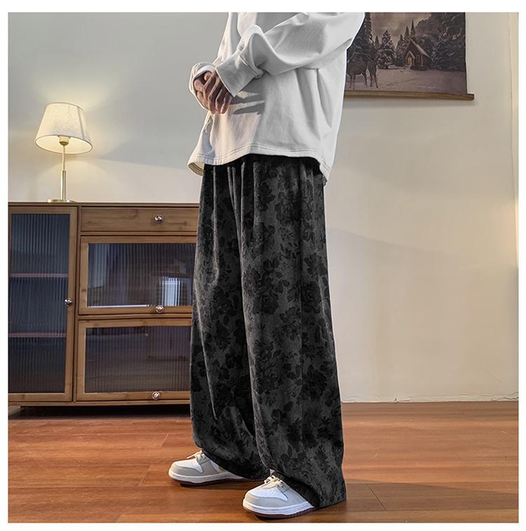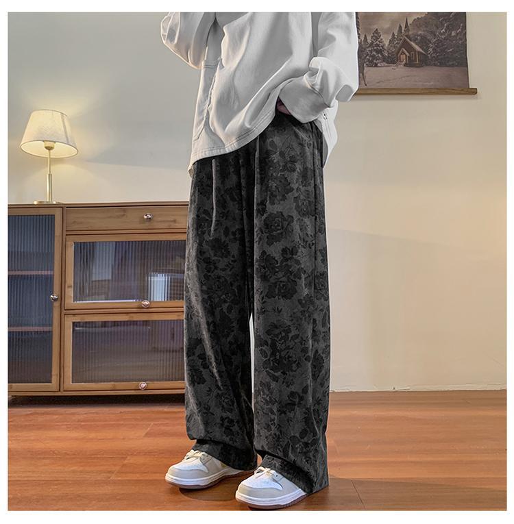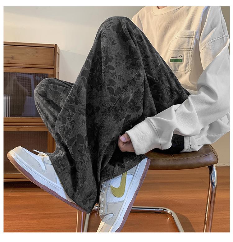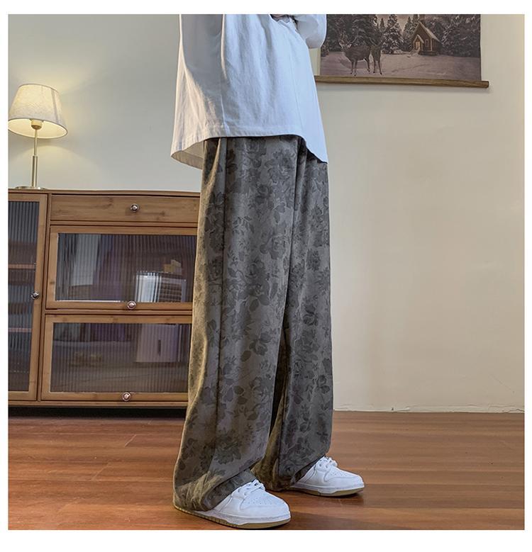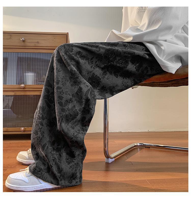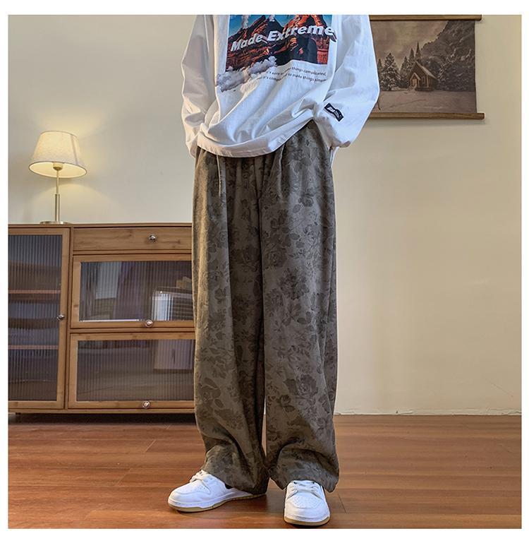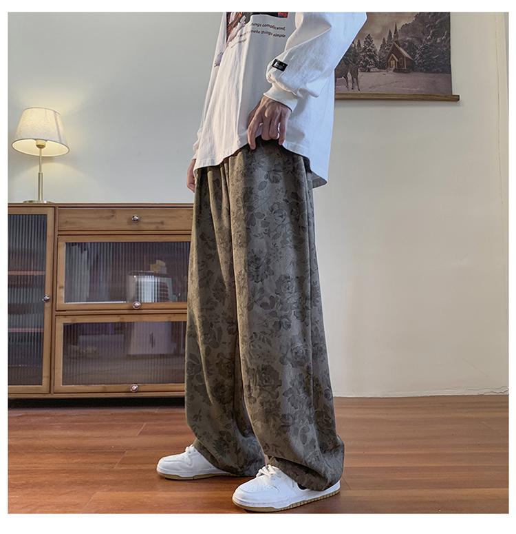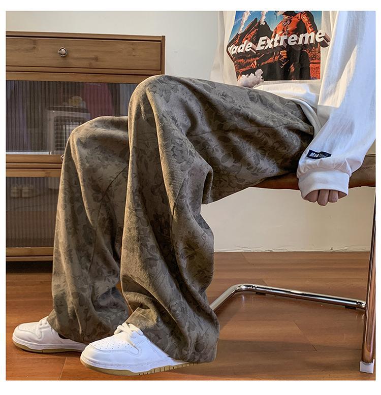 Pantalones vintage marrón Jacquard completo impreso overoles de pierna ancha primavera americana calle pantalones casuales sueltos
